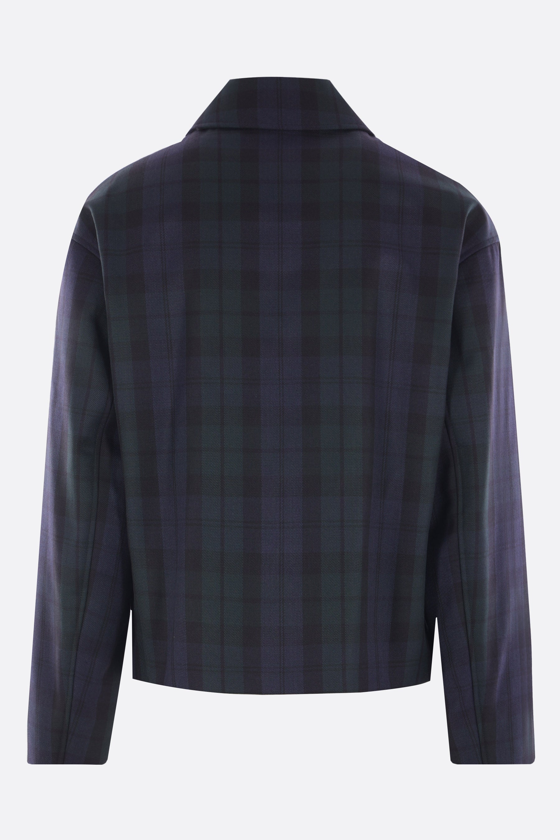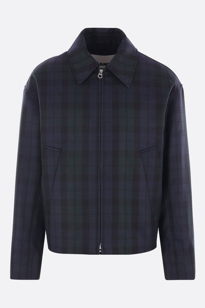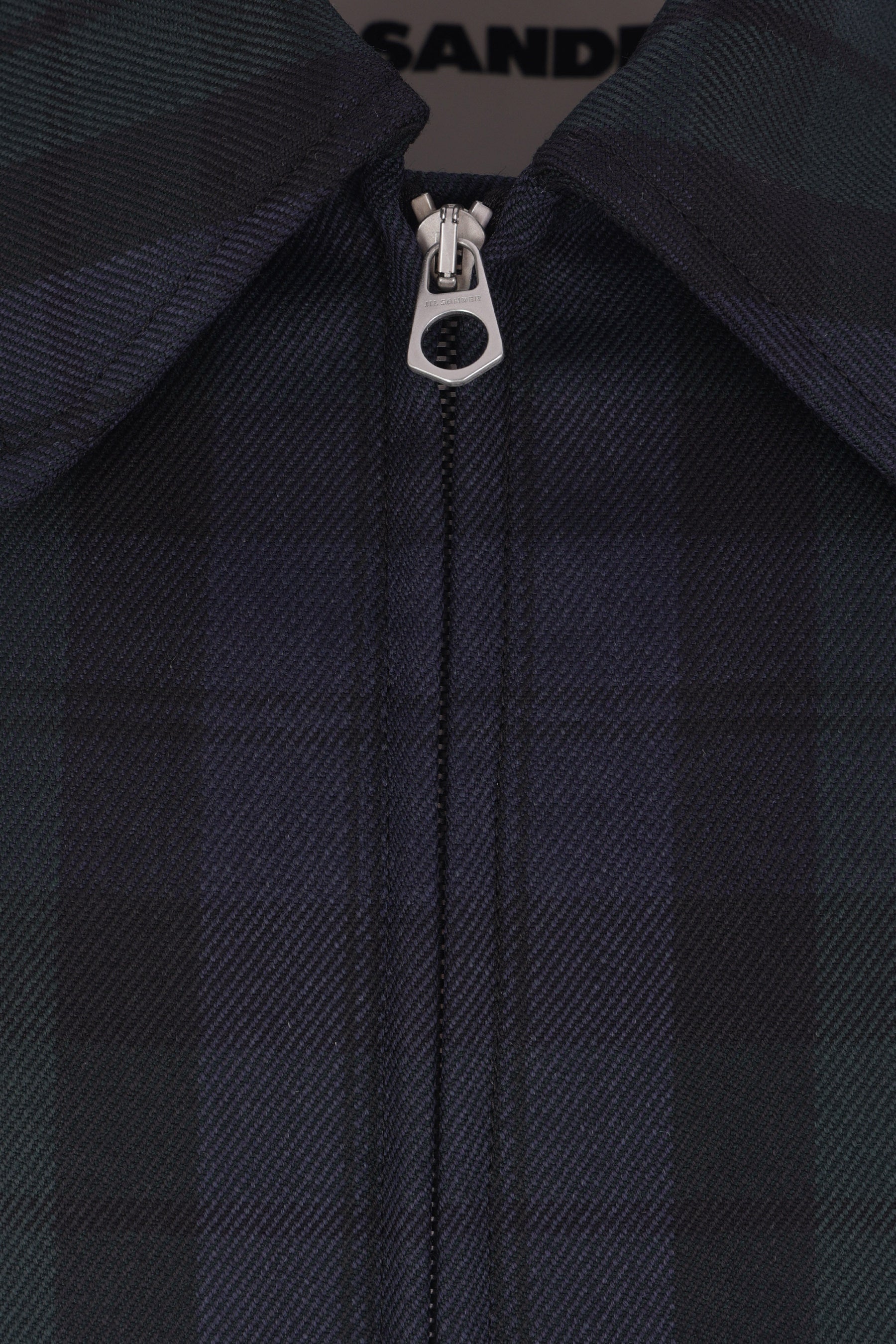 Giubbotto imbottito di Jil Sander realizzato in lana a motivo check nei toni del blu e verde. Caratterizzato da colletto a punta, chiusura frontale con zip a doppio cursore, tasche a filetto, maniche lunghe e fondo dritto. Interno trapuntato.