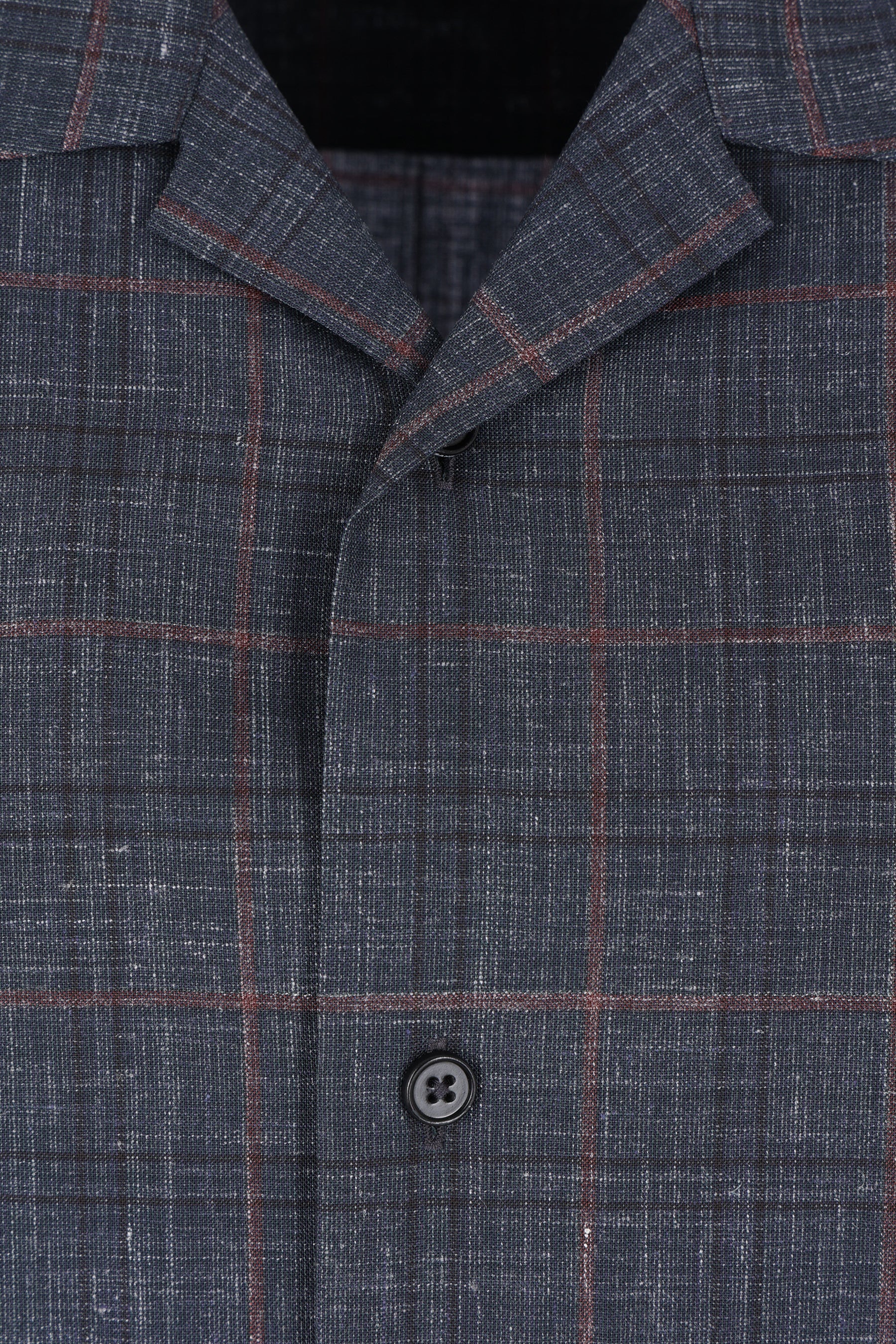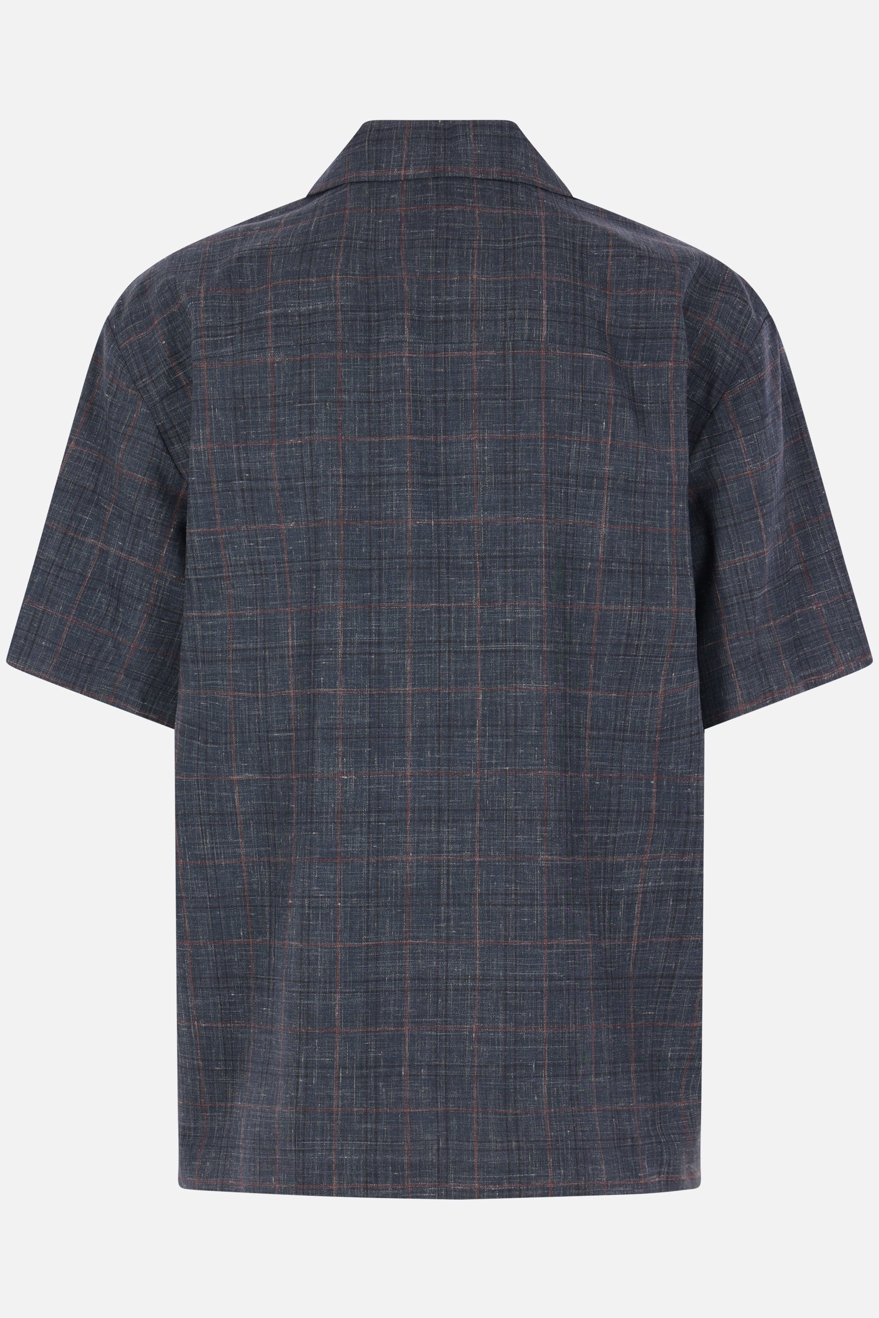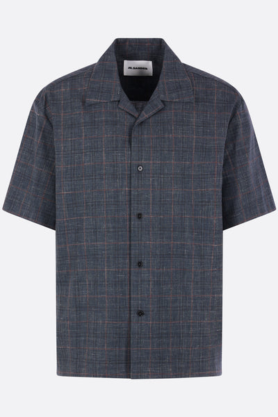 Camicia di Jil Sander realizzata in lana e lino fiammato a quadri. Caratterizzata da colletto con revers, chiusura frontale con bottoni, maniche corte e fondo dritto.