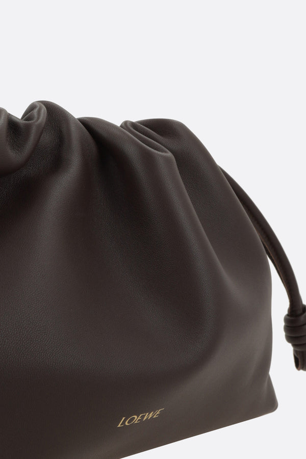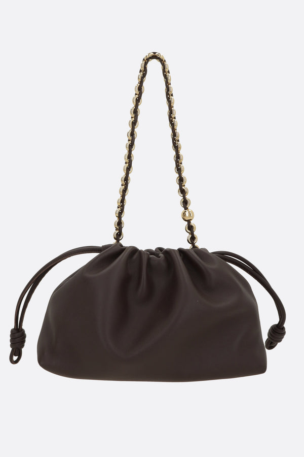 Borsa a spalla di Loewe realizzata in nappa color marrone scuro. Caratterizzata da metalleria color oro, chiusura con coulisse e bottone magnetico interno, manico a catena e tracolla regolabile / removibile. Interno foderato in suede color marrone chiaro. Completa il design l'inconfondibile logo lettering impresso frontalmente.