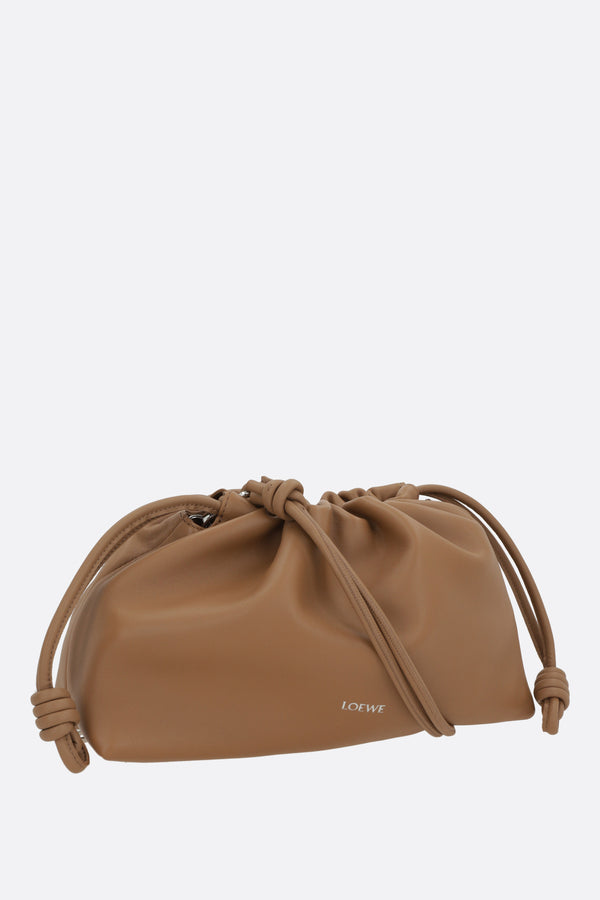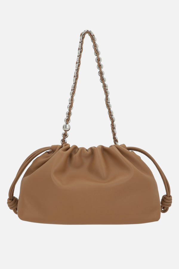 Borsa a spalla di Loewe realizzata in nappa color marrone chiaro. Caratterizzata da metalleria color argento, chiusura con coulisse e bottone magnetico interno, manico a catena e tracolla regolabile / removibile. Interno foderato in suede color marrone chiaro. Completa il design l'inconfondibile logo lettering impresso frontalmente.