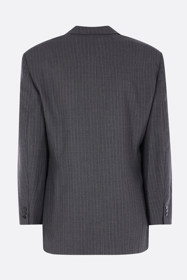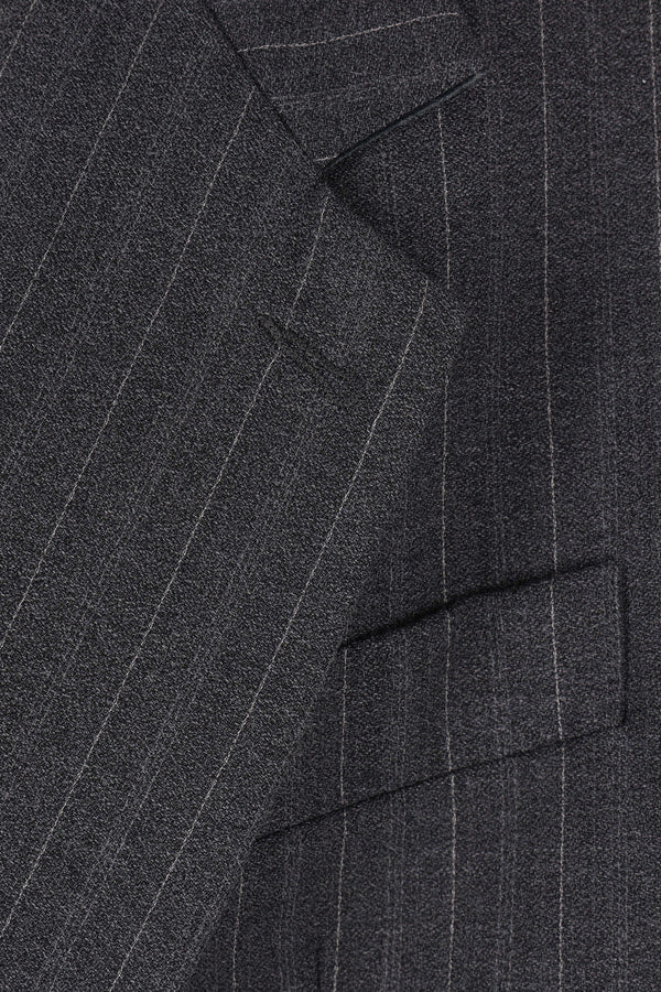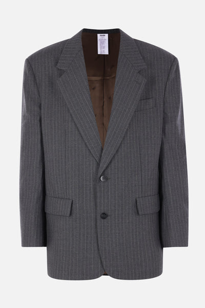 Giacca monopetto di Magliano realizzata in misto lana color grigio a motivo gessato. Caratterizzata da rever classico, chiusura frontale con bottoni, tasche multiple, spalline strutturate, maniche lunghe con polsini abbottonati e fondo dritto. Interno foderato.