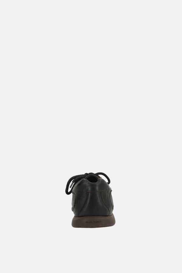 Sneaker di Namacheko realizzata in pelle liscia color nero/marrone. Caratterizzata da chiusura con lacci, punta tonda, fodere in pelle e suola in gomma con logo lettering a rilievo al tallone.