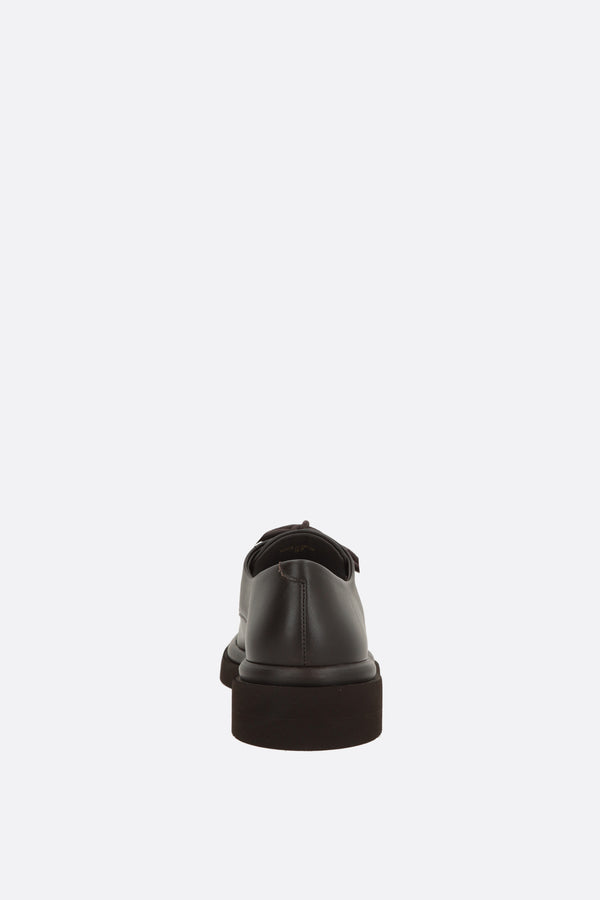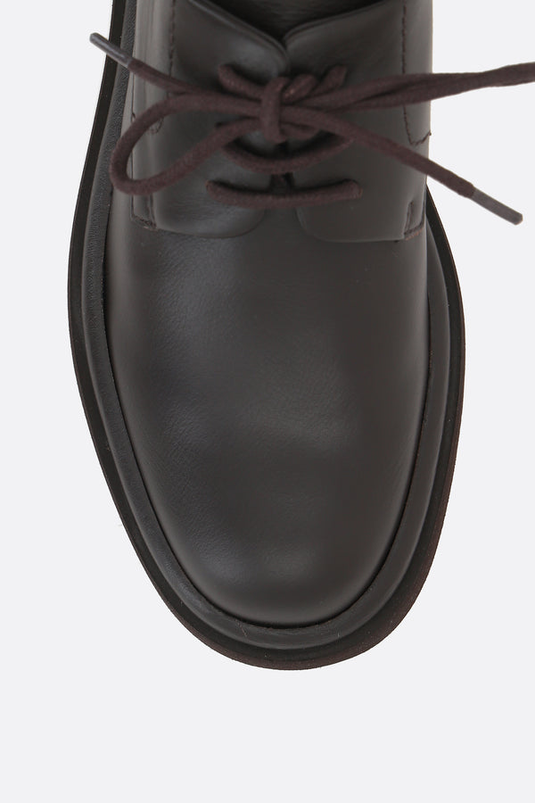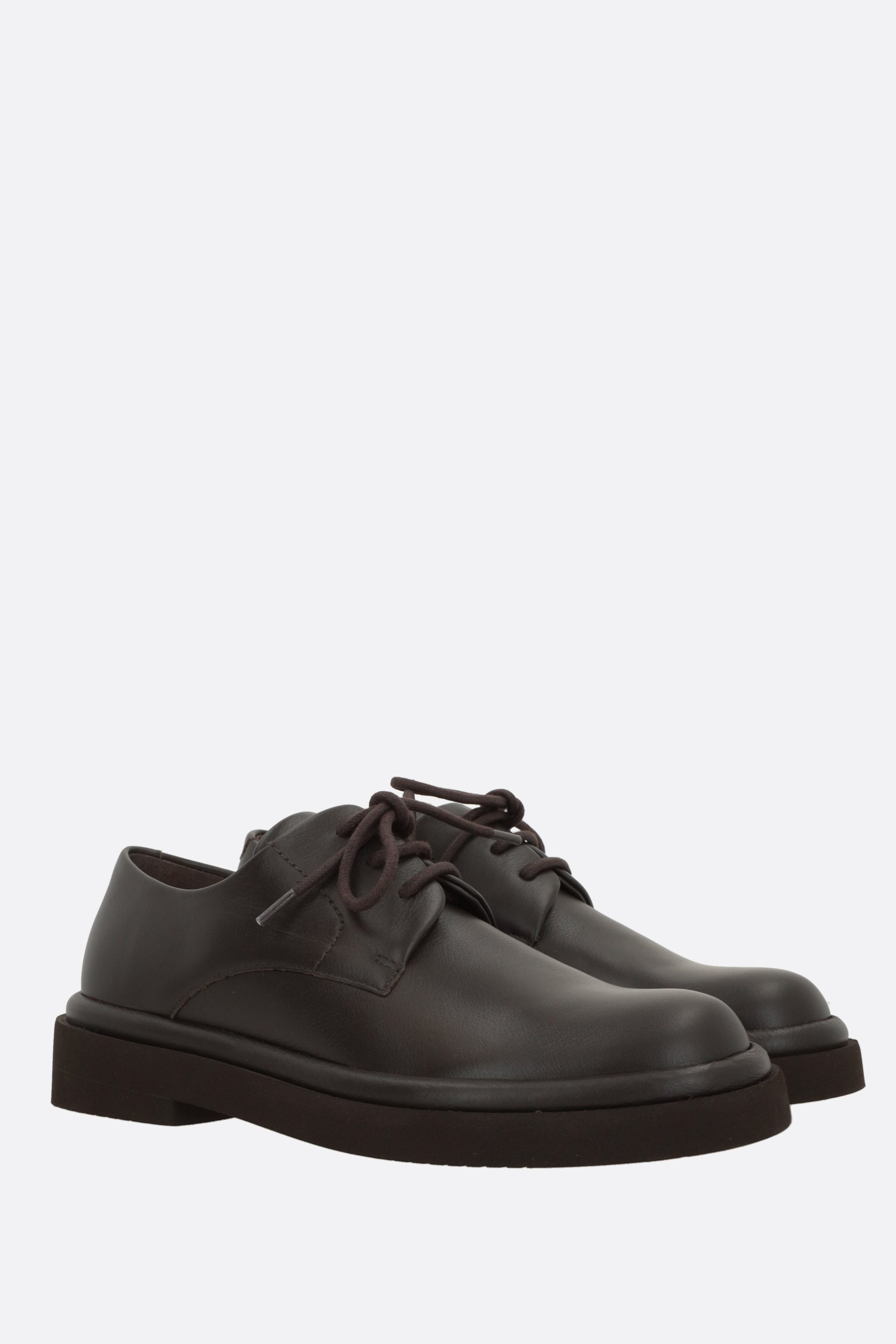 Scarpa derby di Paloma Barcelò realizzato in nappa color marrone. Caratterizzato da punta tonda, chiusura con lacci, fodere in pelle e suola in gomma.