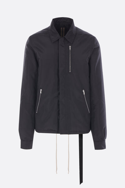 Giubbotto leggermente imbottito di Rick Owens DRKSHDW realizzato in nylon color nero. Caratterizzato da colletto a punta, chiusura frontale nascosta con zip, tasche con zip, maniche lunghe con polsini abbottonati e fondo dritto con coulisse. Completa il design il nastro logato tono su tono.