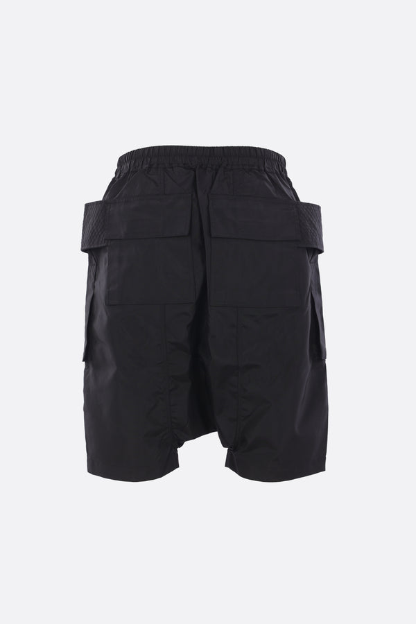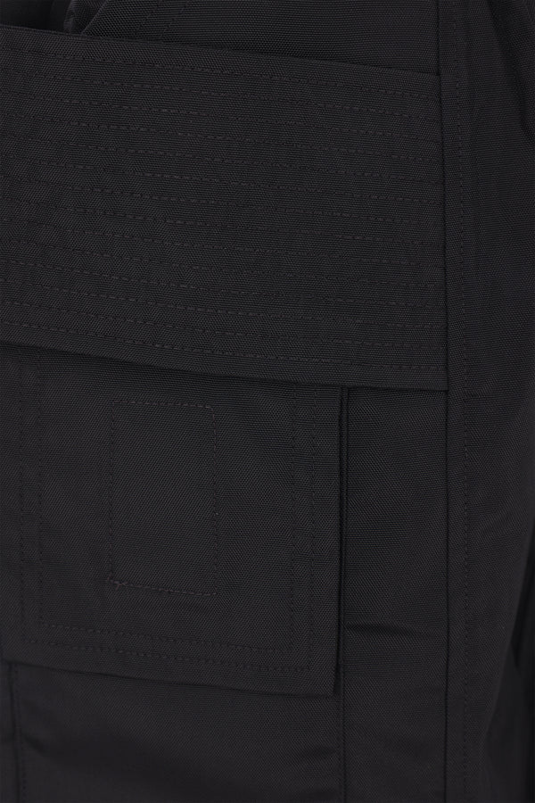 Pantalone corto cargo di Rick Owens DRKSHDW realizzato in canvas di nylon color nero. Caratterizzato da fascia elasticizzata in vita con coulisse e tasche multiple.