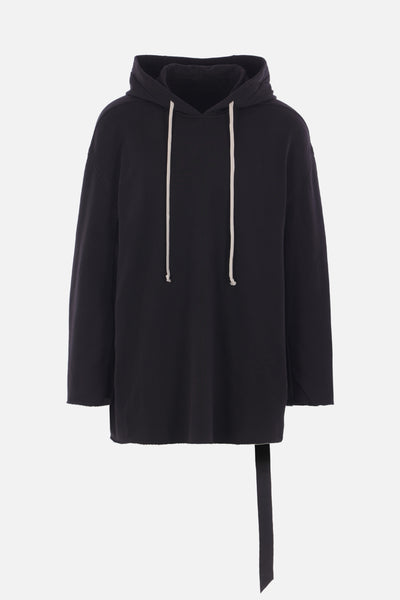 Felpa oversize con cappuccio di Rick Owens DRKSHDW realizzata in jersey di cotone color nero. Caratterizzata da maniche lunghe, bordi tagliati a vivo e fondo dritto con nastro logato tono su tono.