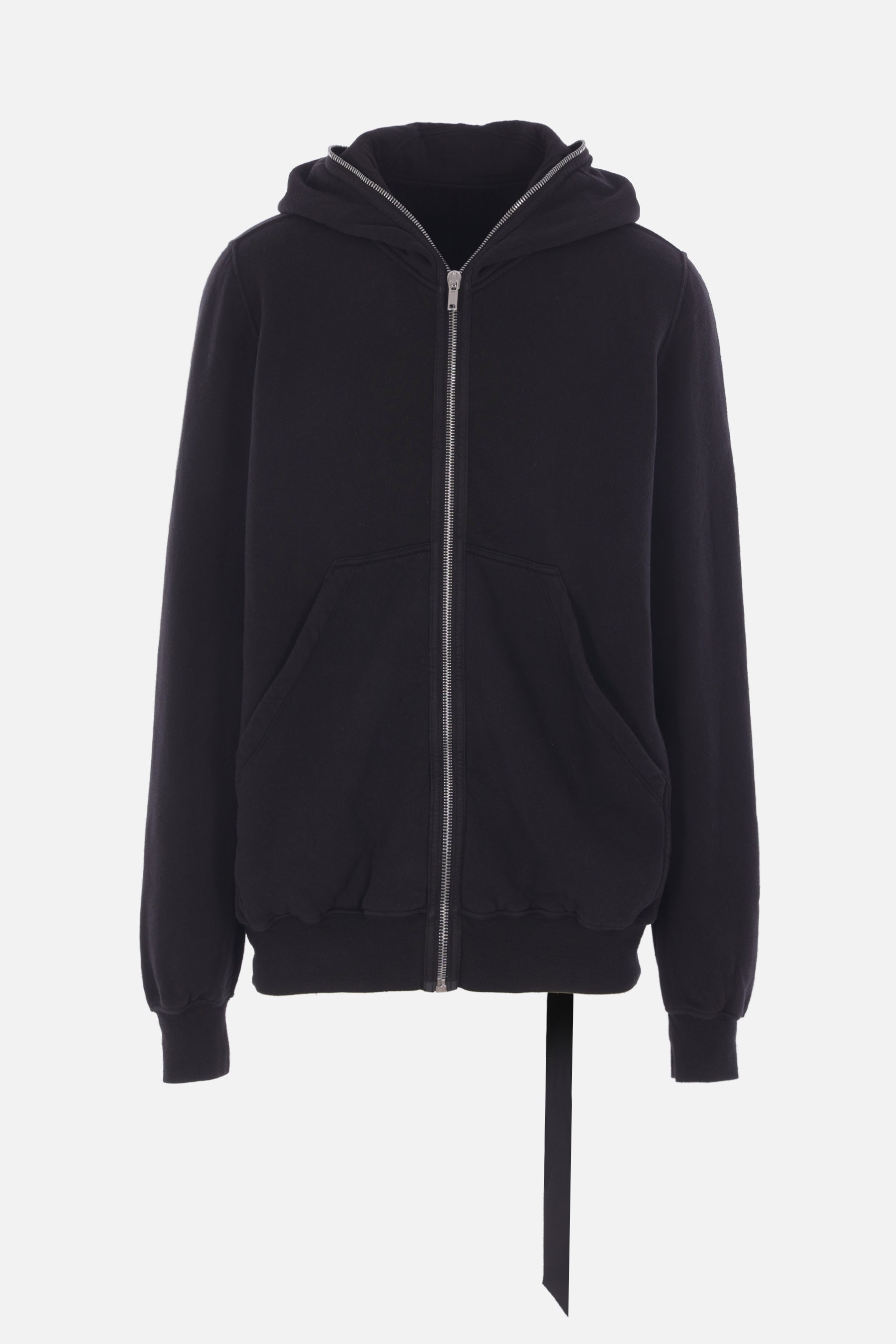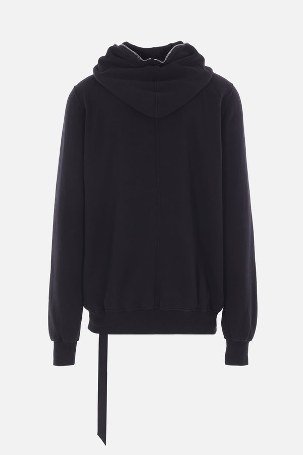 Felpa oversize con cappuccio di Rick Owens DRKSHDW realizzata in jersey di cotone color nero. Caratterizzata da chiusura frontale con zip, tasche a marsupio, maniche lunghe, bordi a costine e fondo dritto con nastro logato tono su tono.