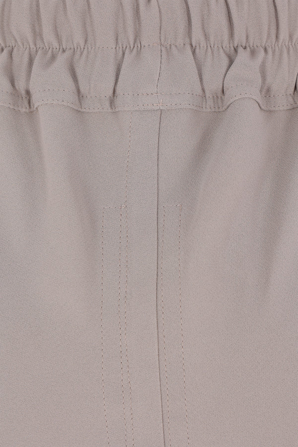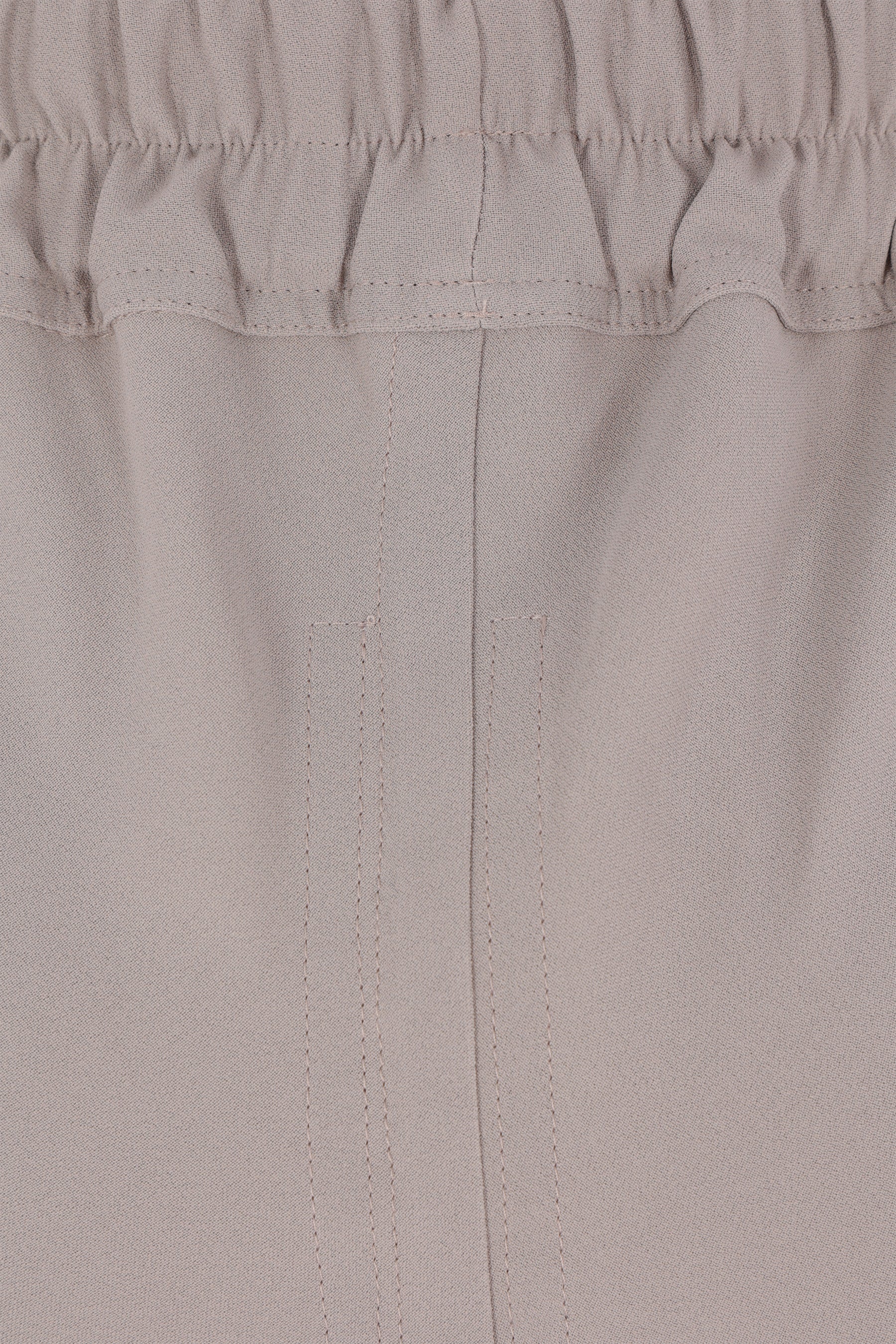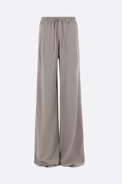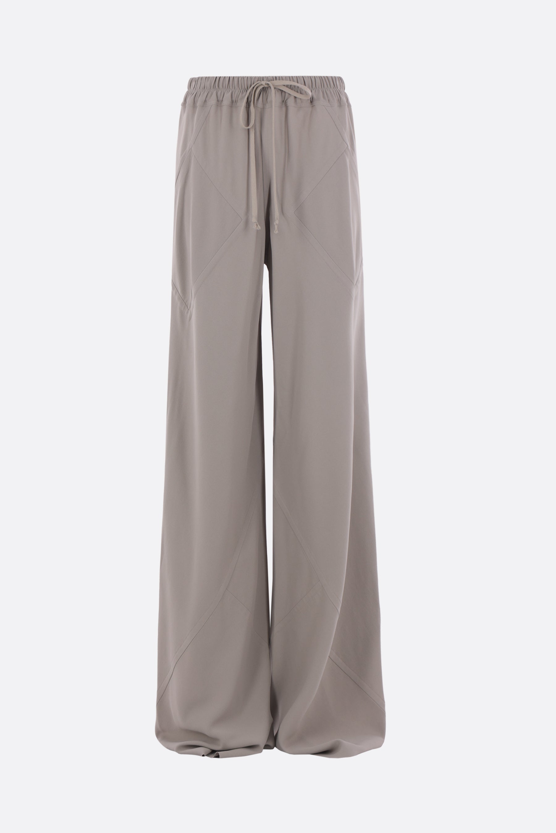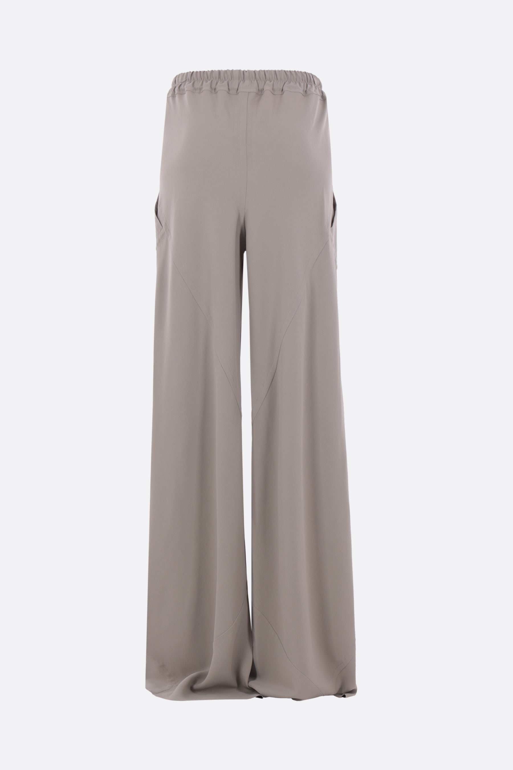 Pantalone a gamba ampia di Rick Owens realizzato in crepe color grigio perla. Caratterizzato da fascia elasticizzata in vita con coulisse, tasche applicate frontalmente e orlo al fondo tagliato a vivo.
