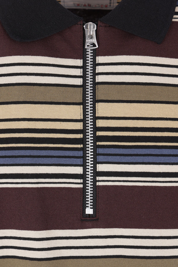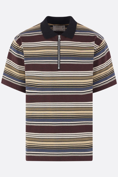 Polo di Sacai realizzata in jersey di cotone a righe orizzontali multicolore. Caratterizzata da colletto a polo, chiusura frontale con zip, maniche corte e fondo dritto.