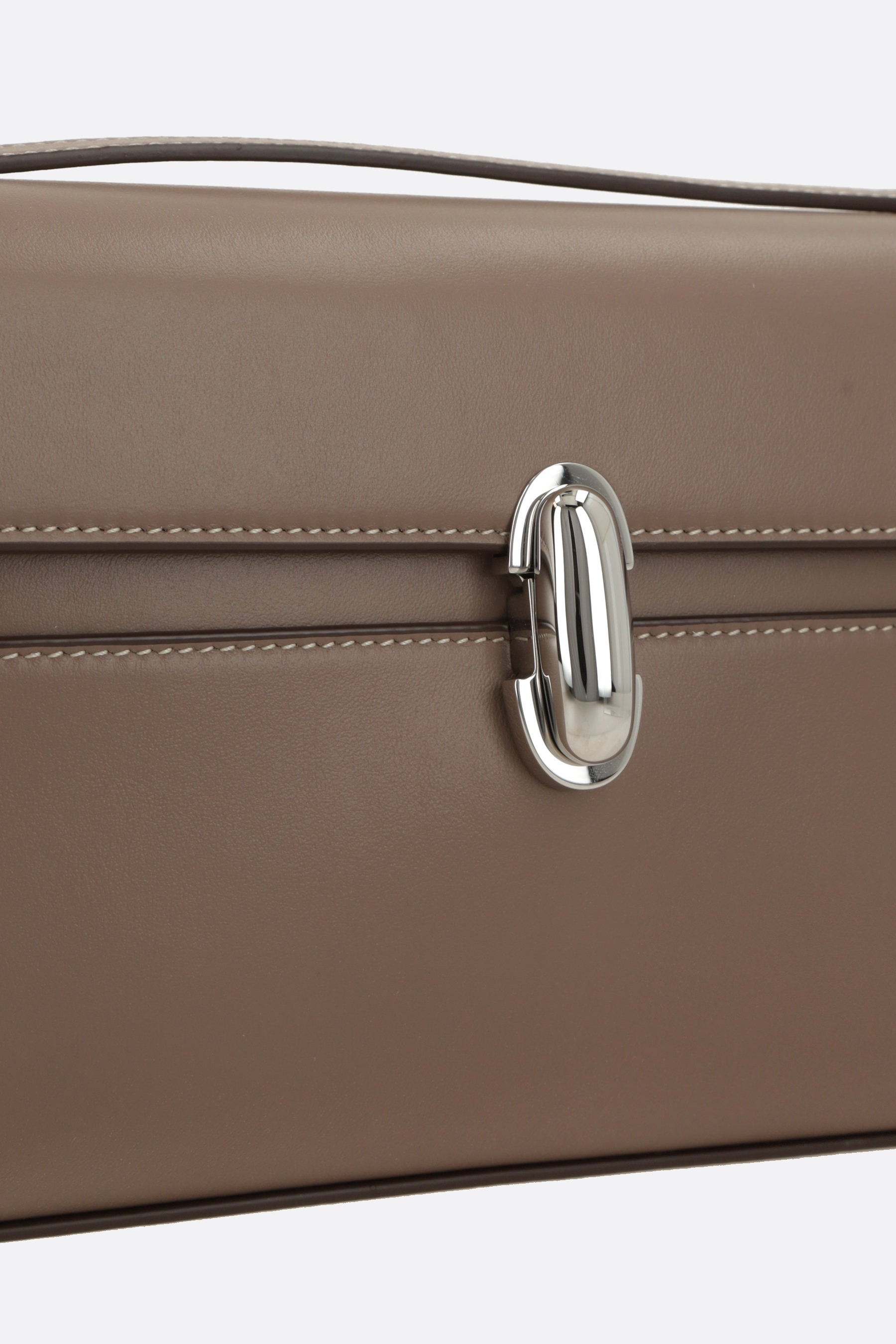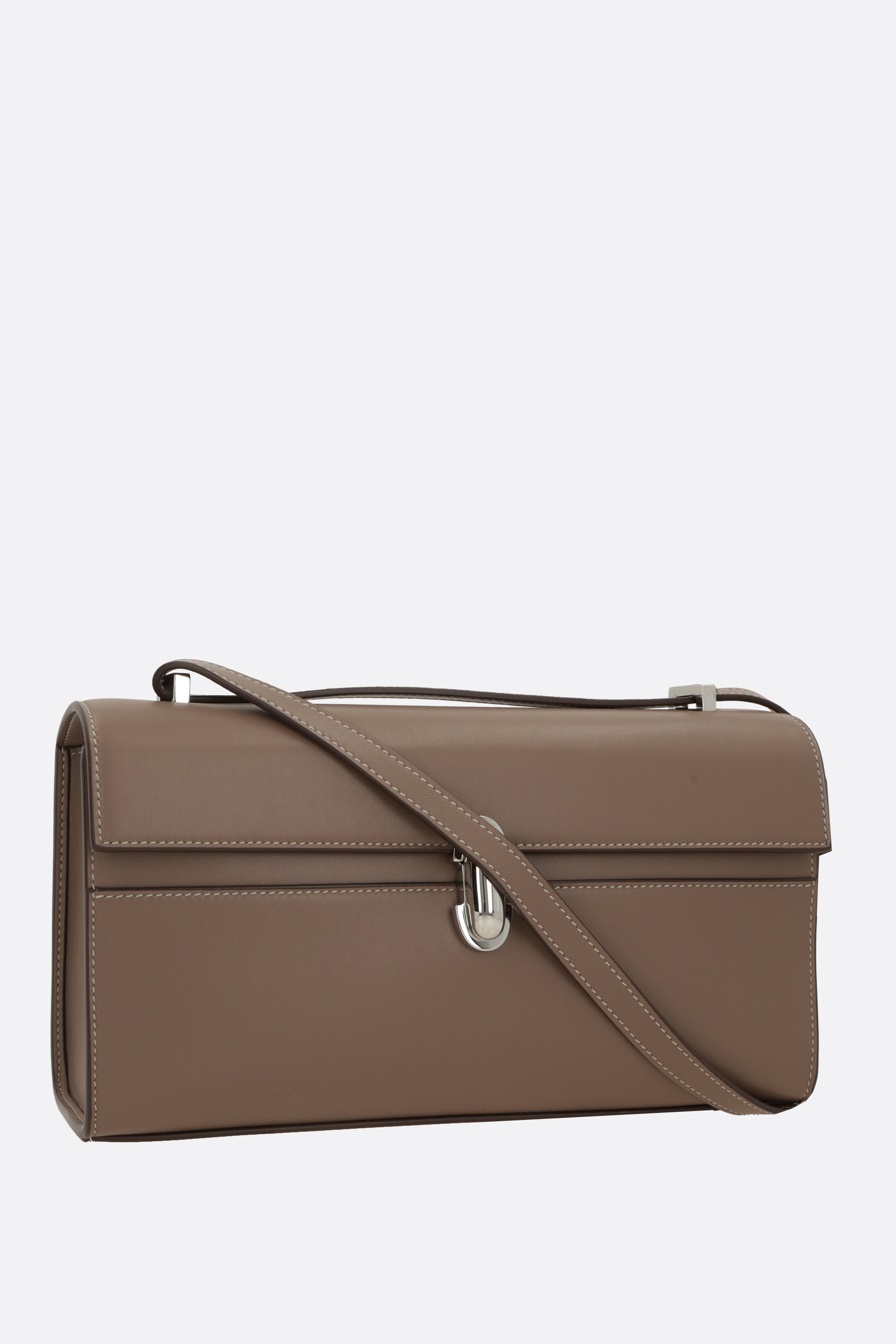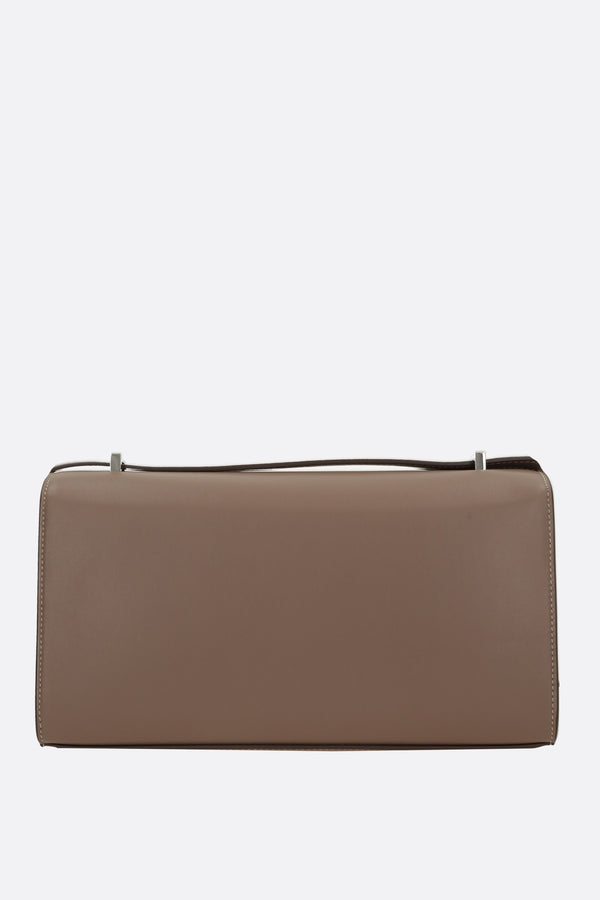 Borsa a spalla di Savette realizzata in pelle liscia color talpa. Caratterizzata da metalleria color argento, chiusura turn-lock su patta, spallaccio regolabile e piedini protettivi in metallo. L'interno foderato in pelle tono su tono è dotato di tasca piatta. Completa il design l'inconfondibile logo lettering impresso sotto la patta.