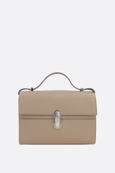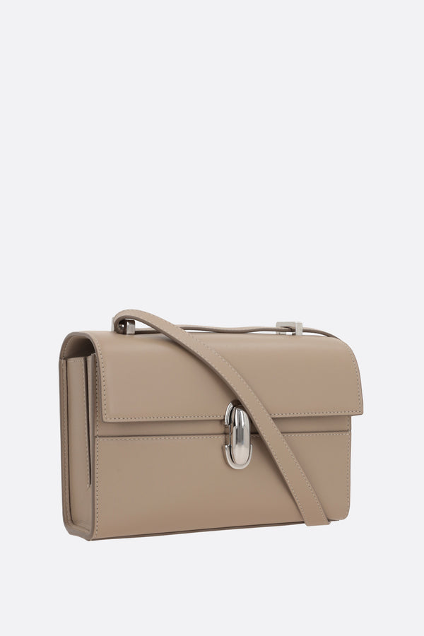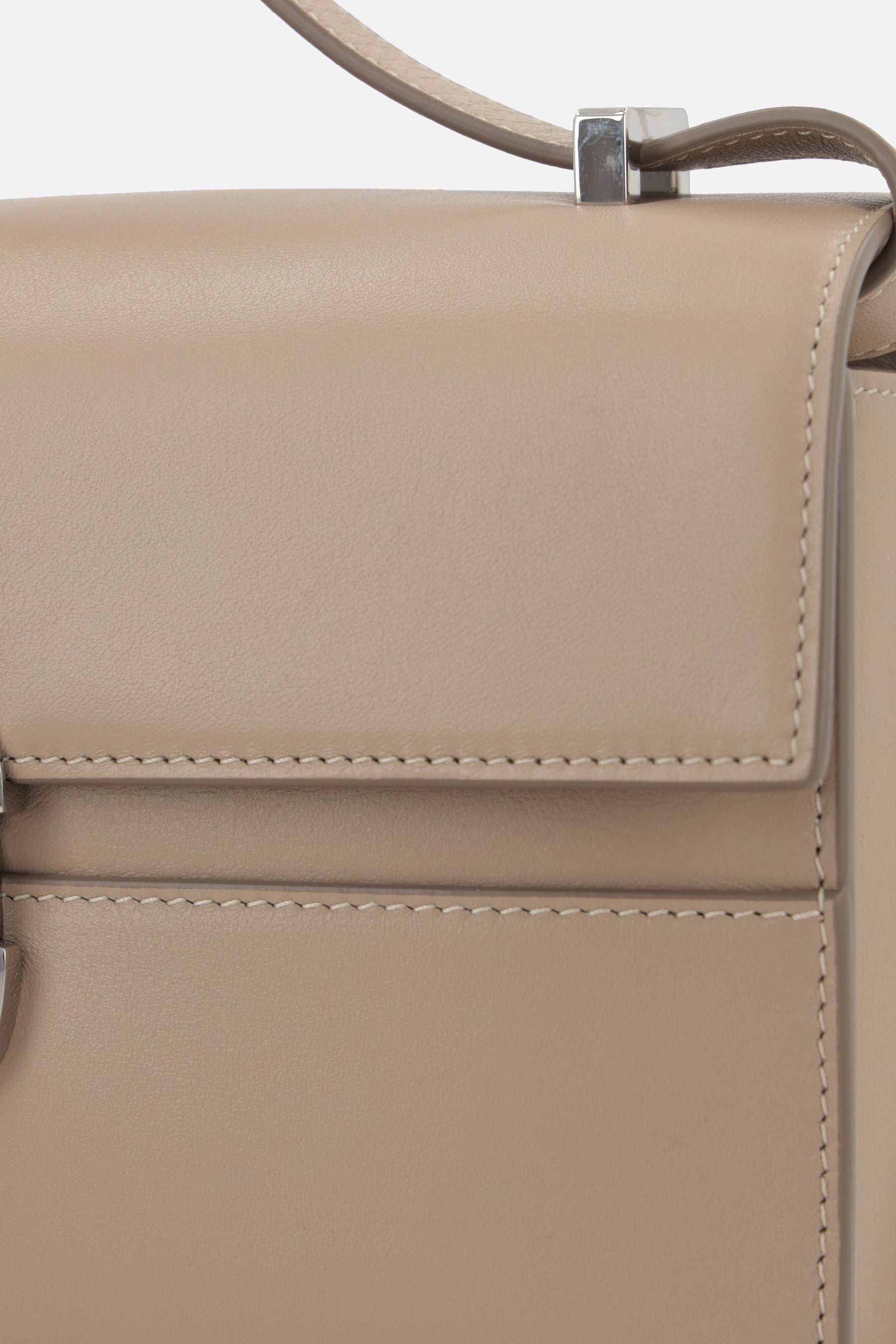 Borsa a spalla di Savette realizzata in pelle liscia color beige. Caratterizzata da metalleria color argento, chiusura turn-lock su patta e spallaccio fisso. L'interno foderato in pelle color beige è dotato di due scompartimenti separati e due tasche piatte. Completa il design l'inconfondibile logo lettering impresso sotto la patta.