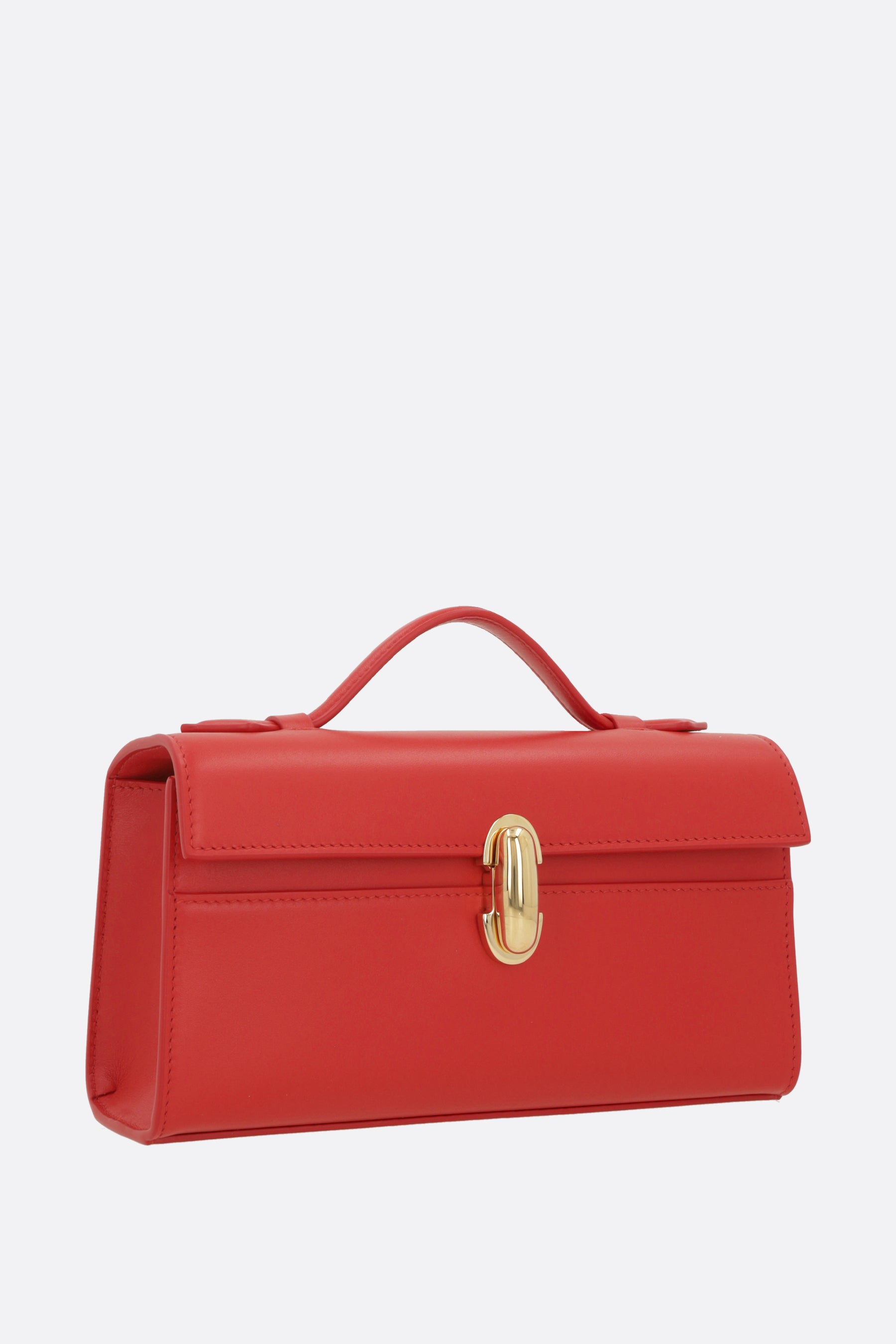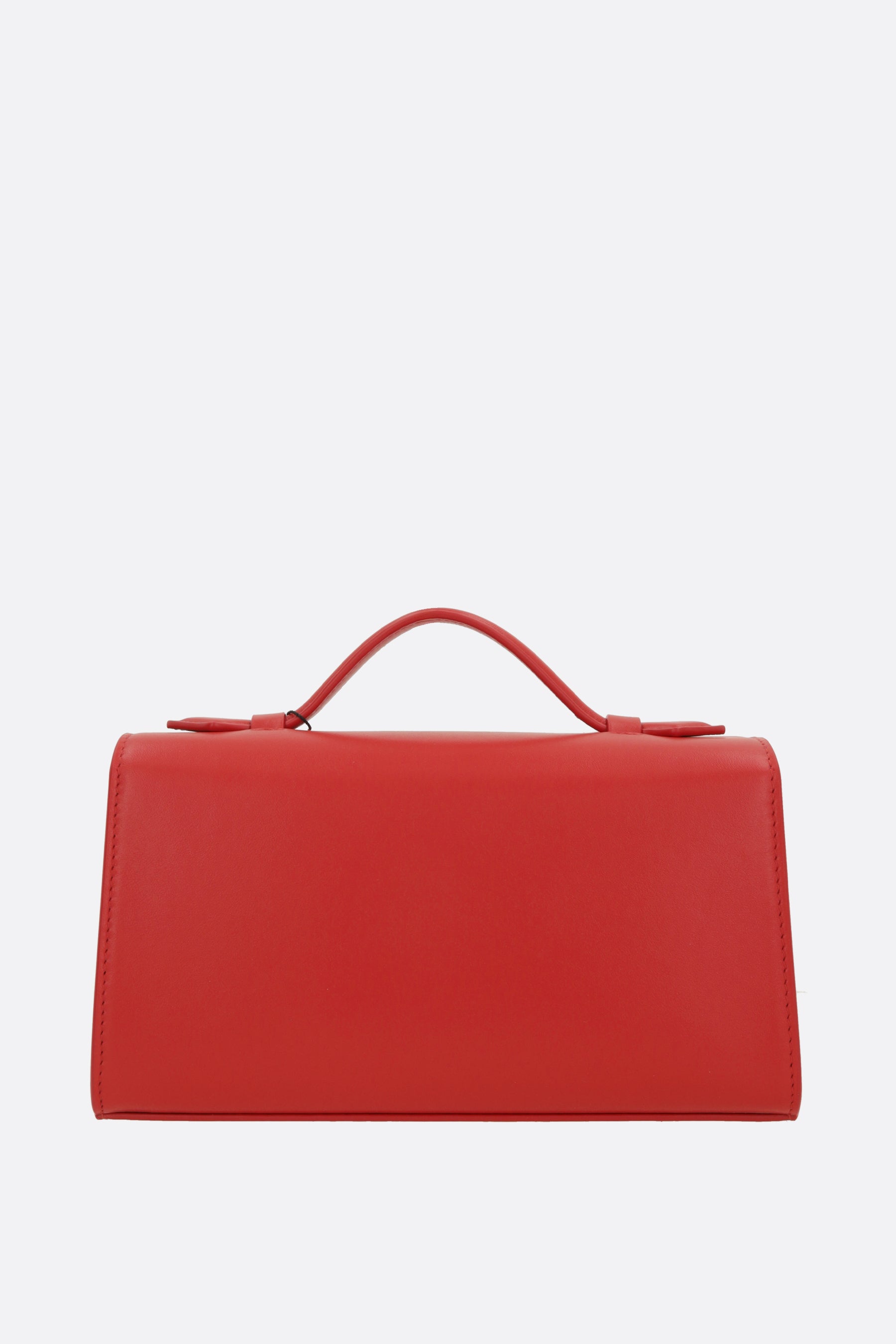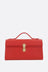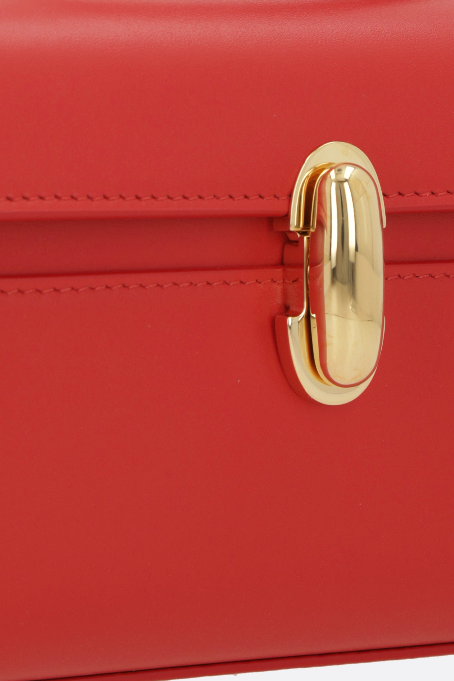 Borsa a mano di Savette realizzata in pelle liscia color rosso papavero. Caratterizzata da metalleria color oro, chiusura turn-lock su patta e manico piatto. L'interno foderato in pelle tono su tono è dotato di fessura per carte. Completa il design l'inconfondibile logo lettering impresso sotto la patta.
