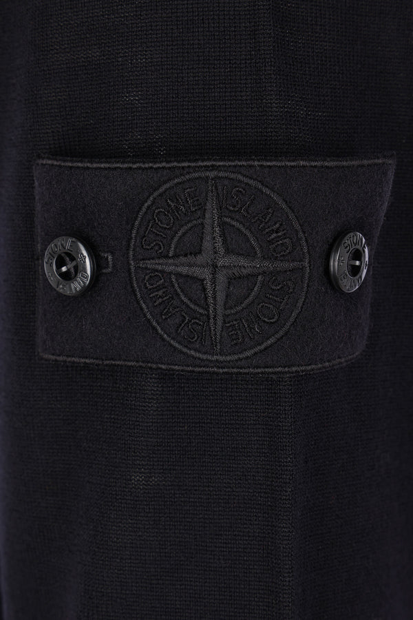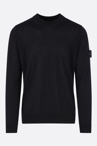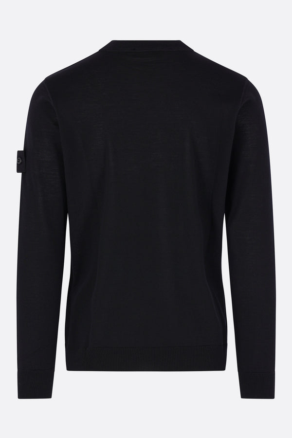 Pullover di Stone Island realizzato in maglia di lana color nero con badge logo removibile. Caratterizzato da scollatura a giro, maniche lunghe e bordi a costine. Collezione Ghost.
