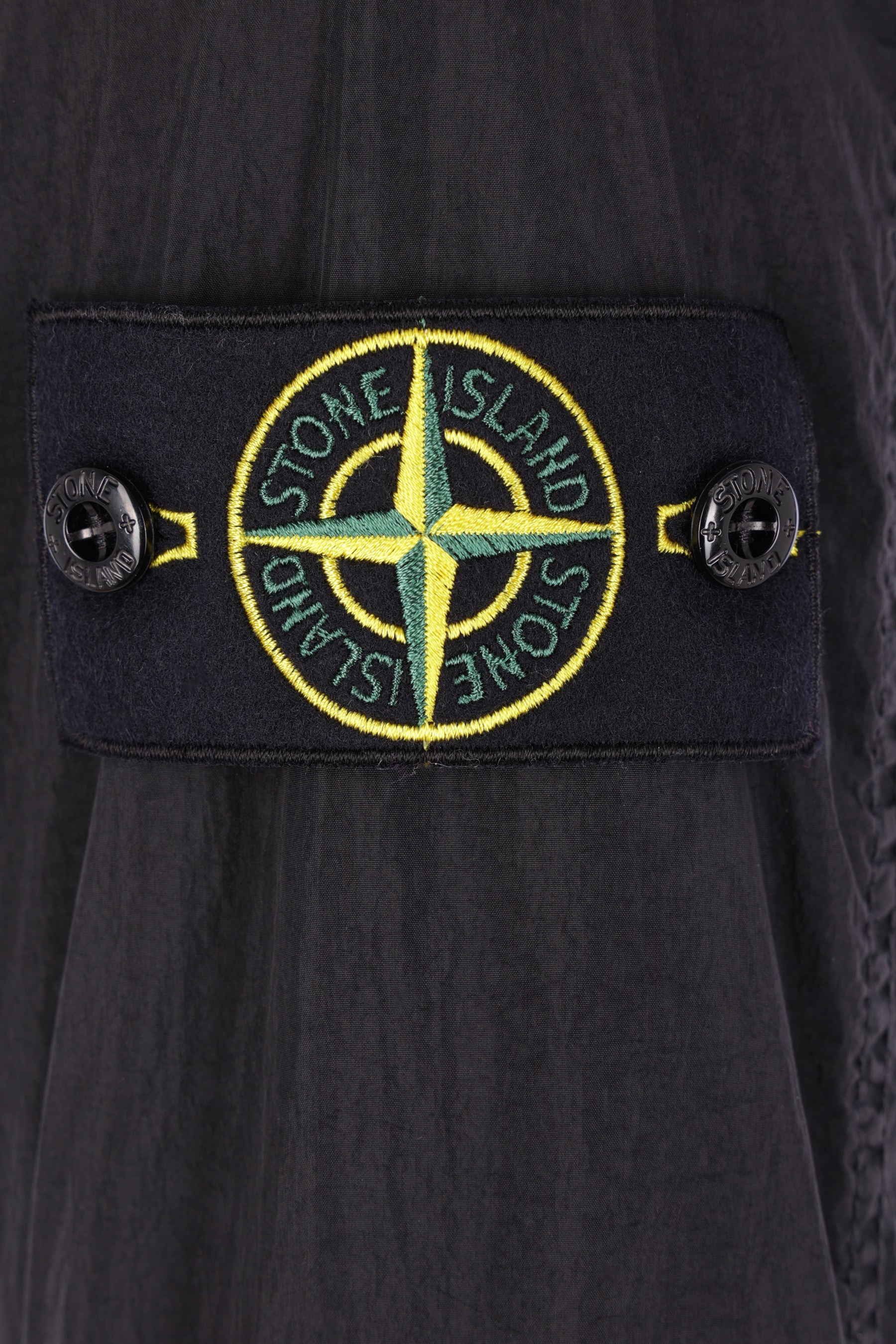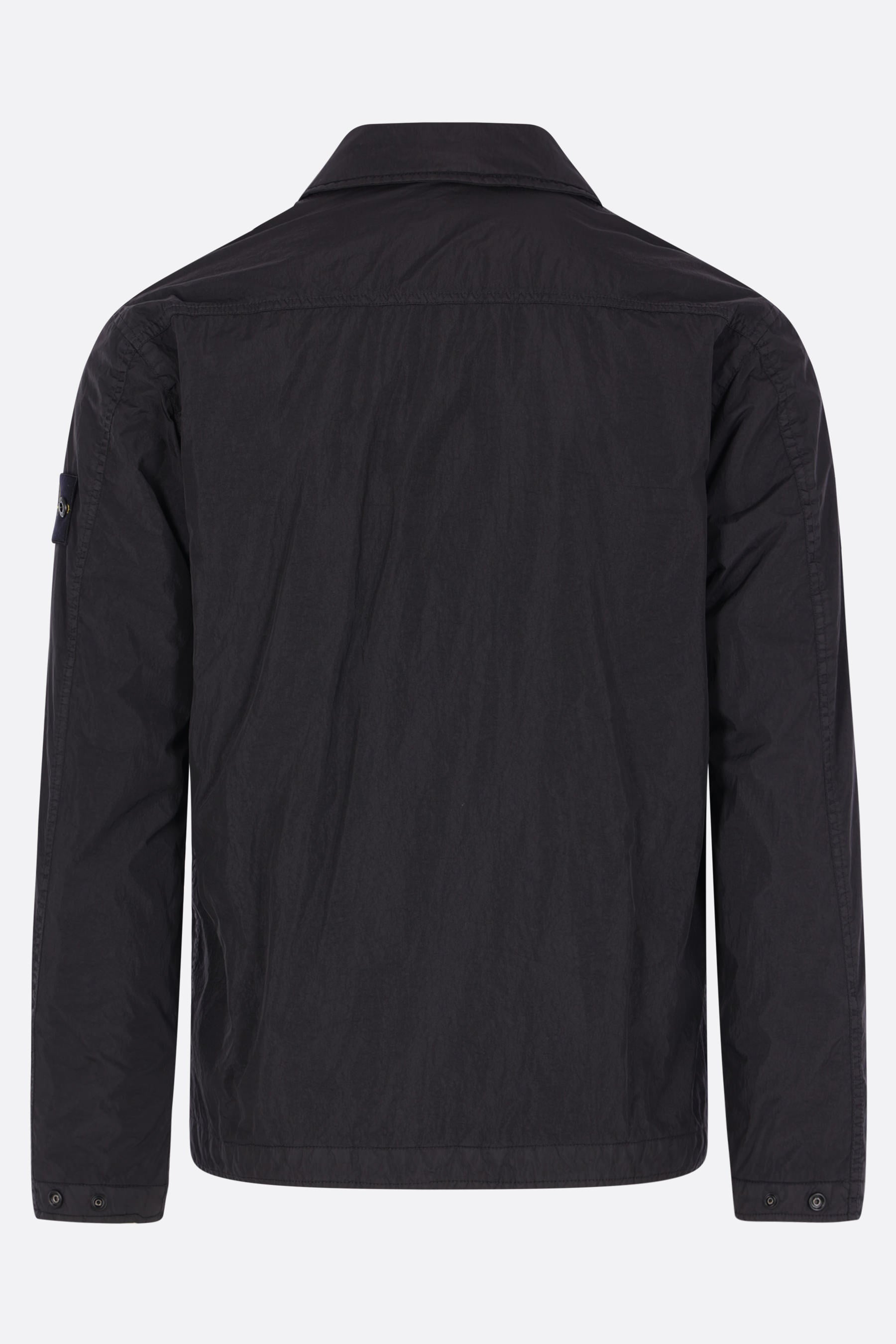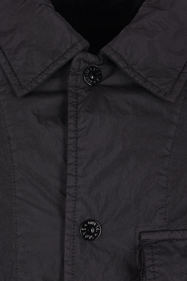 Giacca-camicia di Stone Island realizzata in reps di nylon riciclato color nero con imbottitura PrimaLoft®-TC. Caratterizzata da colletto classico, chiusura frontale nascosta con bottoni automatici, tasca sul petto, maniche lunghe con polsini abbottonati e fondo dritto. Completa il design il badge logo removibile.