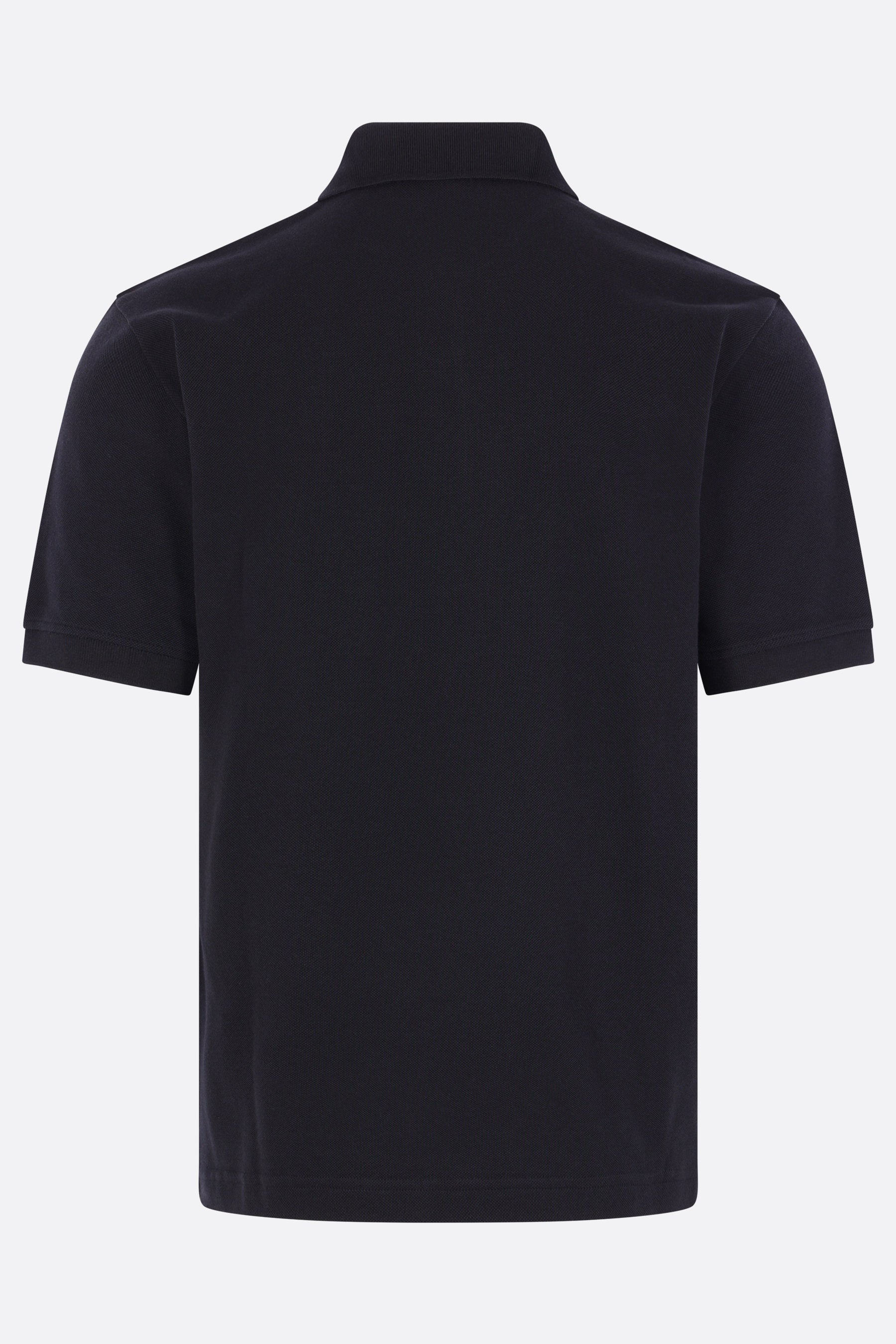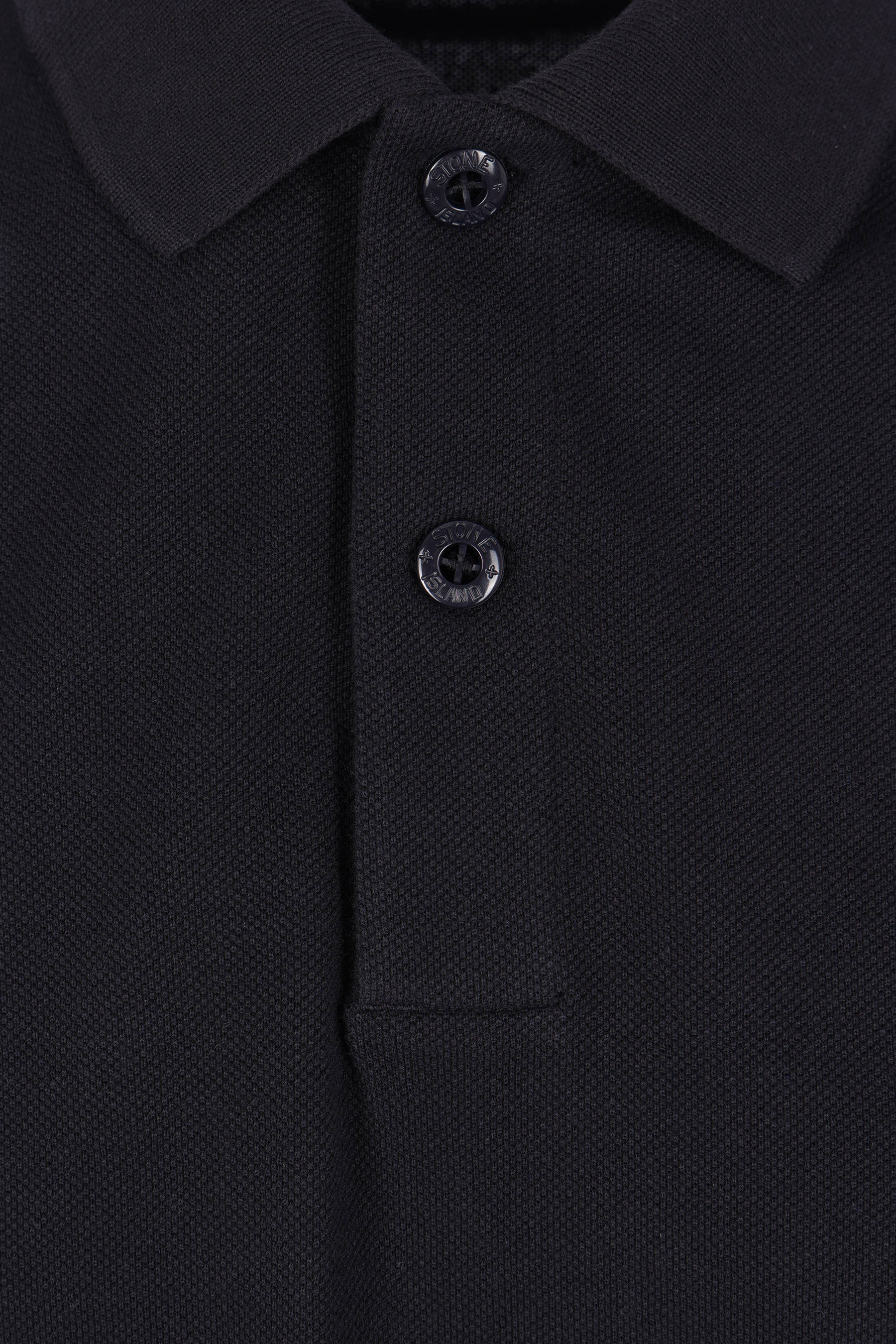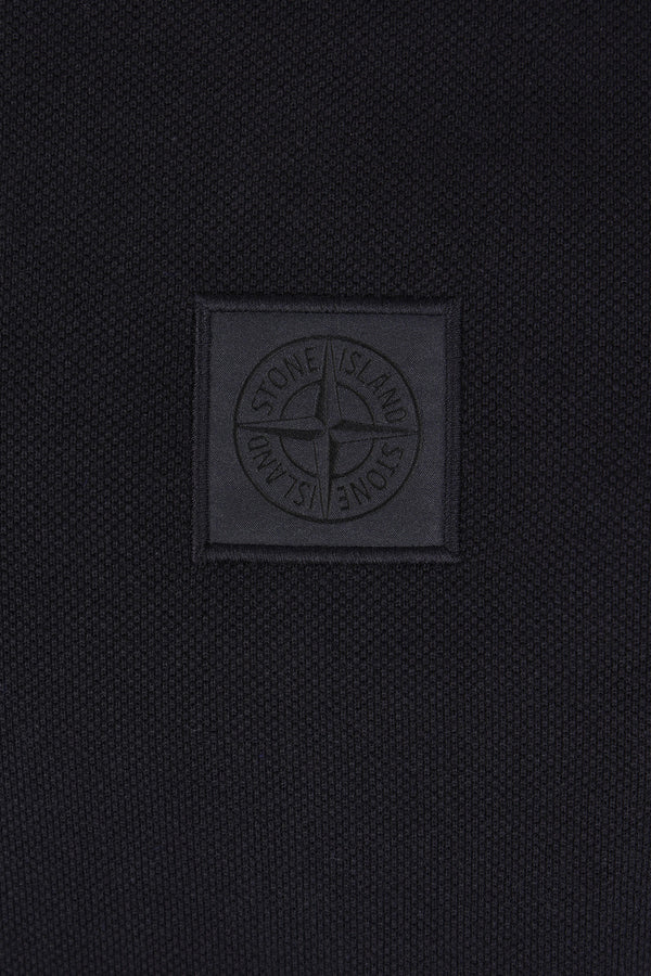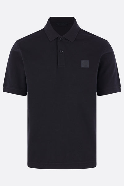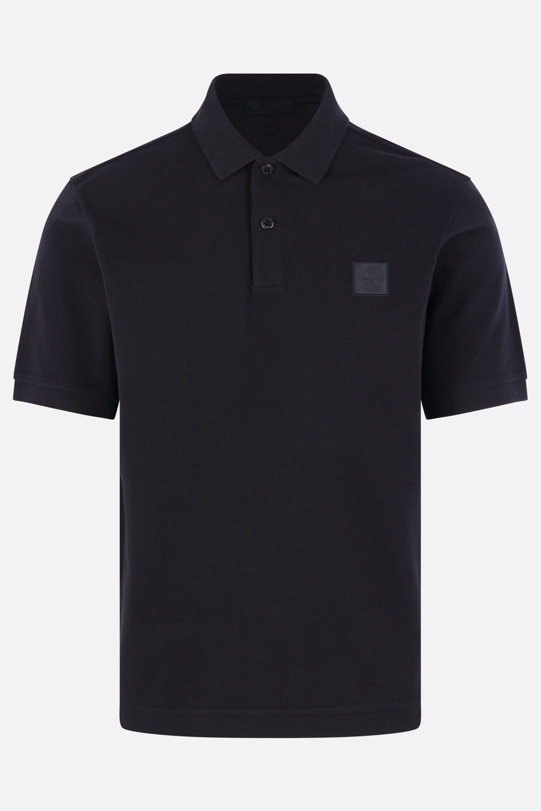 Polo di Stone Island realizzata in piquet di cotone color blu con patch logo Compass sul petto. Caratterizzata da colletto a polo, chiusura frontale con due bottoni, maniche corte e fondo dritto più lungo sul retro con piccoli spacchi laterali. Collezione Ghost.