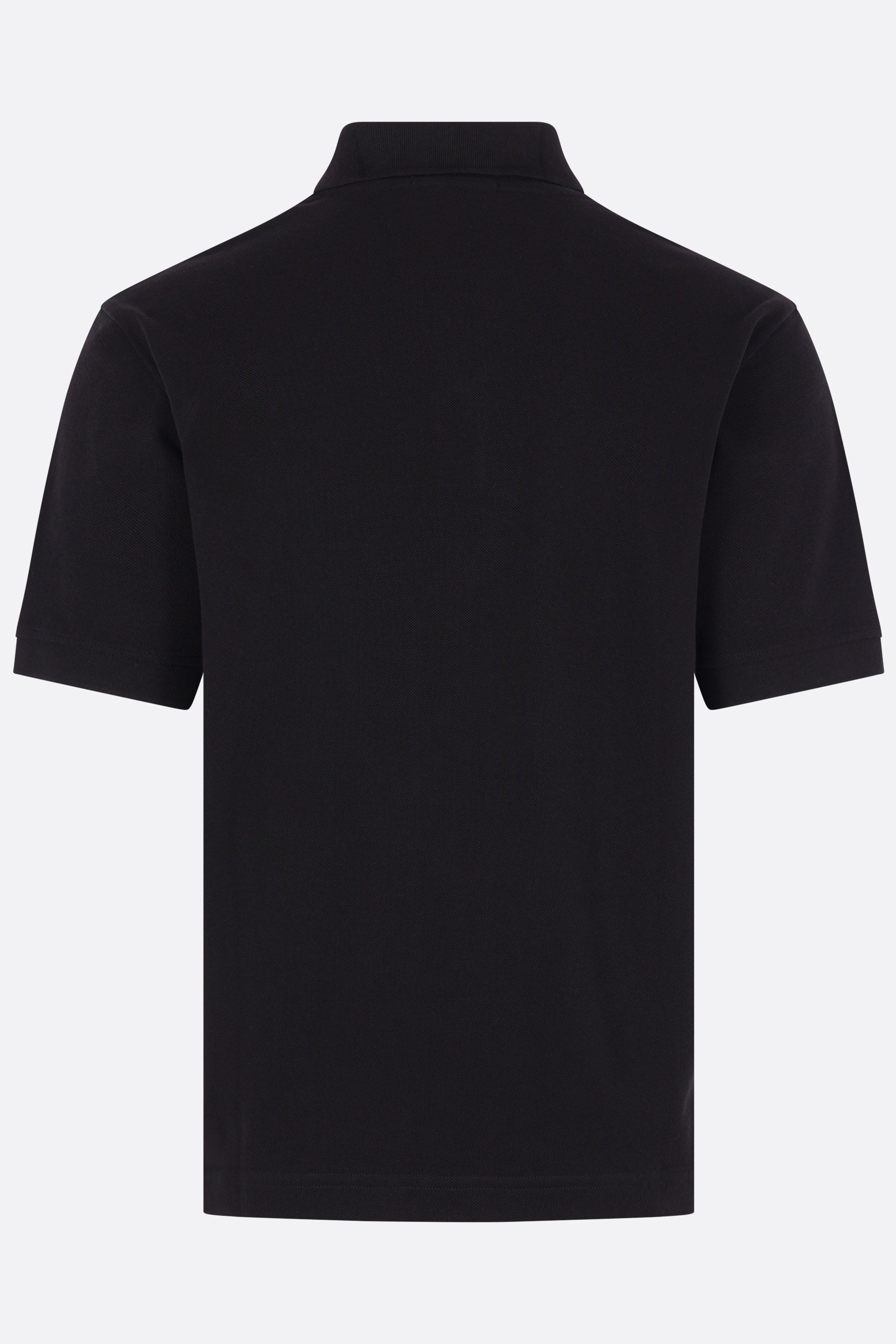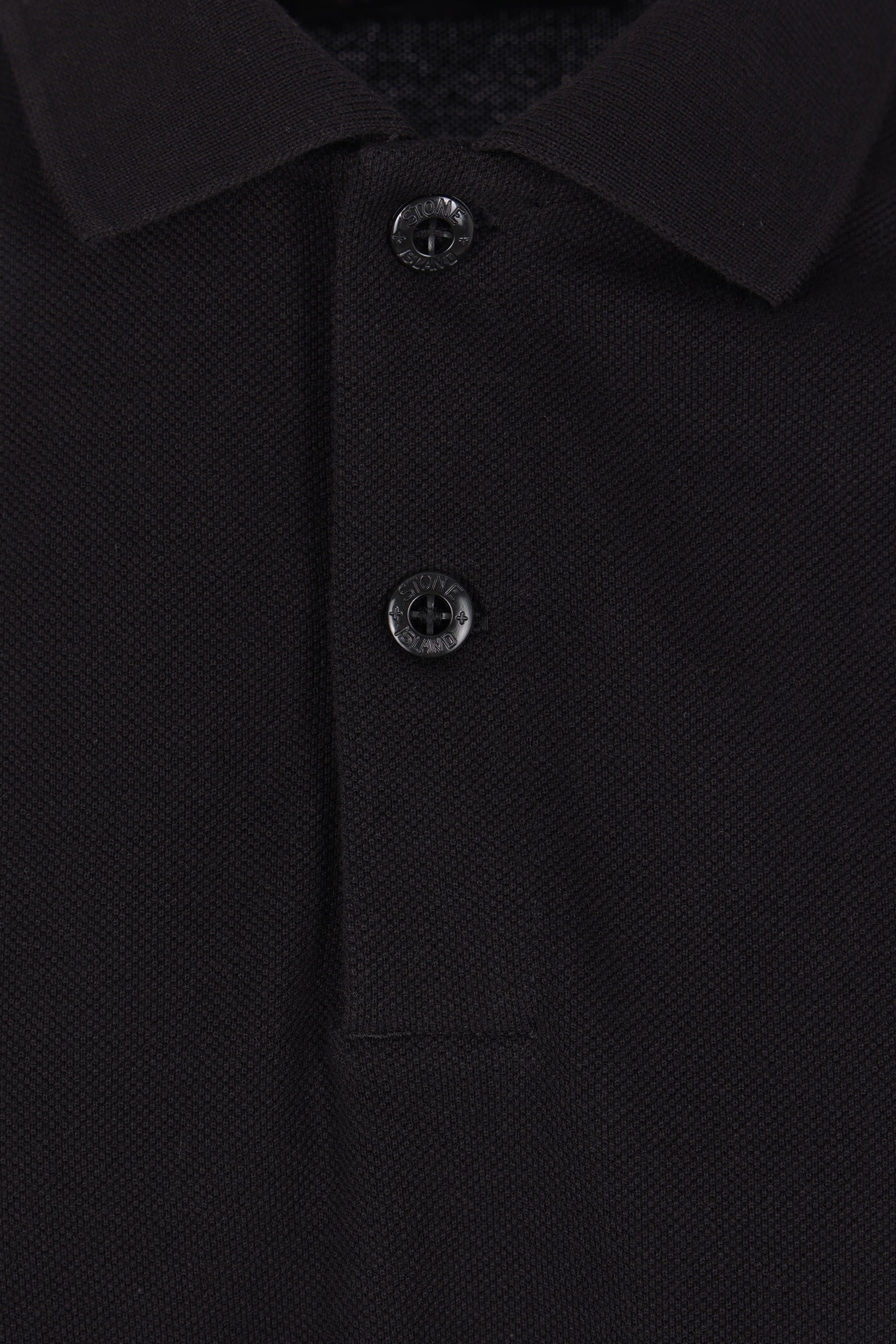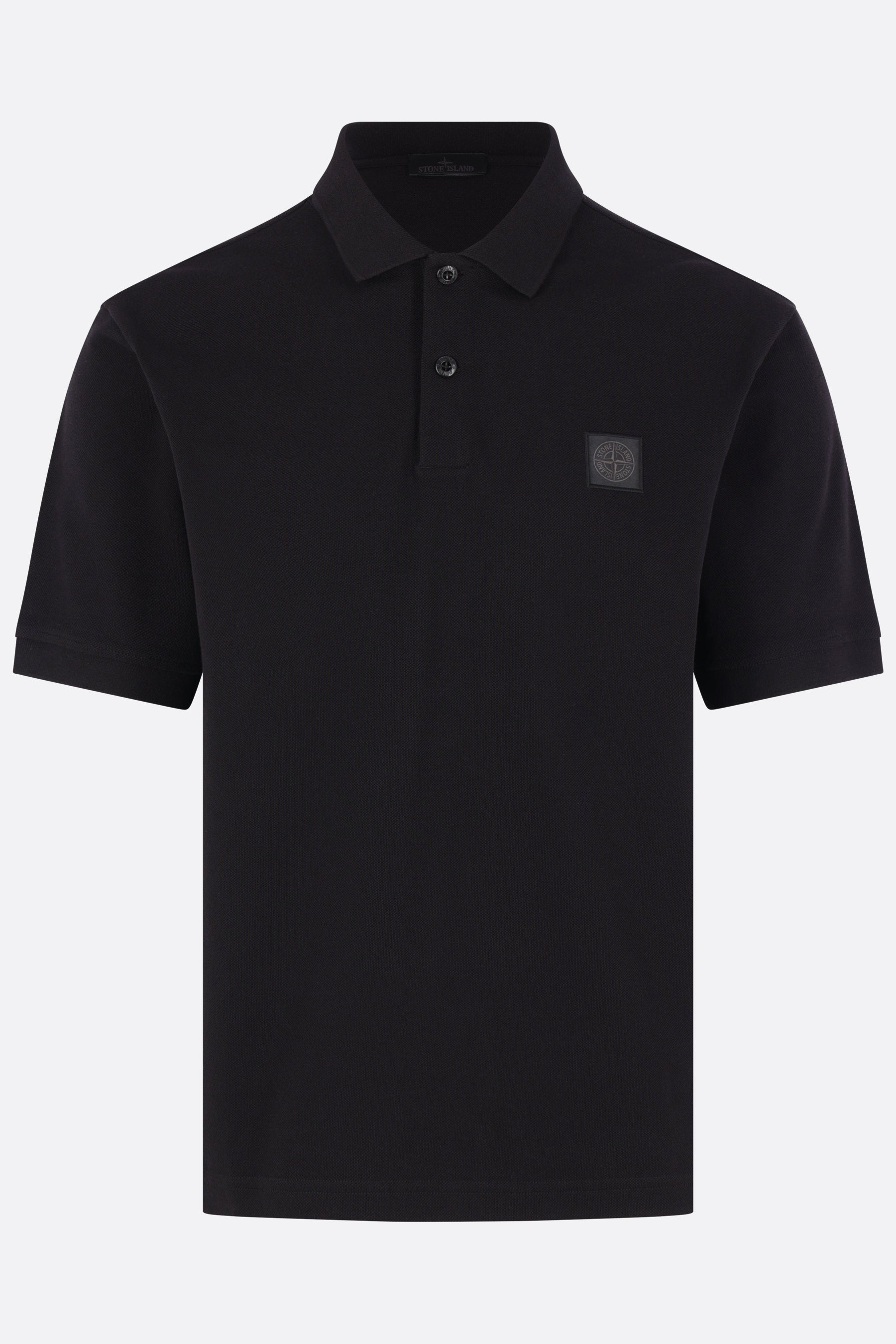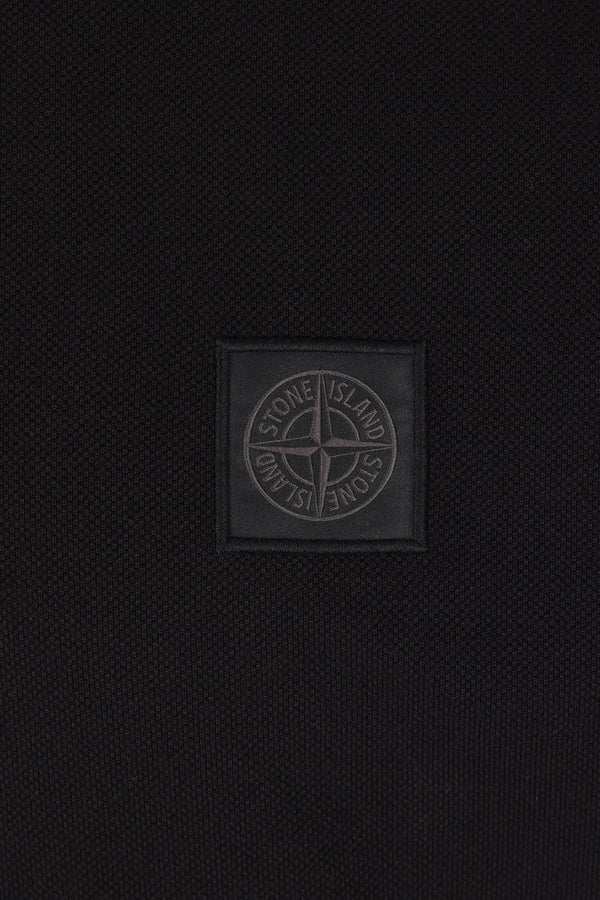 Polo di Stone Island realizzata in piquet di cotone color nero con patch logo Compass sul petto. Caratterizzata da colletto a polo, chiusura frontale con due bottoni, maniche corte e fondo dritto più lungo sul retro con piccoli spacchi laterali. Collezione Ghost.