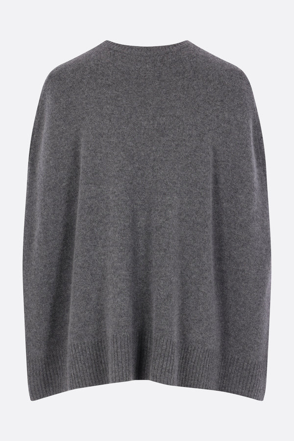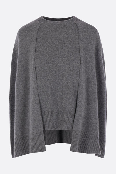 Pullover smanicato di Toteme realizzato in maglia di cashmere color grigio scuro melange. Caratterizzato da scollatura a giro, mantella sovrapposta e bordi a costine.