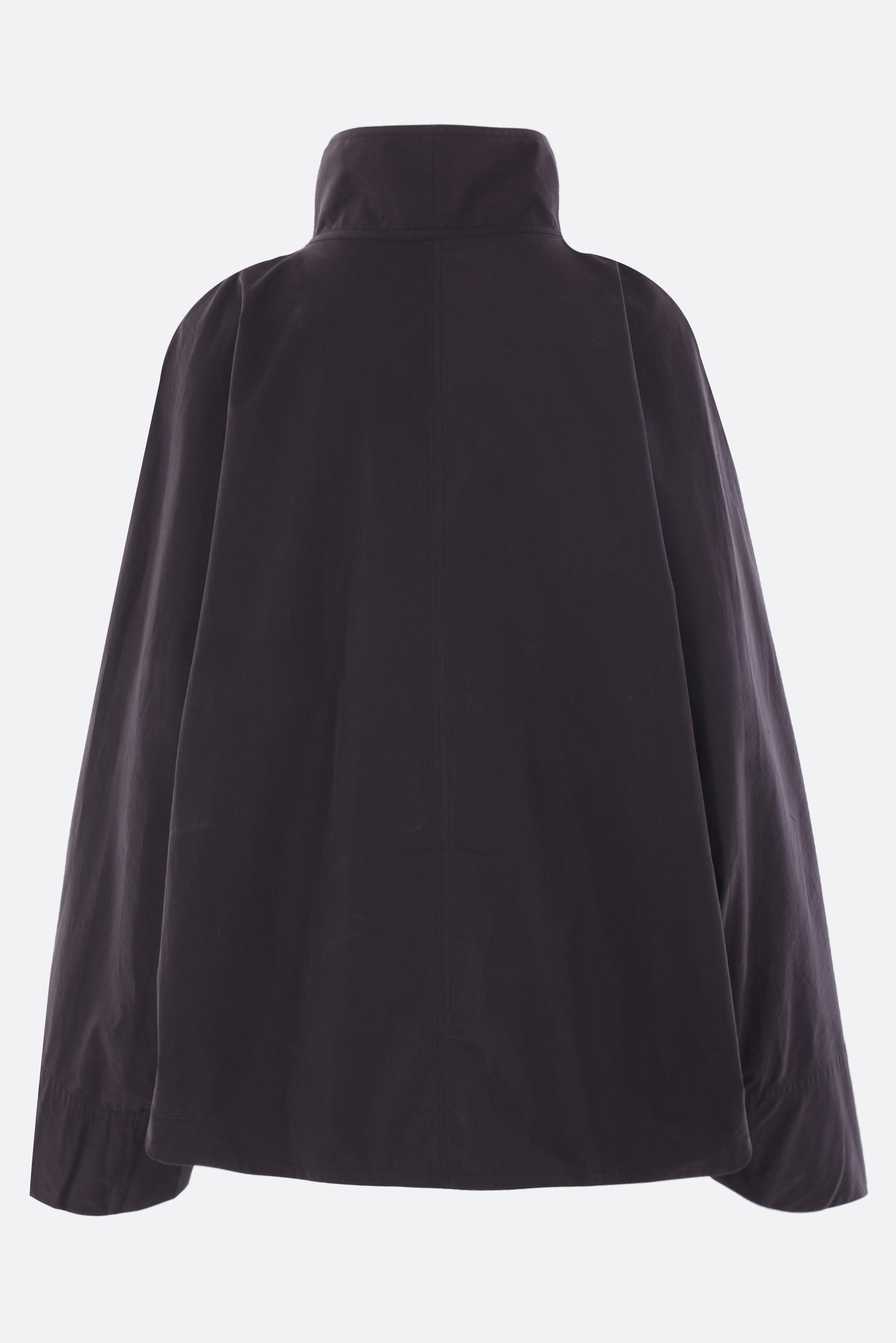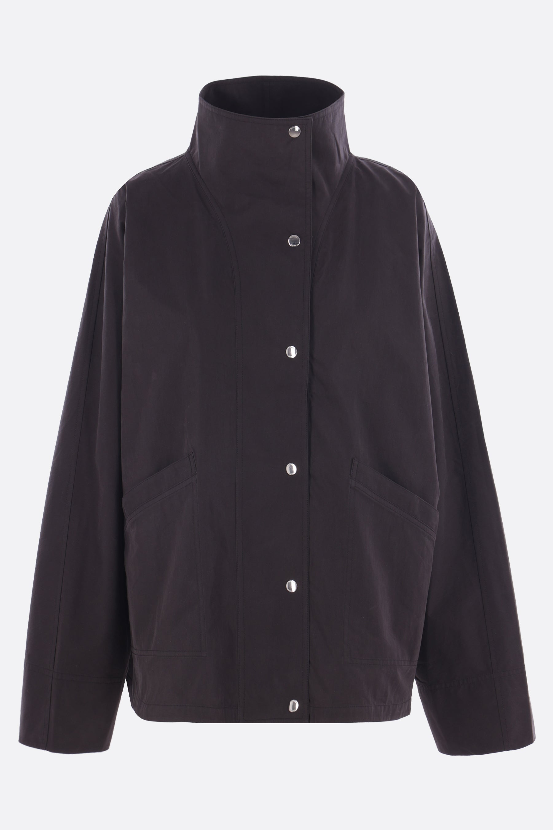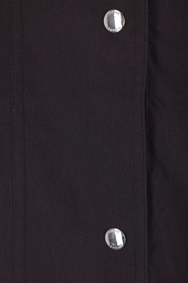 Giacca a vento oversize di Toteme realizzata in misto cotone color nero. Caratterizzata da collo alto, chiusura frontale con bottoni automatici, tasche frontali, maniche lunghe, fondo arrotondato e interno sfoderato.