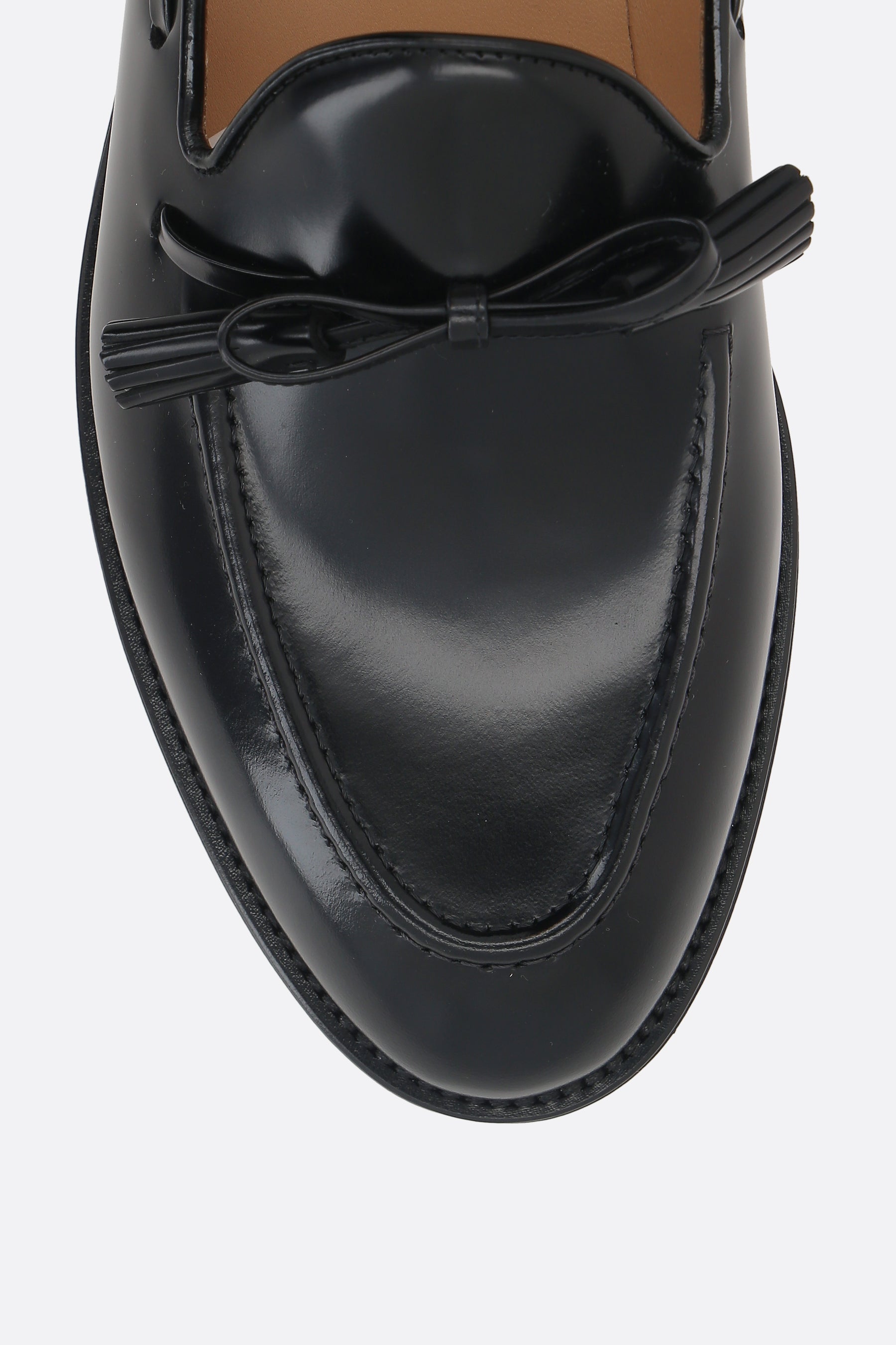 Mocassino di Valentino Garavani realizzato in pelle lucida color nero con dettaglio nappine. Caratterizzato da punta a mandorla, fodere in pelle e suola in cuoio. Completa il design il dettaglio VLogo Signature in metallo applicato sul tallone.