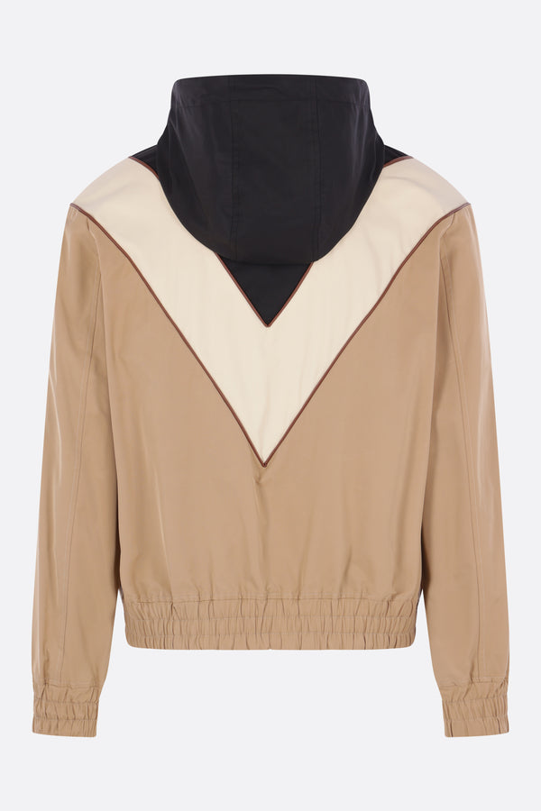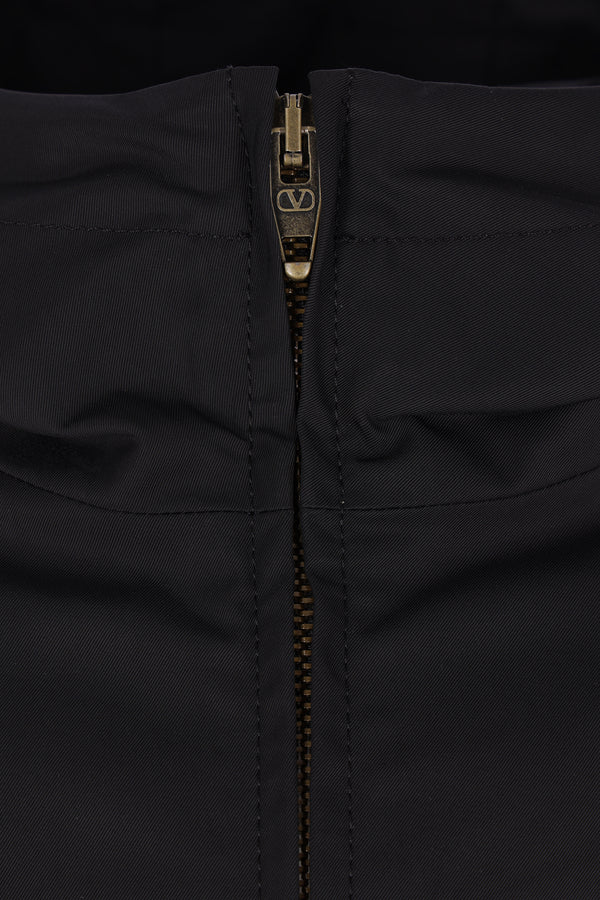Giubbotto di Valentino Garavani realizzato in nylon color nero, burro e cammello con V intarsiata e patch VLogo applicata sul petto. Caratterizzato da collo alto, chiusura frontale con zip, tasche a filetto, maniche lunghe e bordi elasticizzati. Interno foderato in nylon.