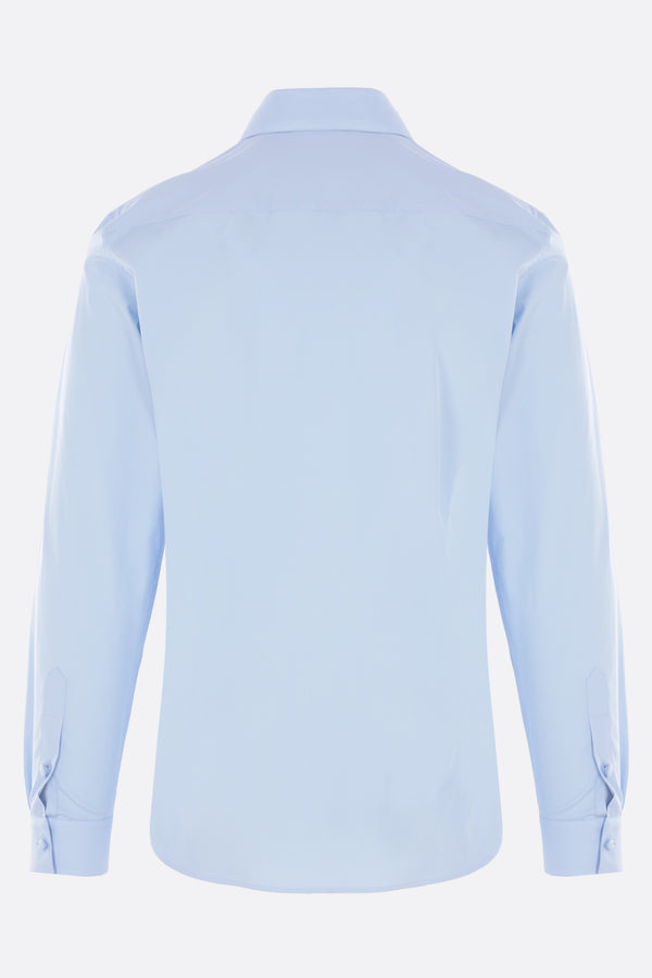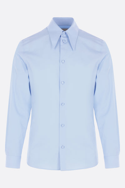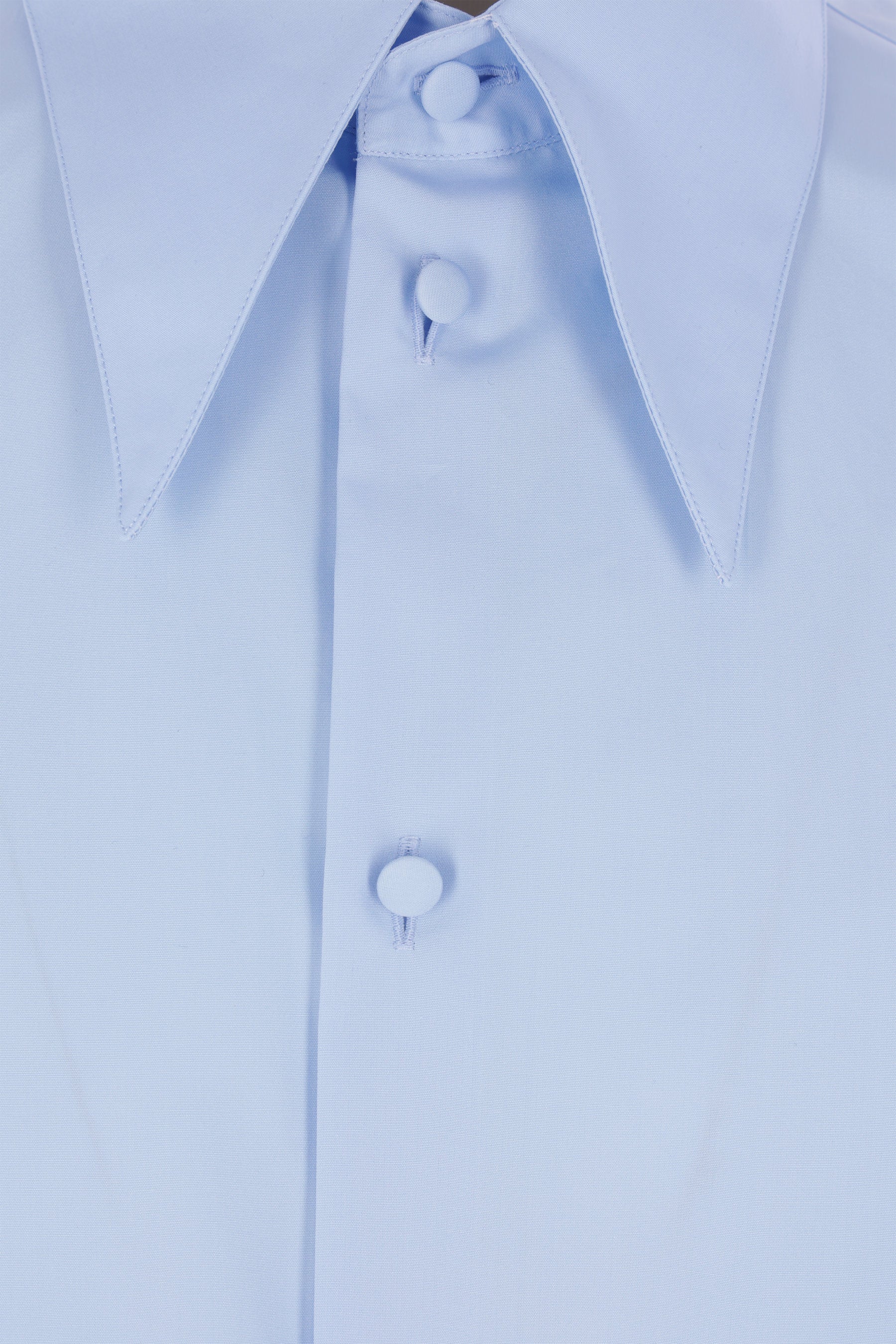 Camicia di Valentino Garavani realizzata in popeline di cotone color azzurro. Caratterizzata da colletto appuntito, chiusura frontale con bottoni rivestiti, maniche lunghe con polsini abbottonati e fondo dritto.