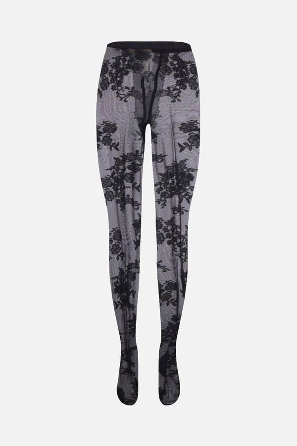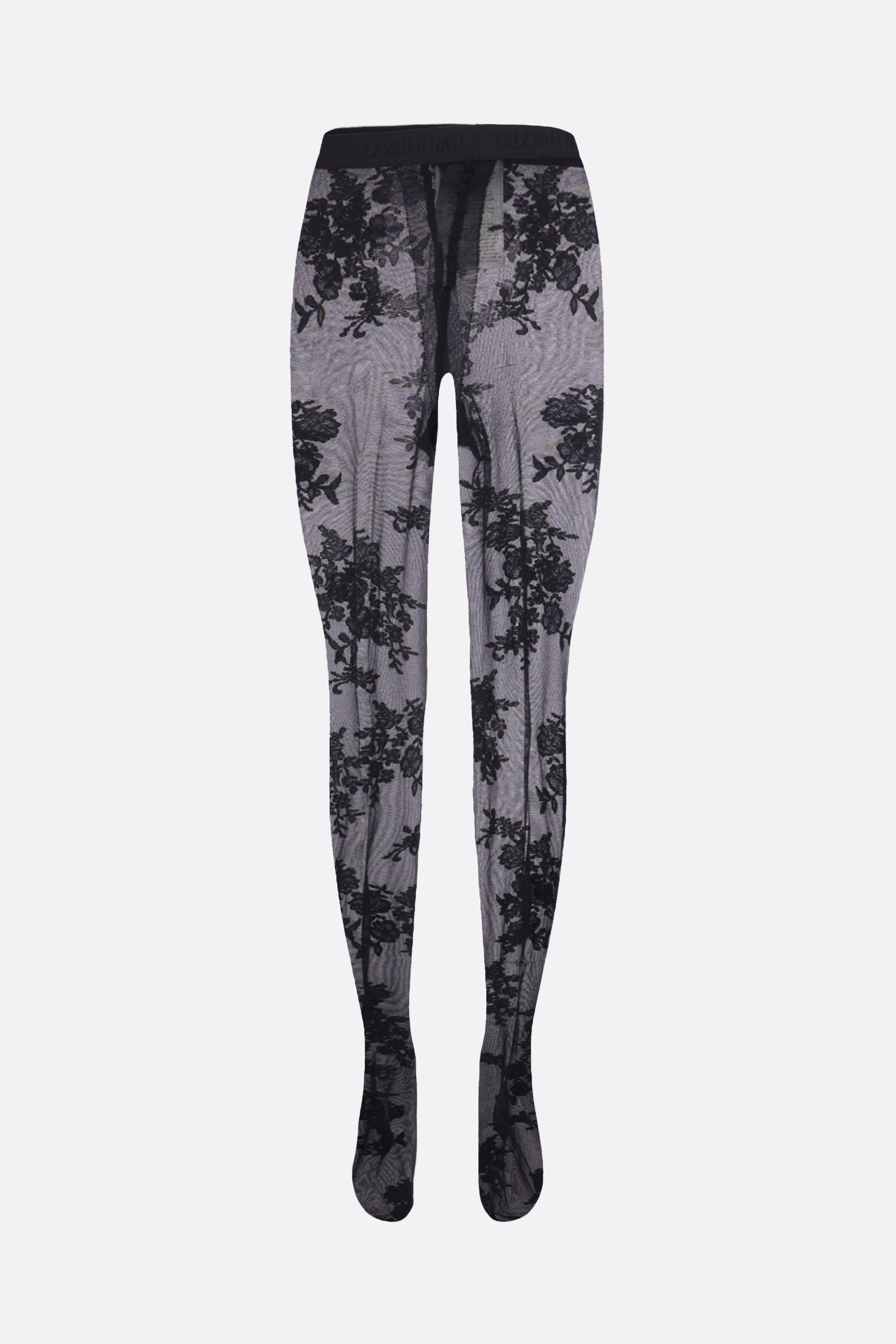Collant di Valentino Garavani realizzato in lycra color nero con motivo floreale e elastico Chez Valentino in vita.