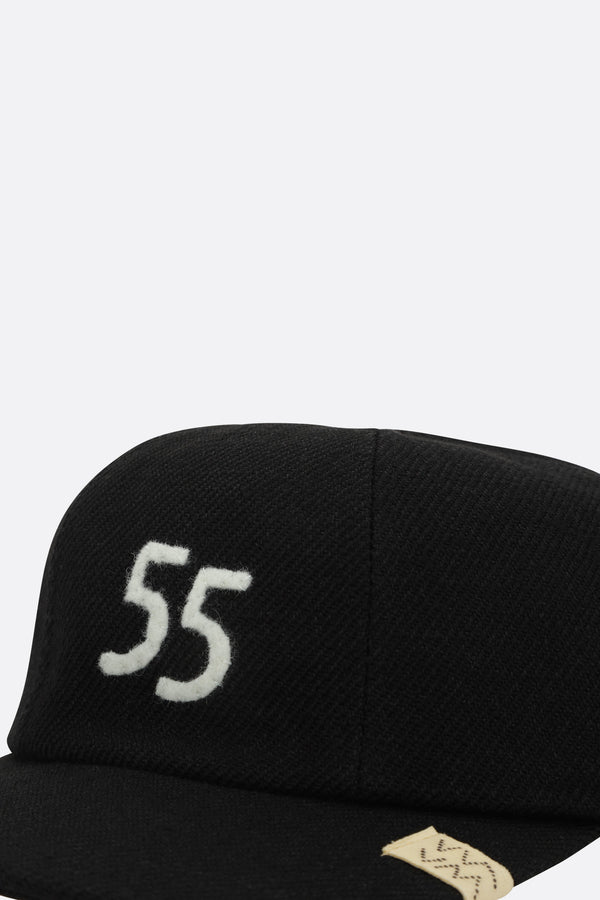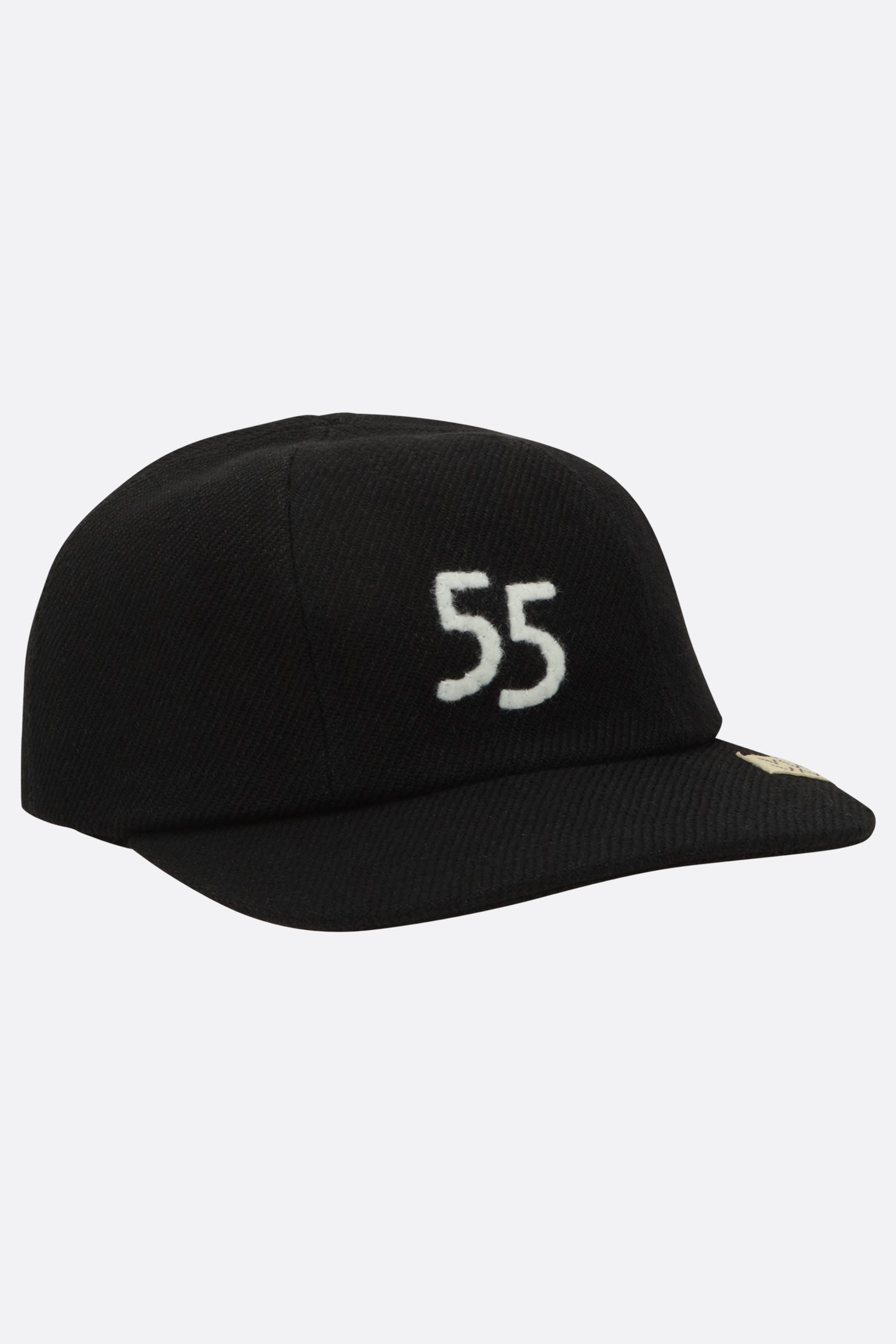 Cappello baseball di Visvim realizzato in drill di lana e lino color nero con ricamo 55 a contrasto. Caratterizzato da visiera piatta con etichetta logo e interno foderato.