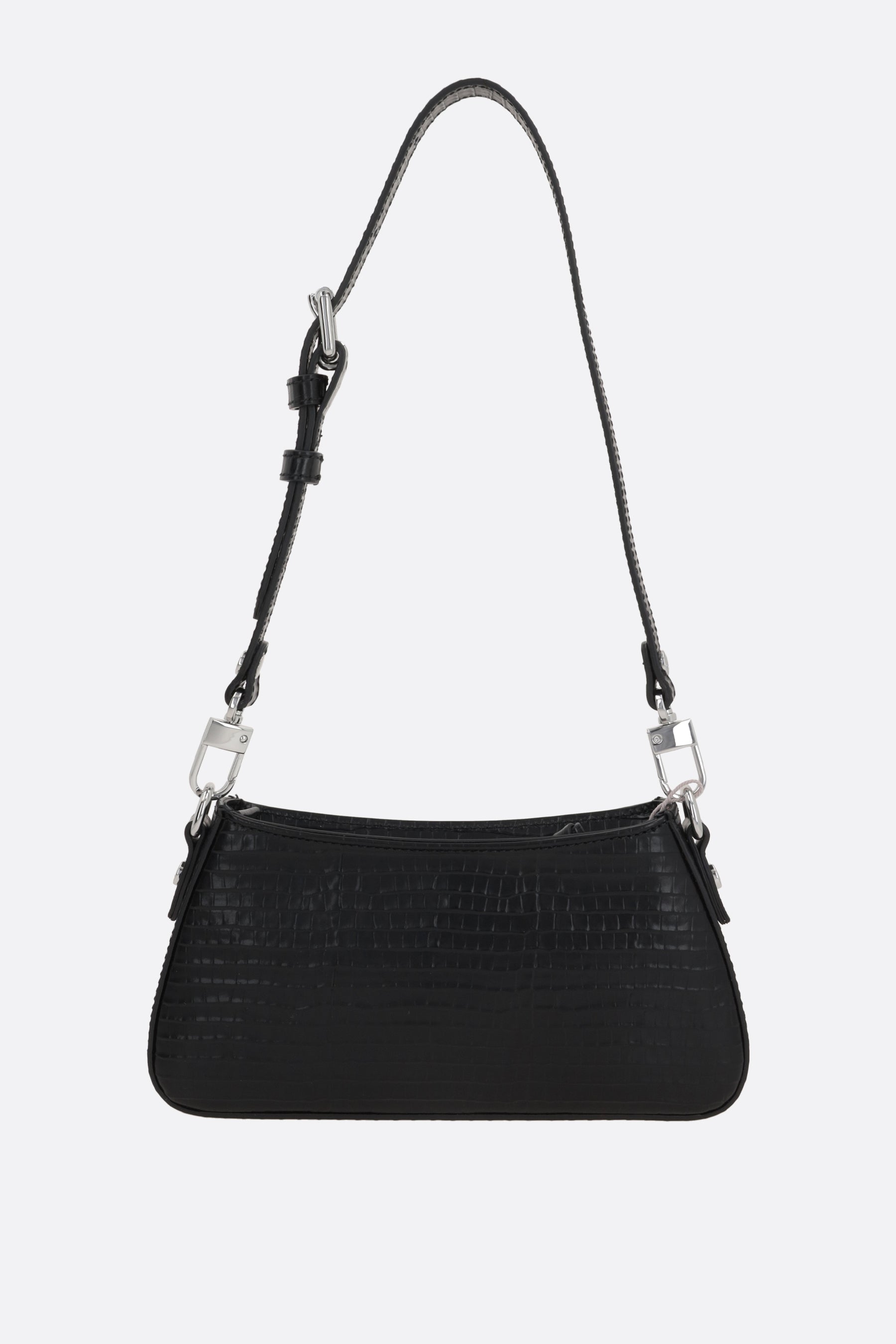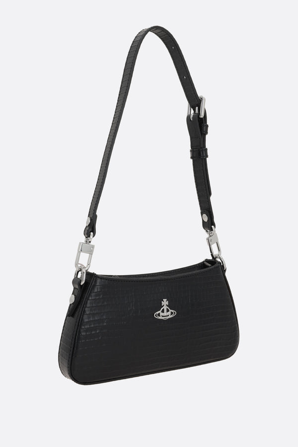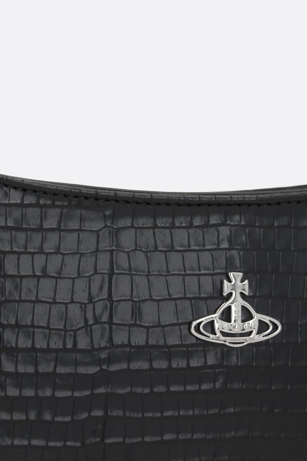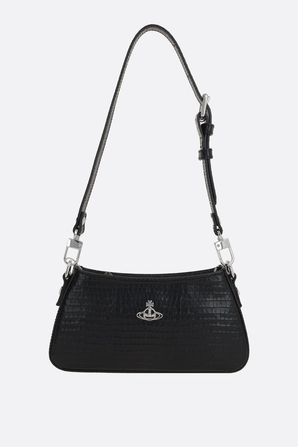 Borsa a spalla di Vivienne Westwood realizzata in pelle stampa coccodrillo color nero. Caratterizzato da metalleria color argento, chiusura con zip e spallaccio regolabile / removibile. L'interno foderato in tessuto color nero è dotato di fessura per carte. Completa il design il logo Orb in metallo.