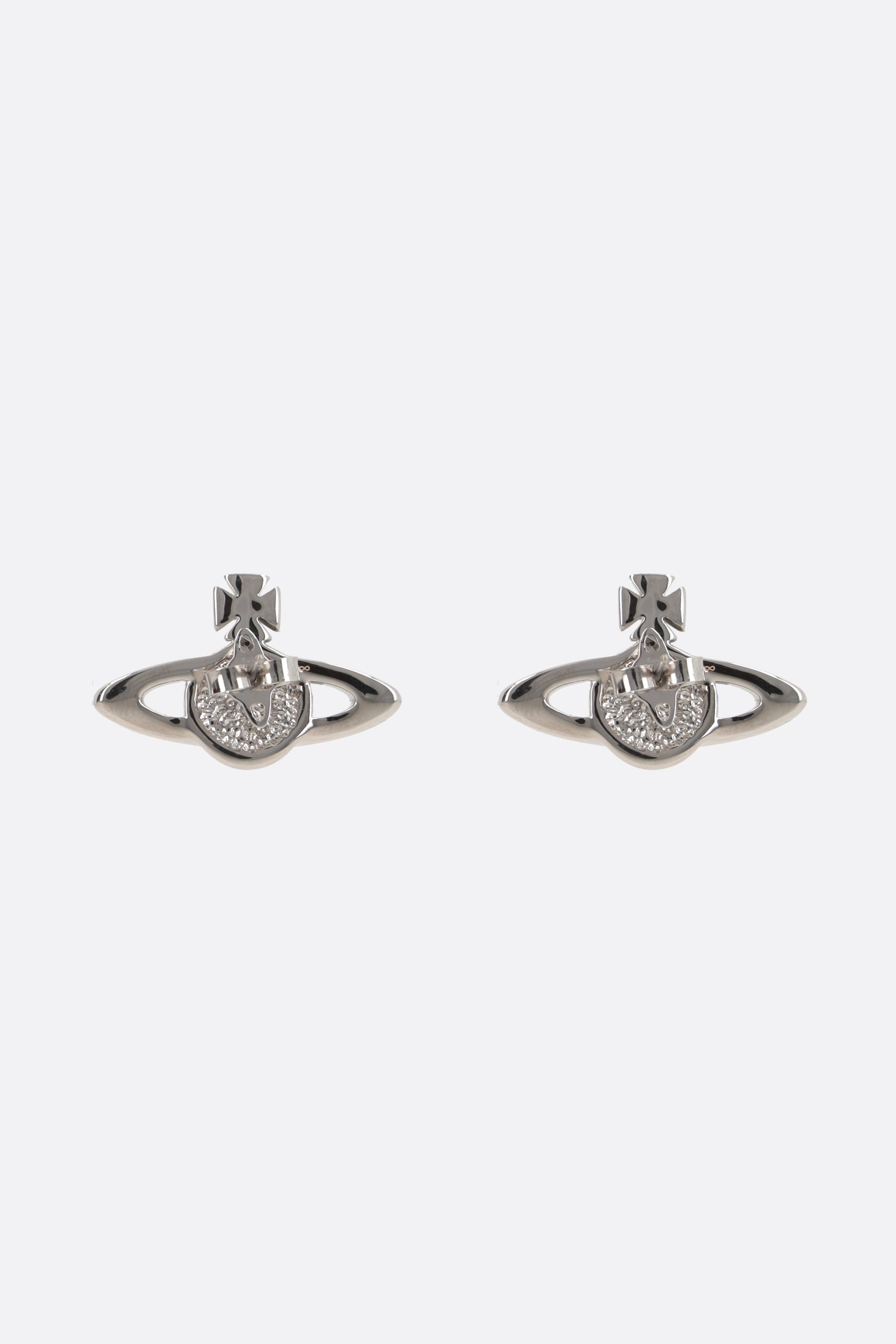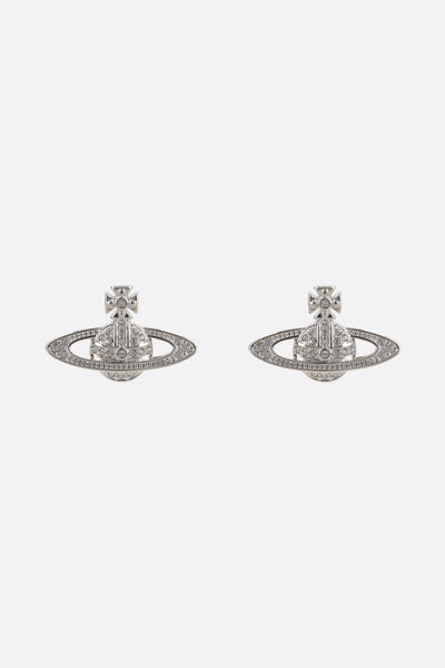 Orecchini di Vivienne Westwood realizzati in ottone finitura platino decorati con cristalli trasparenti. Caratterizzati da chiusura a farfalla per orecchie forate.