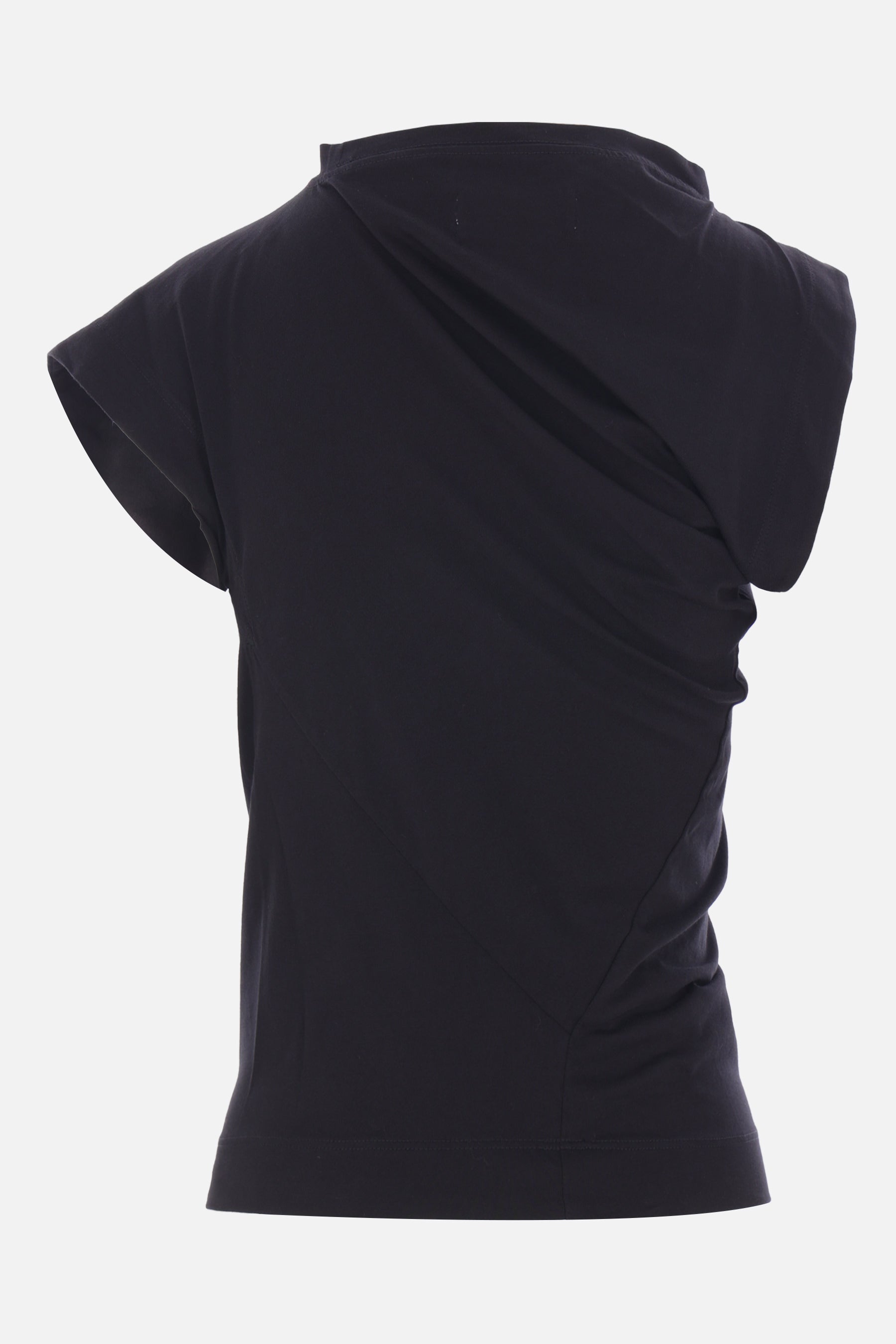 Top di Vivenne Westwood realizzato in cotone organico color nero. Caratterizzato da scollatura a giro, maniche corte asimmetriche, ricamo logo Orb al petto e fondo dritto.
