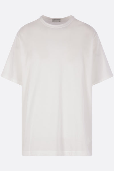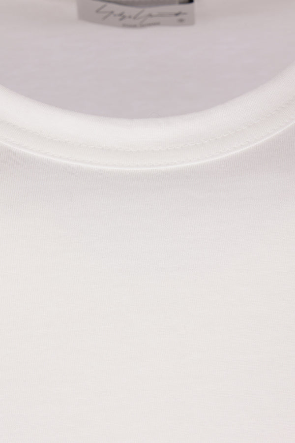 T-shirt oversize di Yohji Yamamoto realizzato in jersey di cotone color bianco. Caratterizzato da scollatura a giro, maniche corte e fondo dritto.
