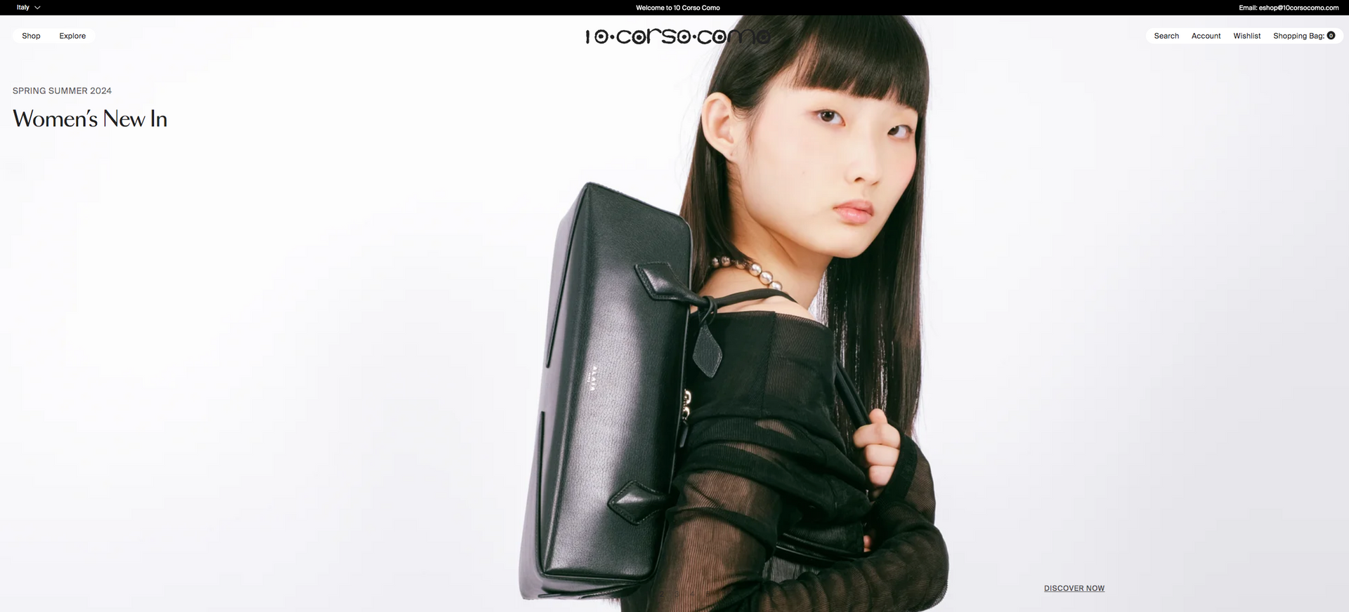 The E-commerce. 10 Corso Como makes its entry into the virtual world. An exciting new chapter is written with the launch of e-commerce. The visual identity of 10 Corso Como, a series of circles and lines, is a metaphor for time and space. In the new 10 Corso Como e-shop, the seeds of this visual concept feed a wonderful ever recombining of these primary elements in a continuous evolution. 10 Corso Como personalizes taste and not trends, it is synonymous with a choice of style.