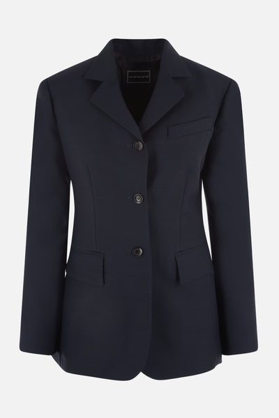 10 Corso Como's single-breasted jacket crafted in beige rubelia. Featuring notch lapel, button closure, padded shoulders, long sleeves with buttoned cuffs, front pockets and back vents.