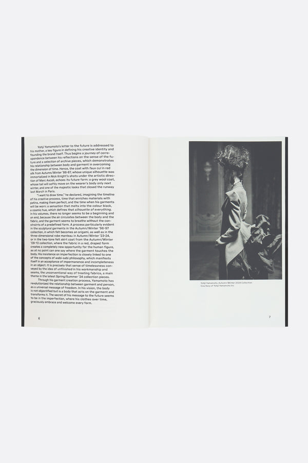 Yohji Yamamoto. Letter to the Future is the publication that accompanies the related exhibition presented by 10 Corso Como with Yohji Yamamoto, marking the designer's return to Italy after two decades. The exhibition, open to the public from May 16 to July 30, 2024, is set up at the renovated 10 Corso Como Gallery. Edited by Alessio de'Navasques, the volume - in English - documents the exhibition project with a rich iconographic apparatus. The curator's text traces the directions of the path that, through twenty-five dresses from different periods and collections - as ideal chapters of a missive addressed to the future - defines Yamamoto's ambivalent and poetic relationship with time. In her contribution, Linda Loppa - former Director of the MoMu Museum in Antwerp and curator of one of the most significant exhibitions dedicated to Yamamoto, Dream Shop (2006) - evokes the exceptionalism of the designer, in a personal narrative. Gilda & Bodha's photo project offers a special view of the exhibition in relation to the industrial matrix of the space and in an architectural interpretation of the volumes and details of the clothes.Completing the volume are installation views by DSL Studio and a complete registry of the dresses in theexhibition.