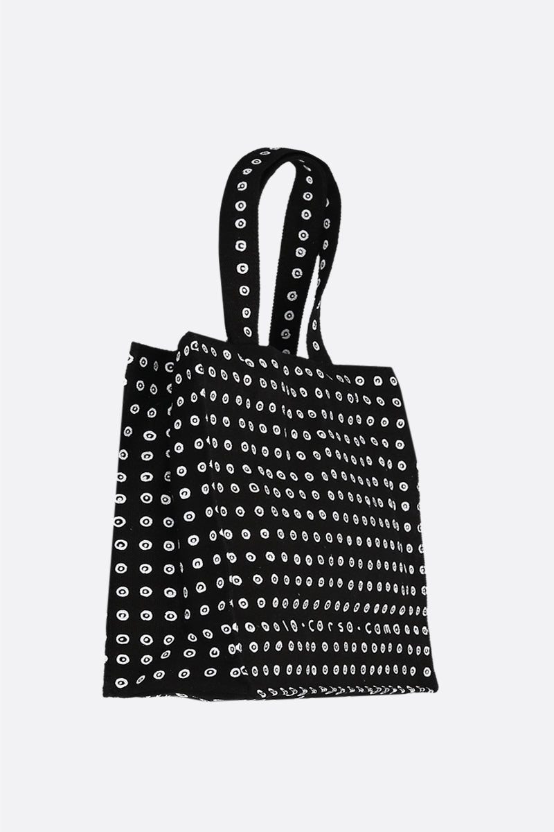 10 Corso Como's practical shopping bag crafted in black cotton canvas with contrasting logo print. It features double handle and unlined interior.