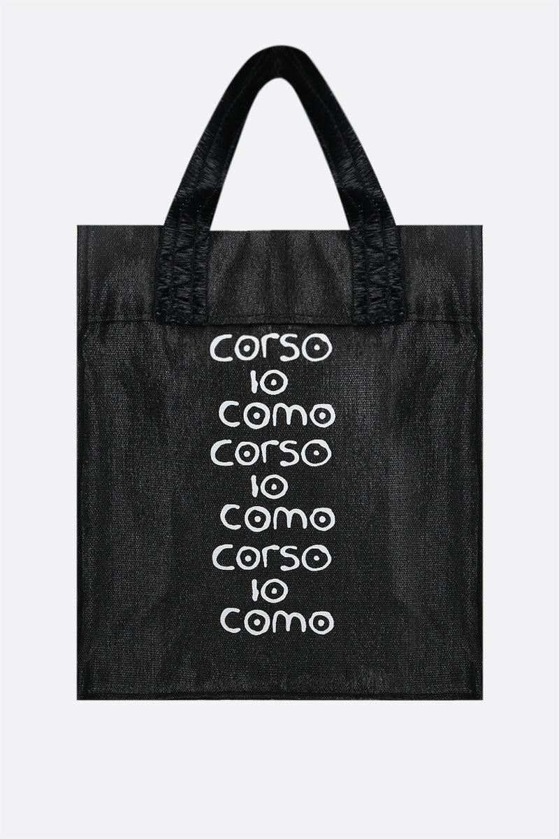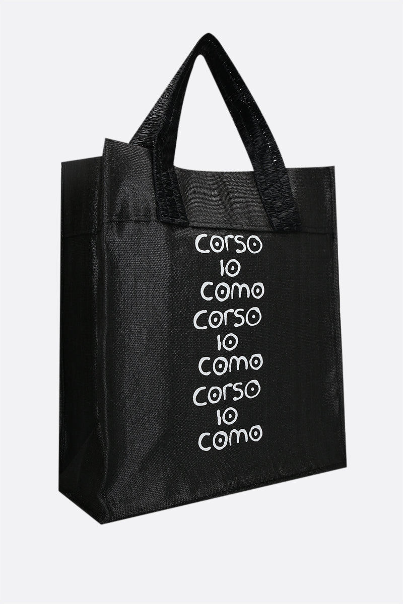 10 Corso Como's iconic tote bag crafted in black raffia with contrasting logo print. It features double handle and unlined interior.