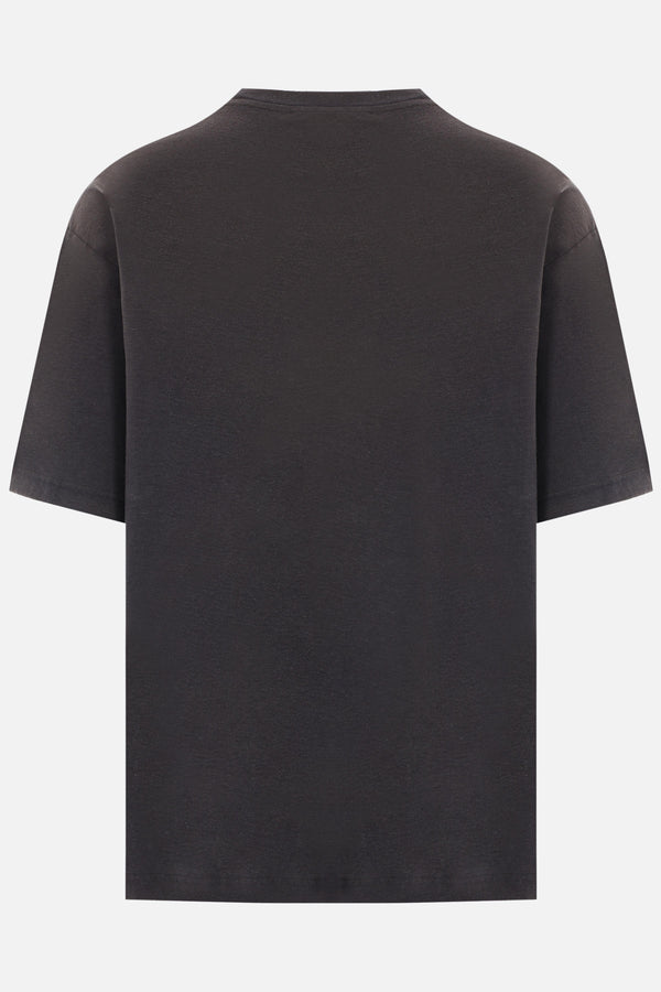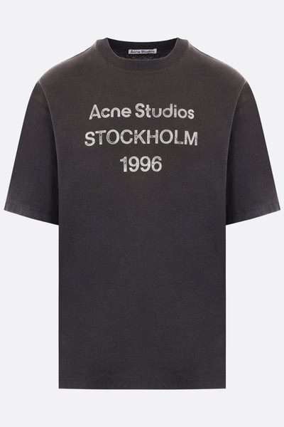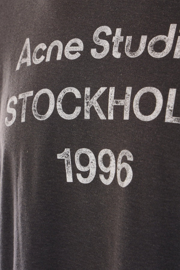 Acne Studios t-shirt crafted in faded black cotton and hemp jersey with distressed effect and Acne Studios 1996 print on front. It features crew neck, short sleeves and straight hem.