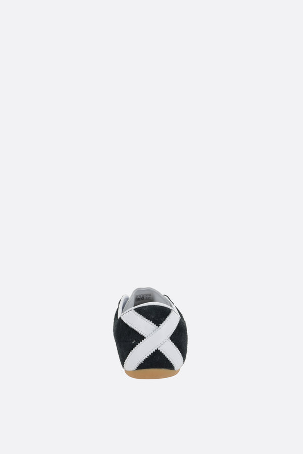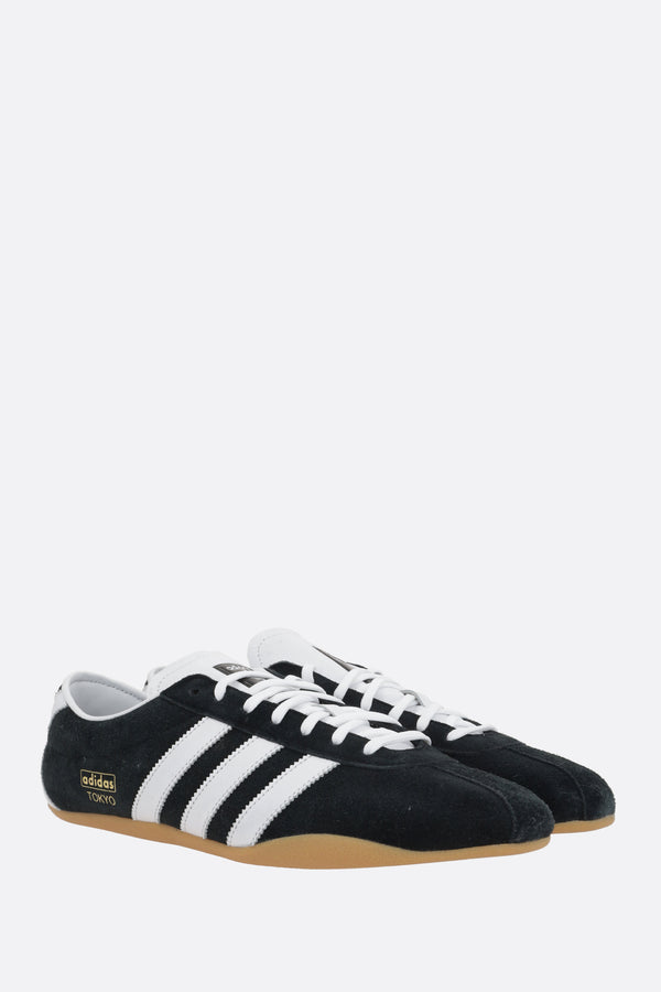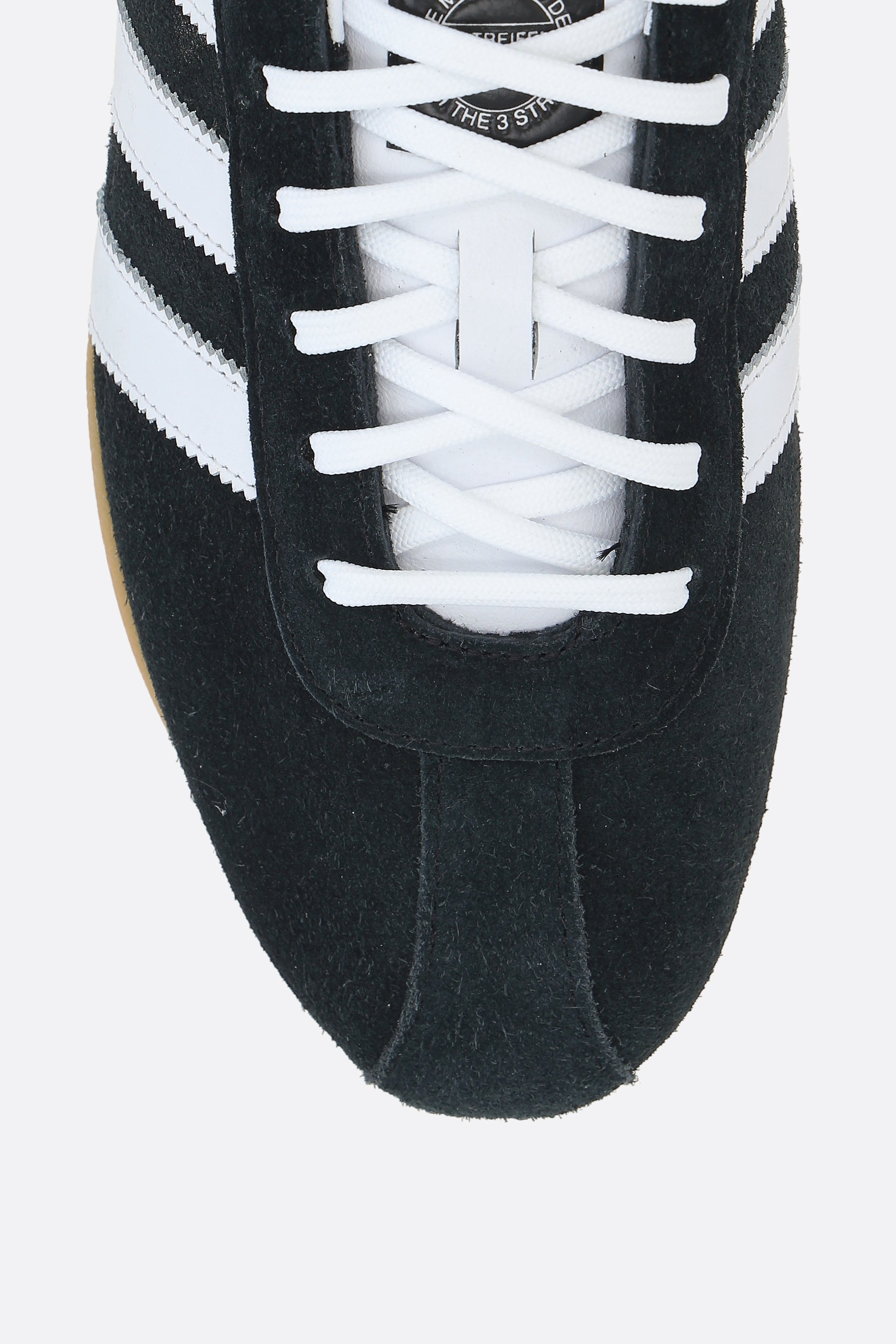 adidas low-top sneakers crafted in black suede with crisscrossed bands on the heel. Featuring lace-up closure, a round-toe silhouette, fabric lining and rubber sole. The design is completed by the iconic 3-Stripes detail along sides and the distinctive logo print on tongue.