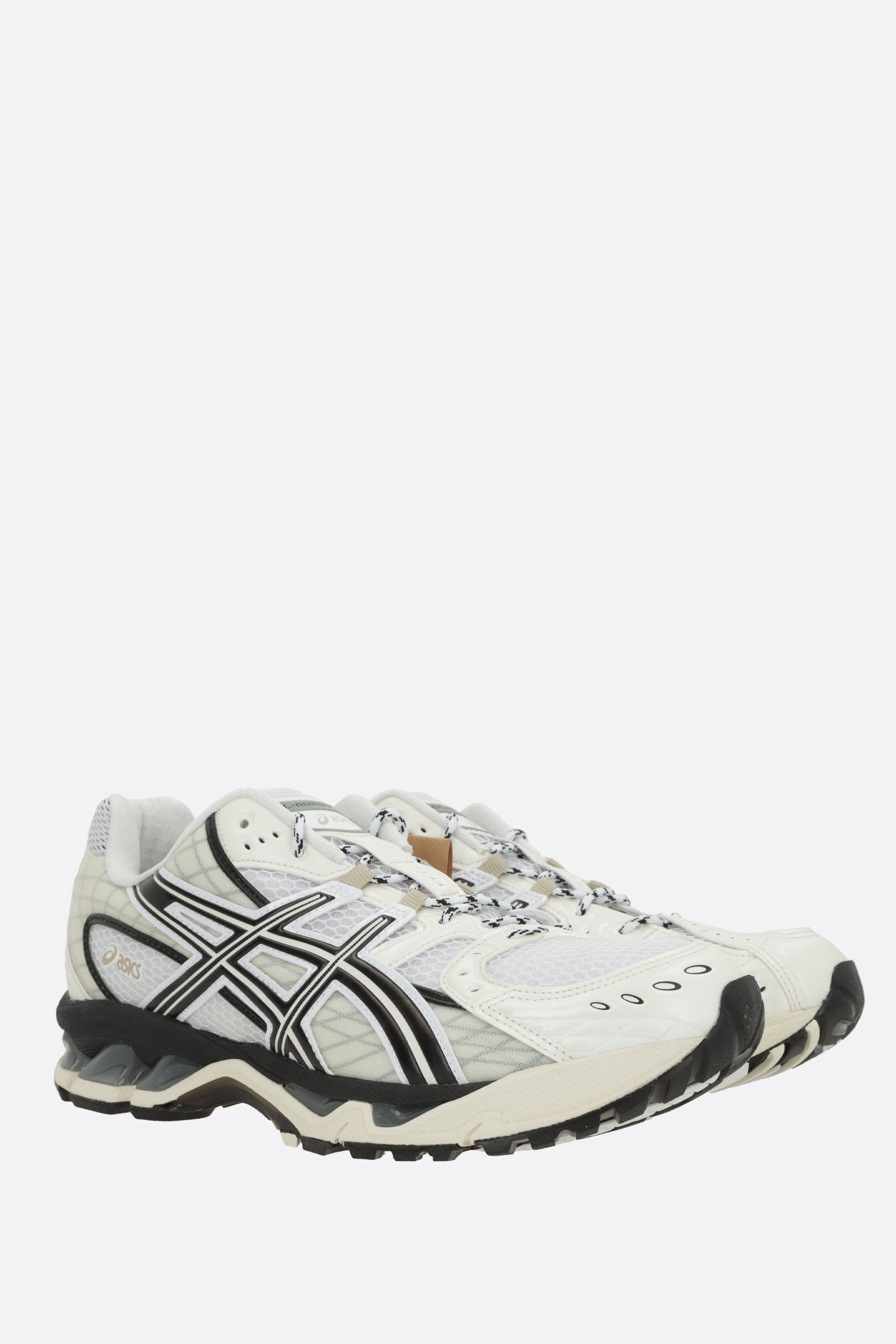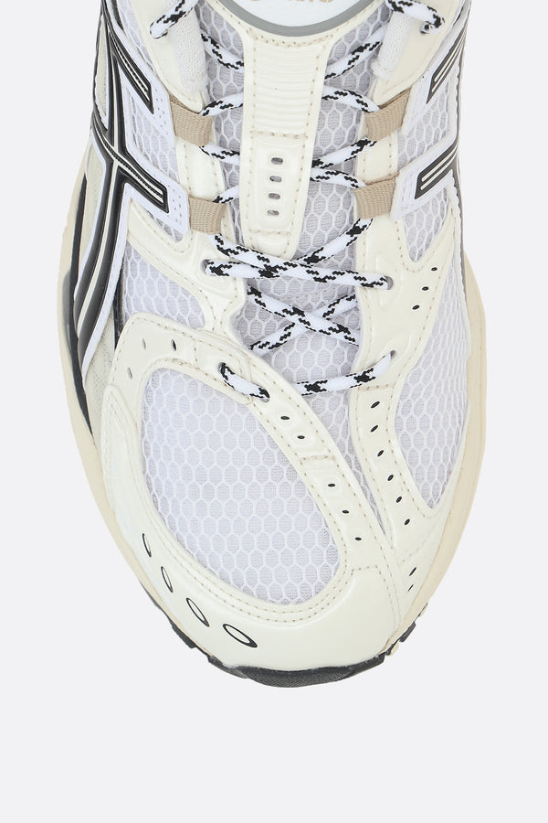 Asics low-top sneakers made of white mesh and ivory faux leather. Featuring a lace-up closure, rounded toe, fabric linings, GEL inserts, a dual-layer EVA foam midsole, and a textured rubber sole. The design is completed with the iconic logo patch on the tongue.