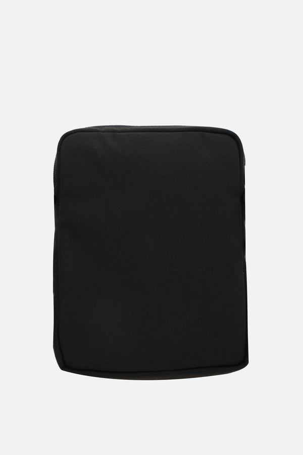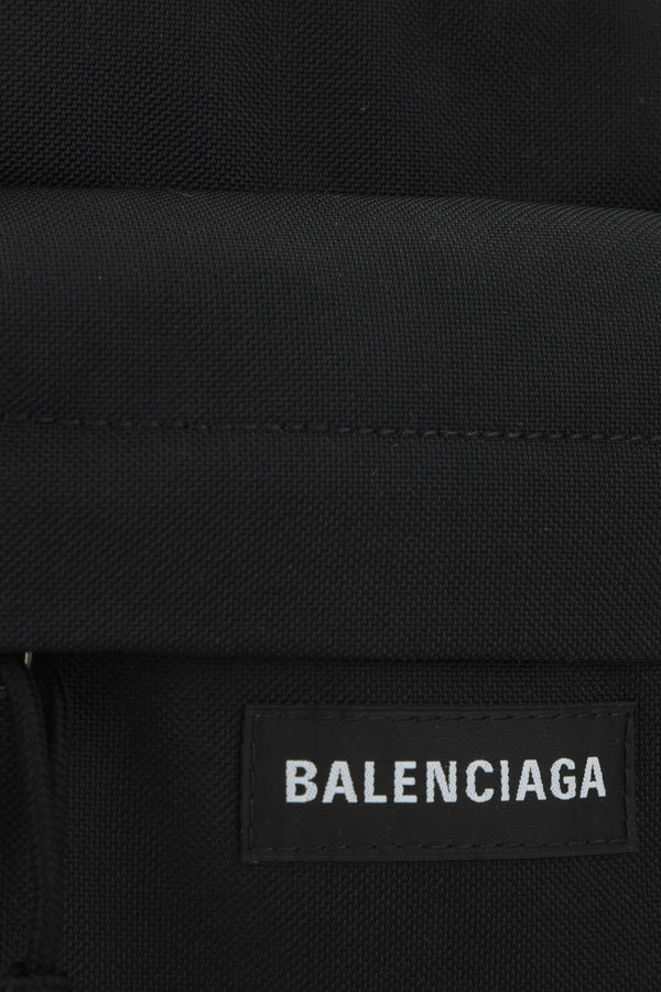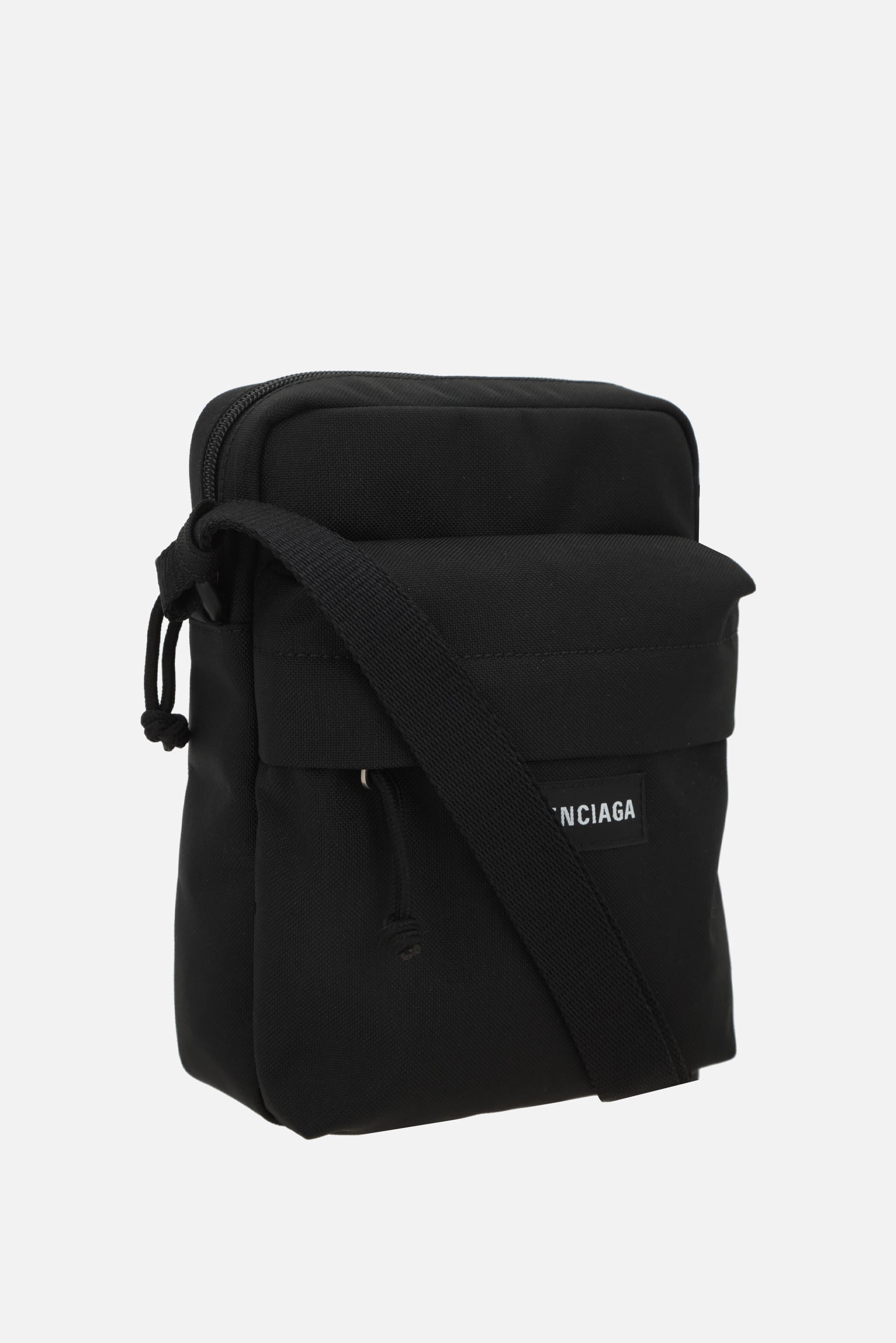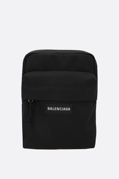 Balenciaga crossbody bag crafted from black recycled nylon. Featuring silver-tone hardware, zip closure, and an adjustable shoulder strap. The interior is lined in black canvas and includes a flat pocket. Finished with a front zip pocket and the iconic logo patch.