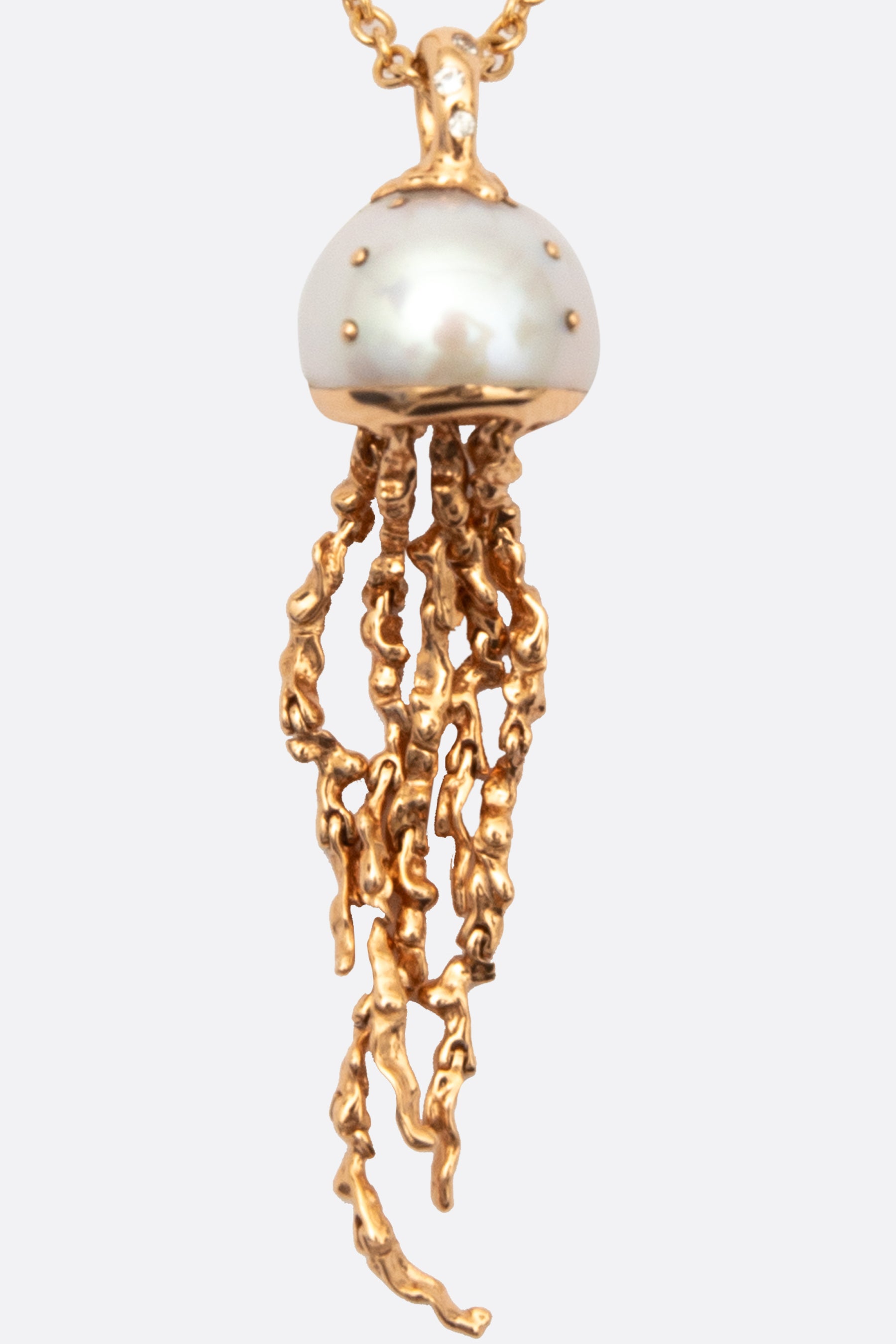 Bibi Van Der Velden chain necklace crafted from rose gold and adorned with a pendant featuring an Akoya pearl. Featuring an adjustable lobster clasp closure.