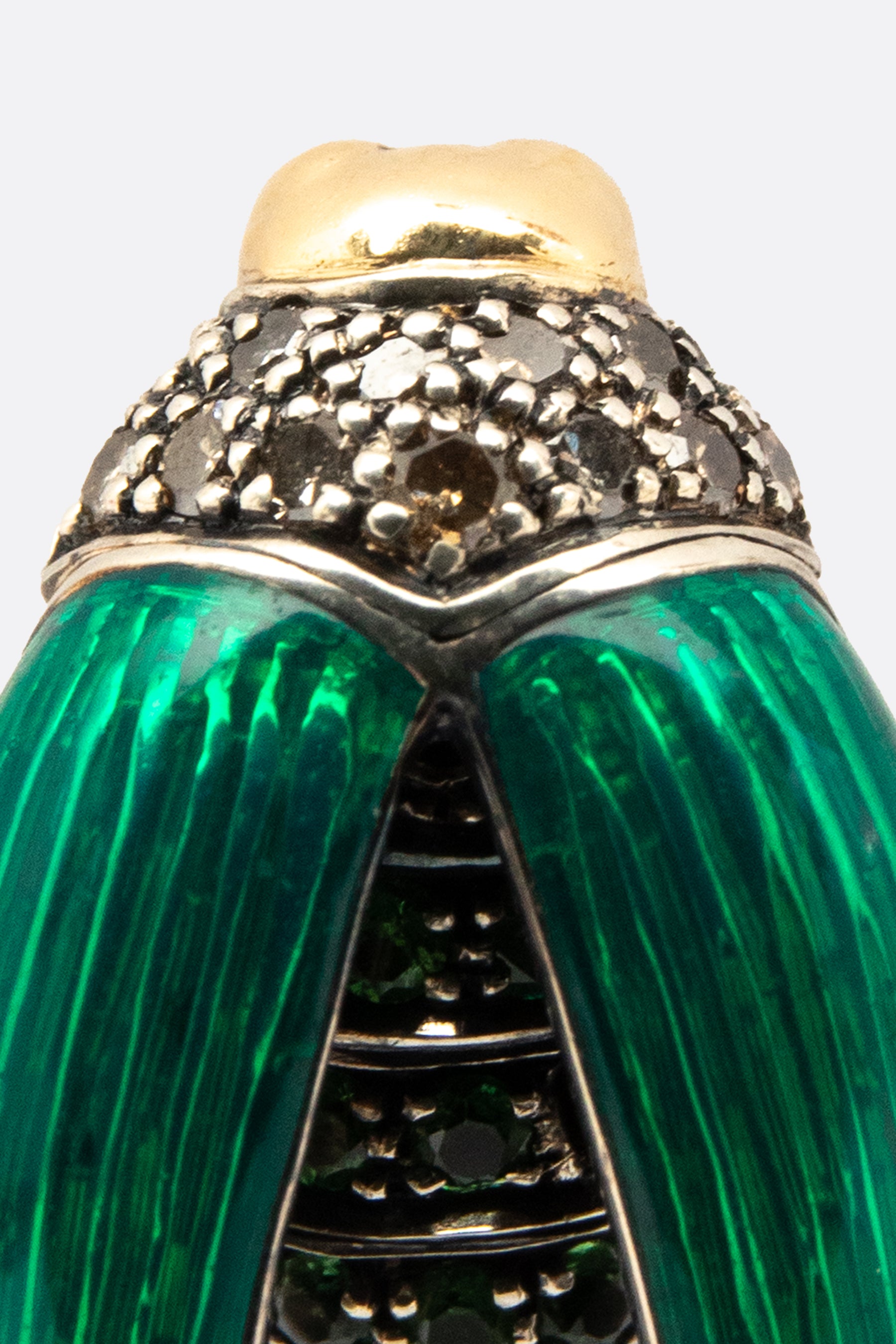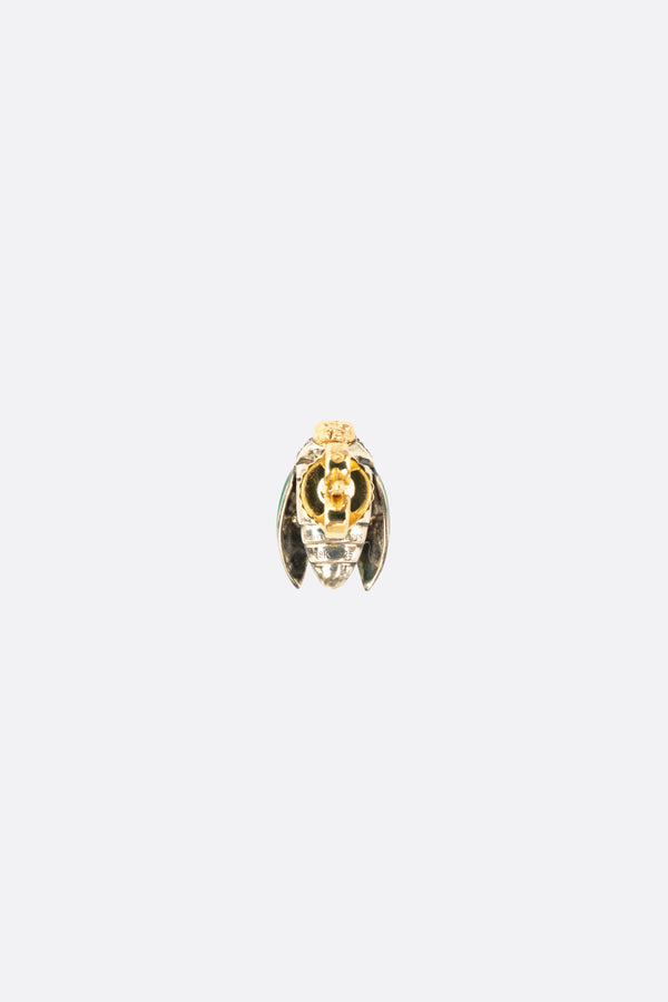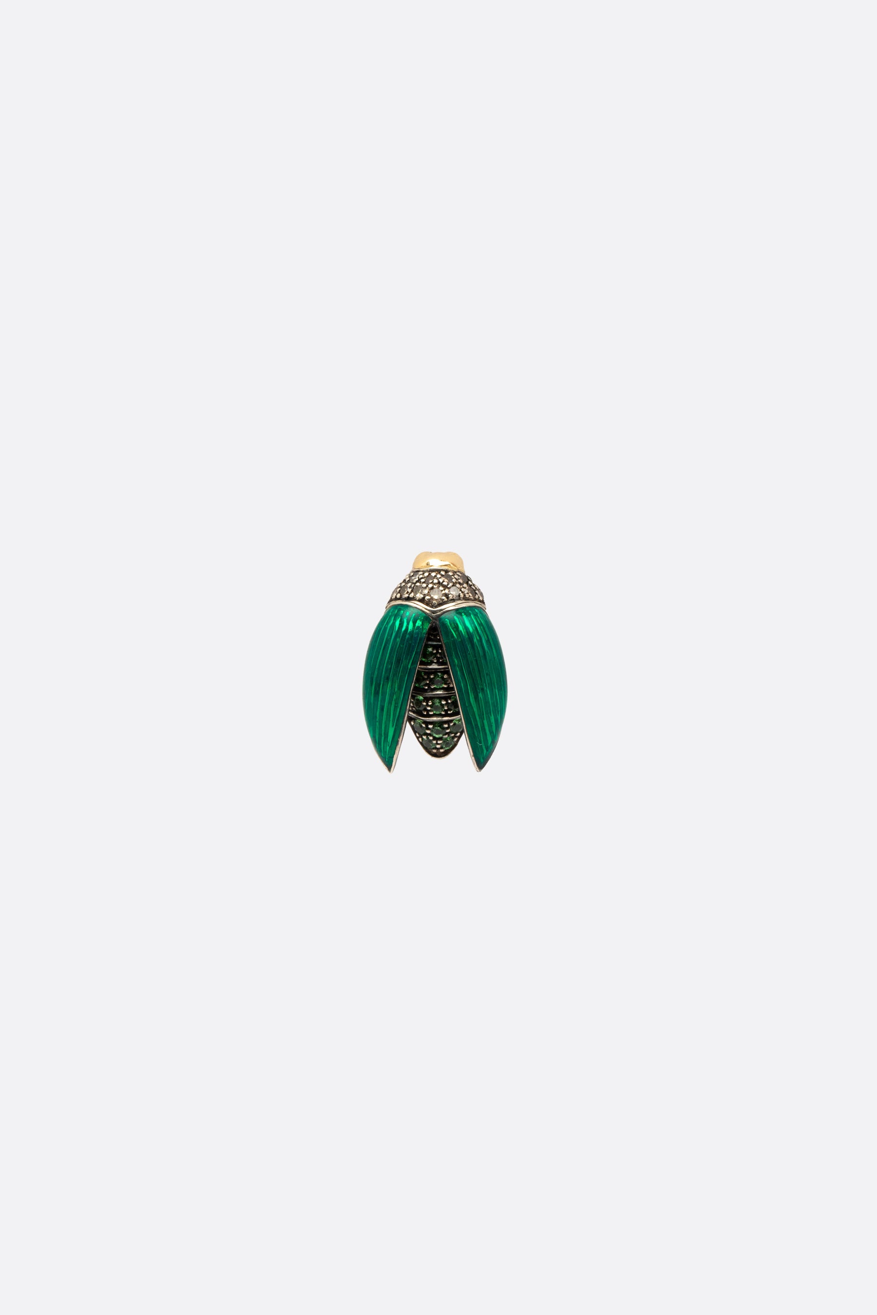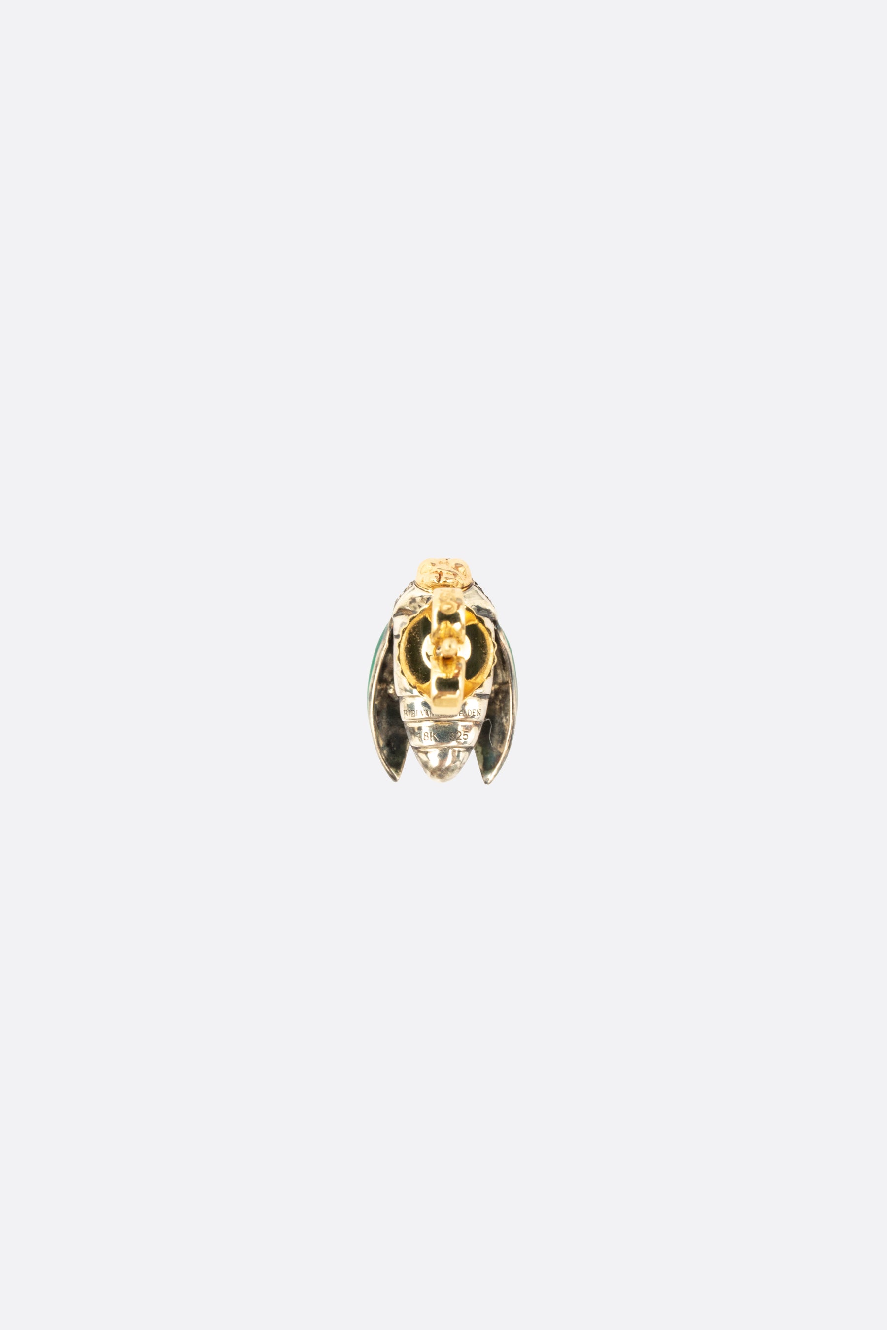 Bibi Van Der Velden single earring crafted from 18k yellow gold and sterling silver, embellished with brown diamonds, tsavorites, and green enamel. Featuring a butterfly back closure for pierced ears.