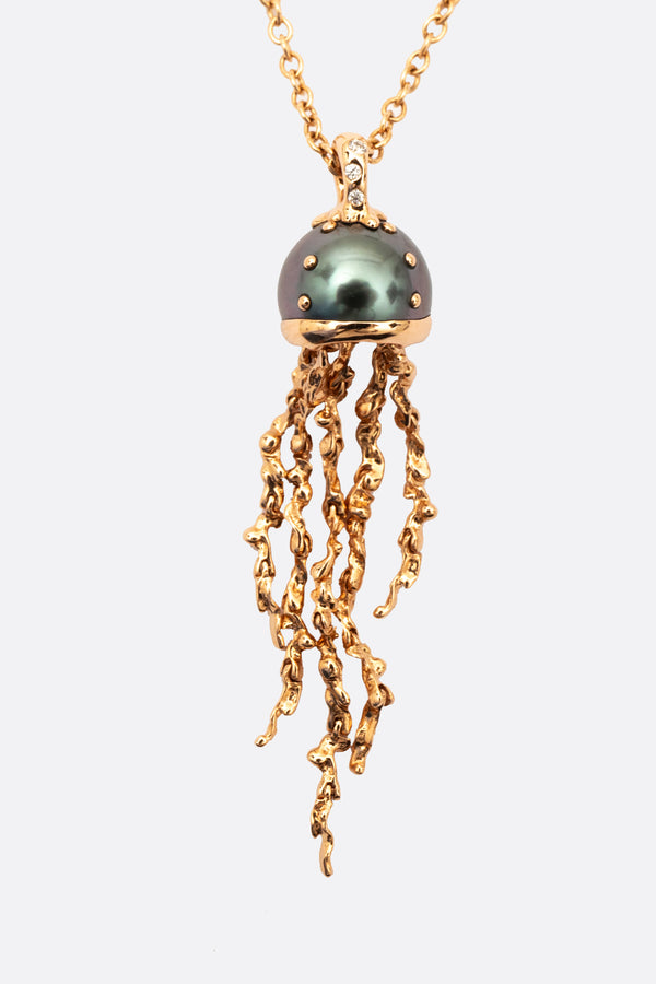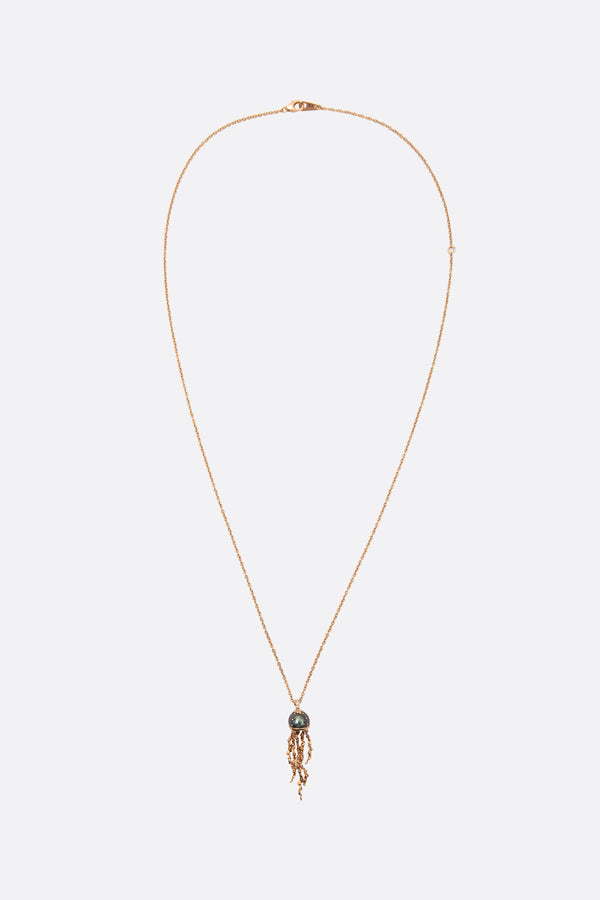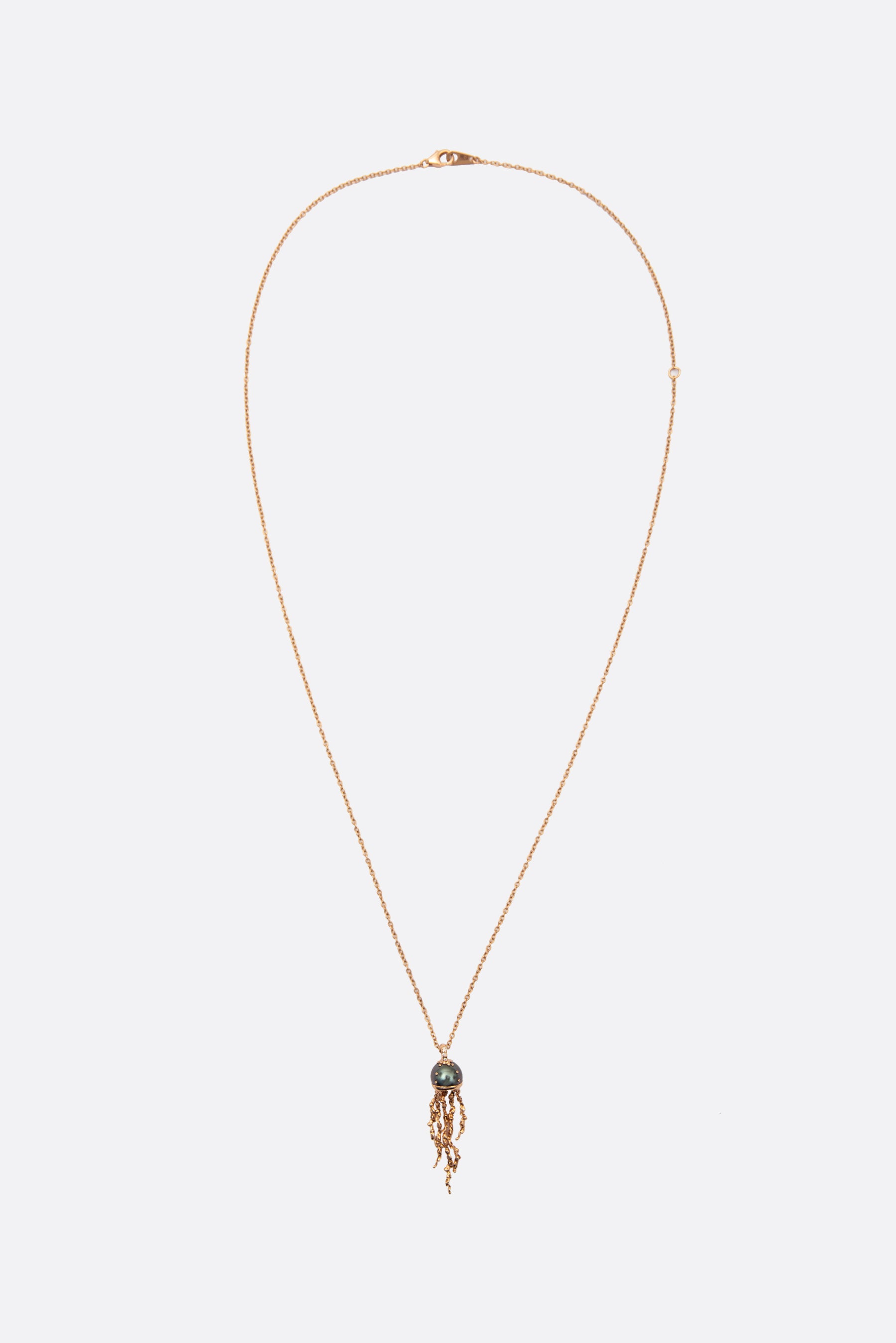 Bibi Van Der Velden chain necklace crafted from rose gold and adorned with a pendant featuring a Tahitian pearl. Featuring an adjustable lobster clasp closure.