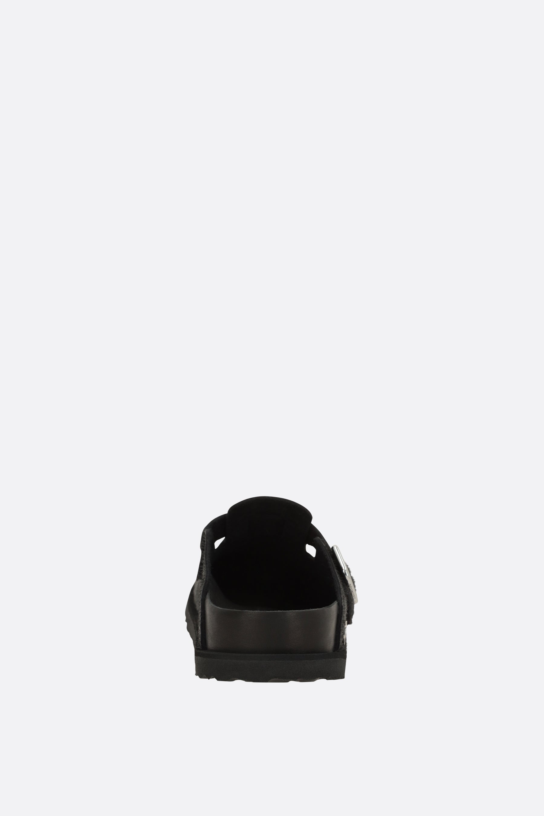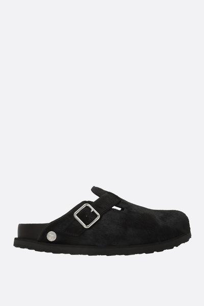 Birkenstock 1774 flat mules crafted from black pony hair. Featuring a rounded toe, an adjustable strap with a metal buckle, leather linings, and a lightweight EVA rubber sole. The design is completed by the iconic metal logo applied on the side.
