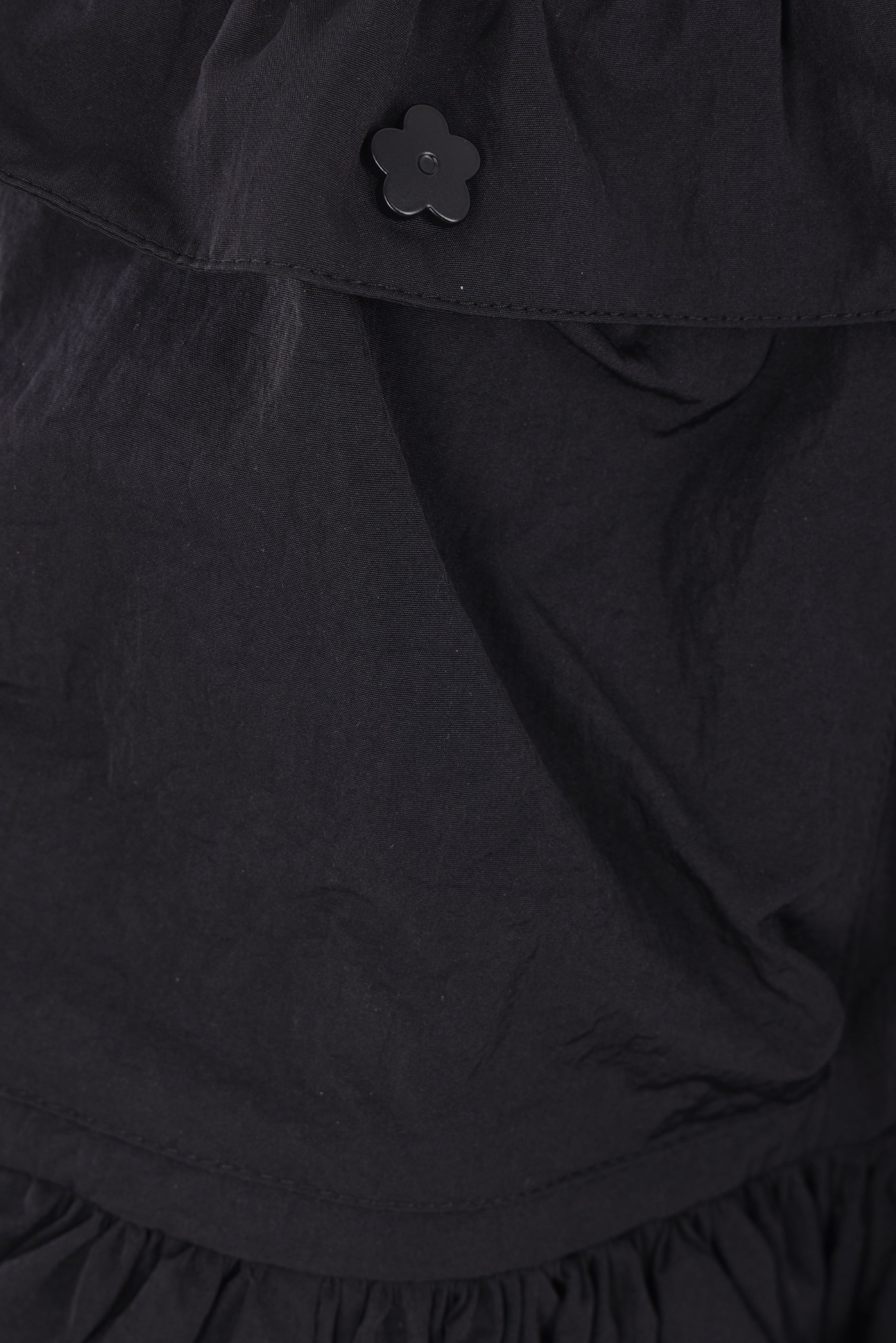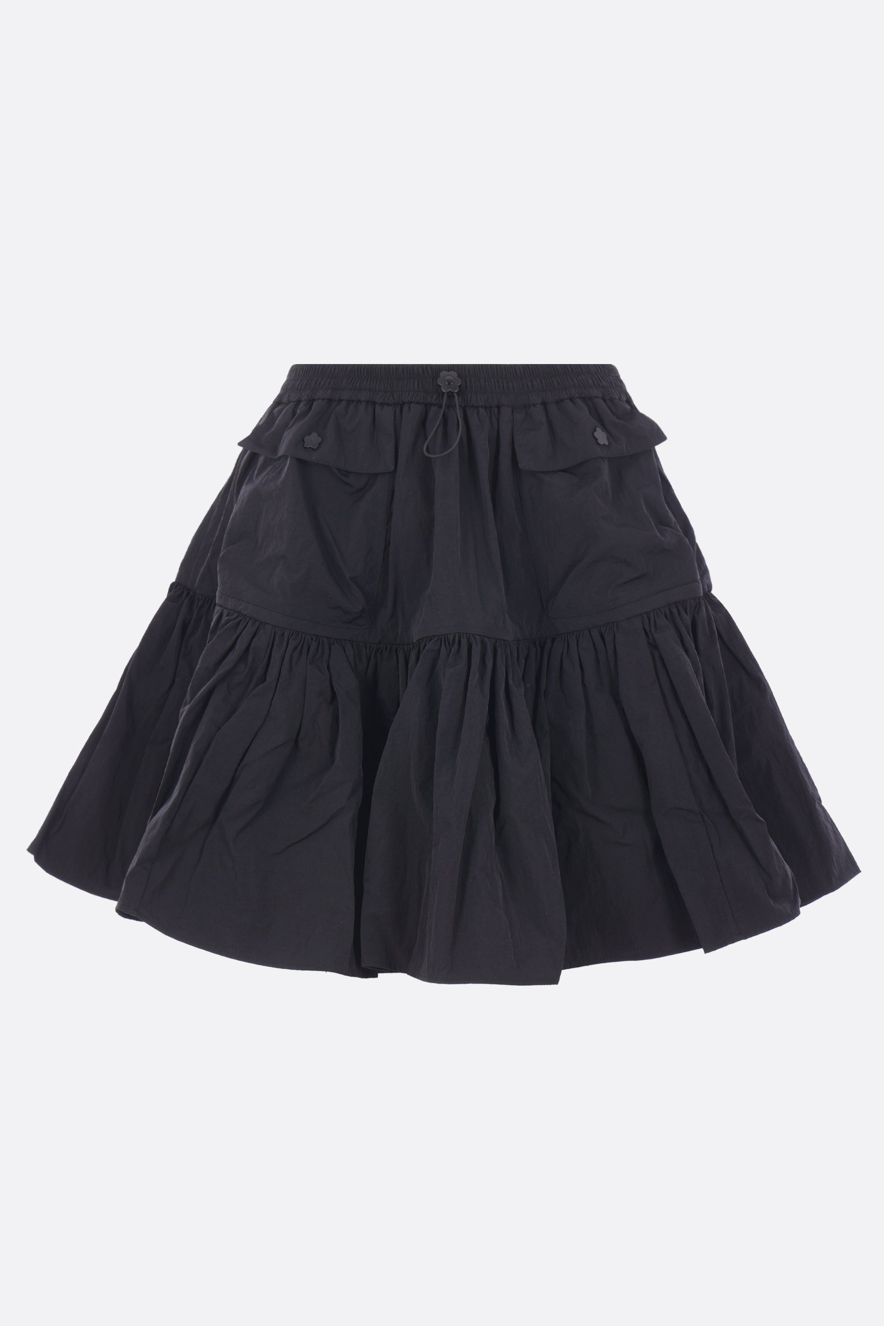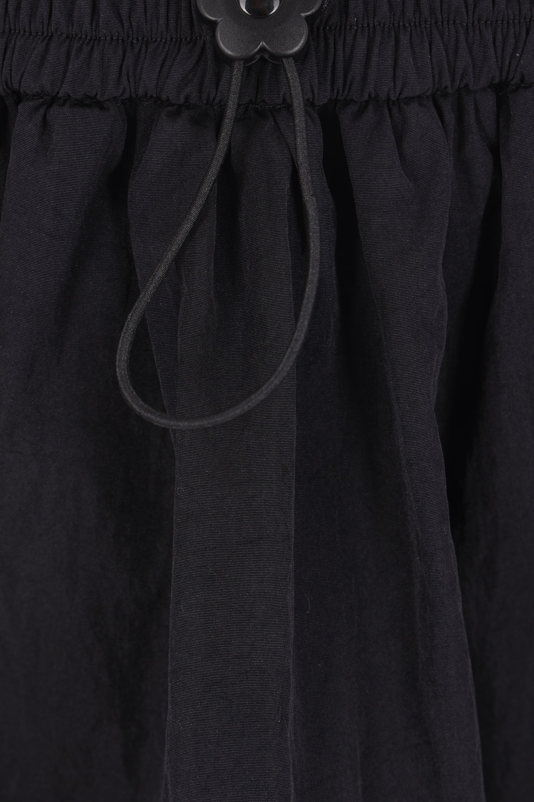 Cecilie Bahnsen circle skirt made of black recycled nylon taffeta. Featuring an elasticated waistband with drawstring, front flap pockets, and unlined interior.