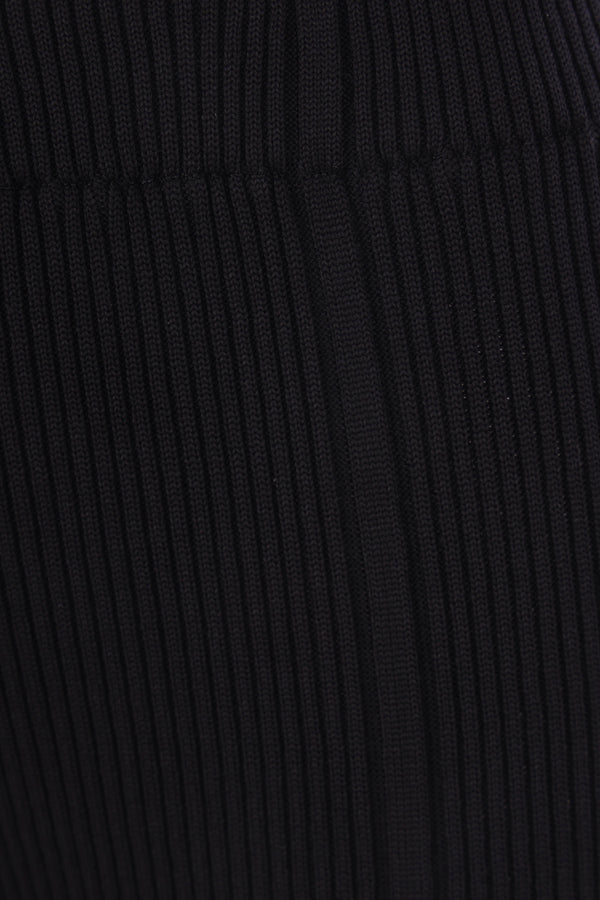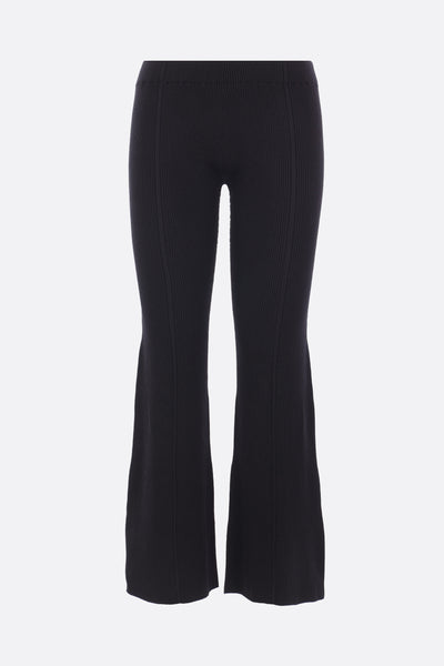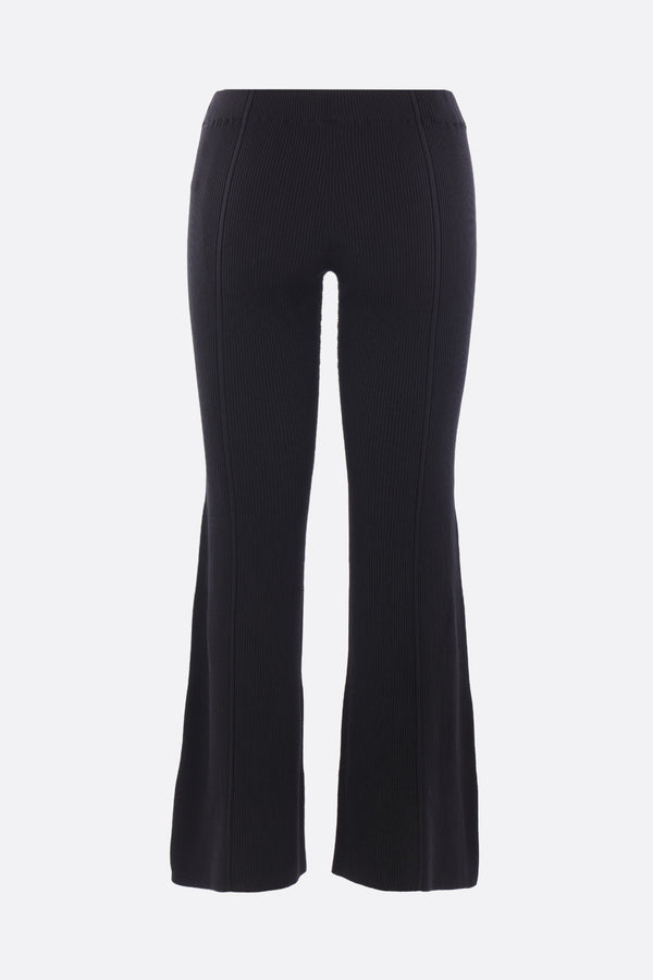 CFCL trousers crafted from black ribbed knit. Characterized by an elasticated waistband and flared hem.