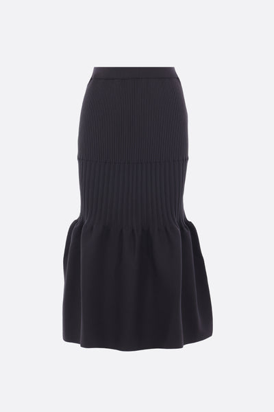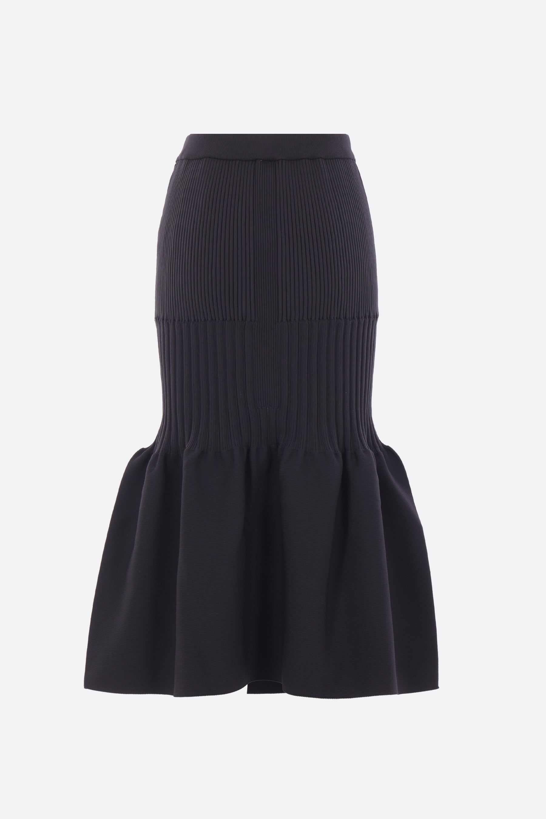 CFCL mermaid skirt crafted from black ribbed knit. Characterized by an elasticated waistband and a peplum hem.