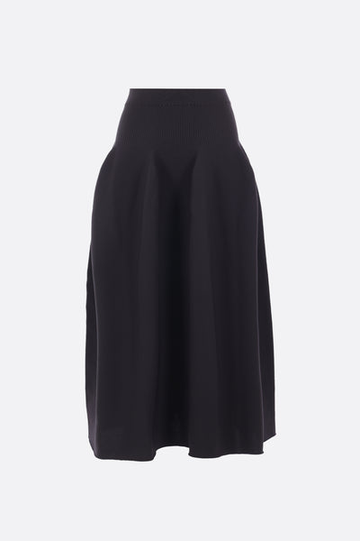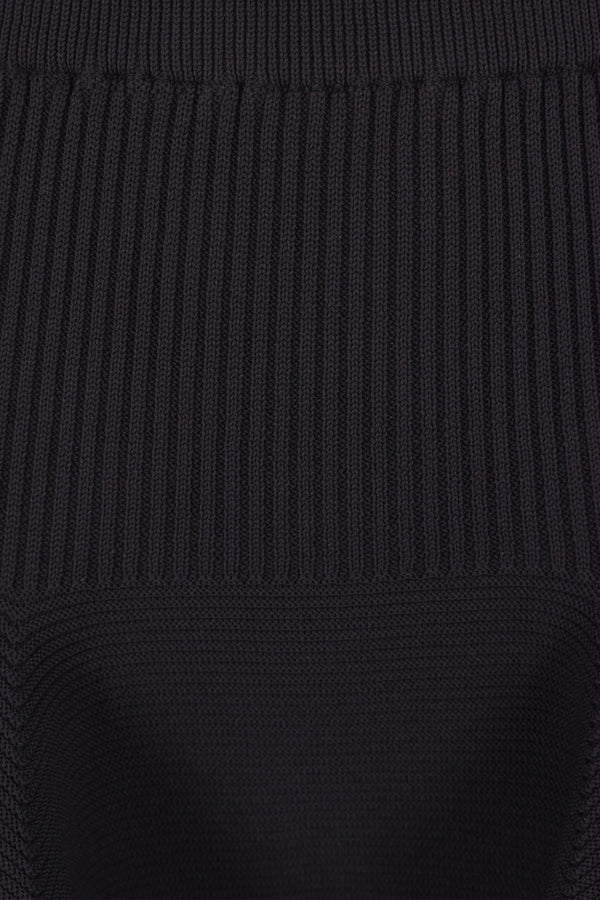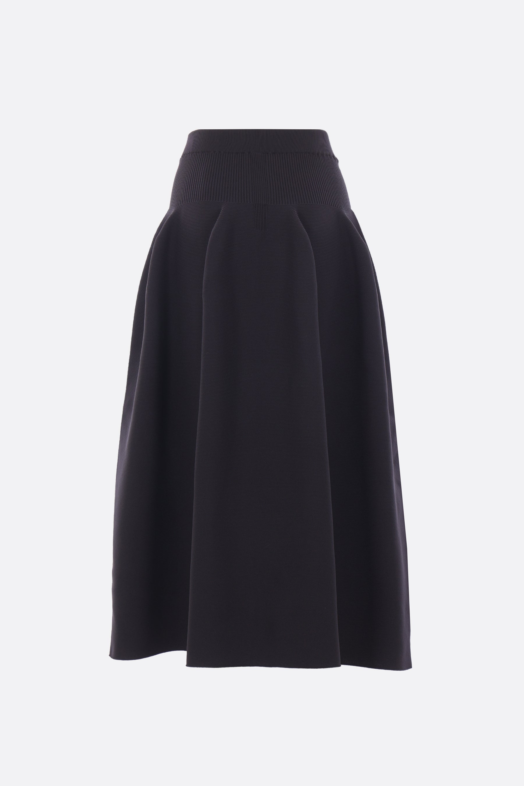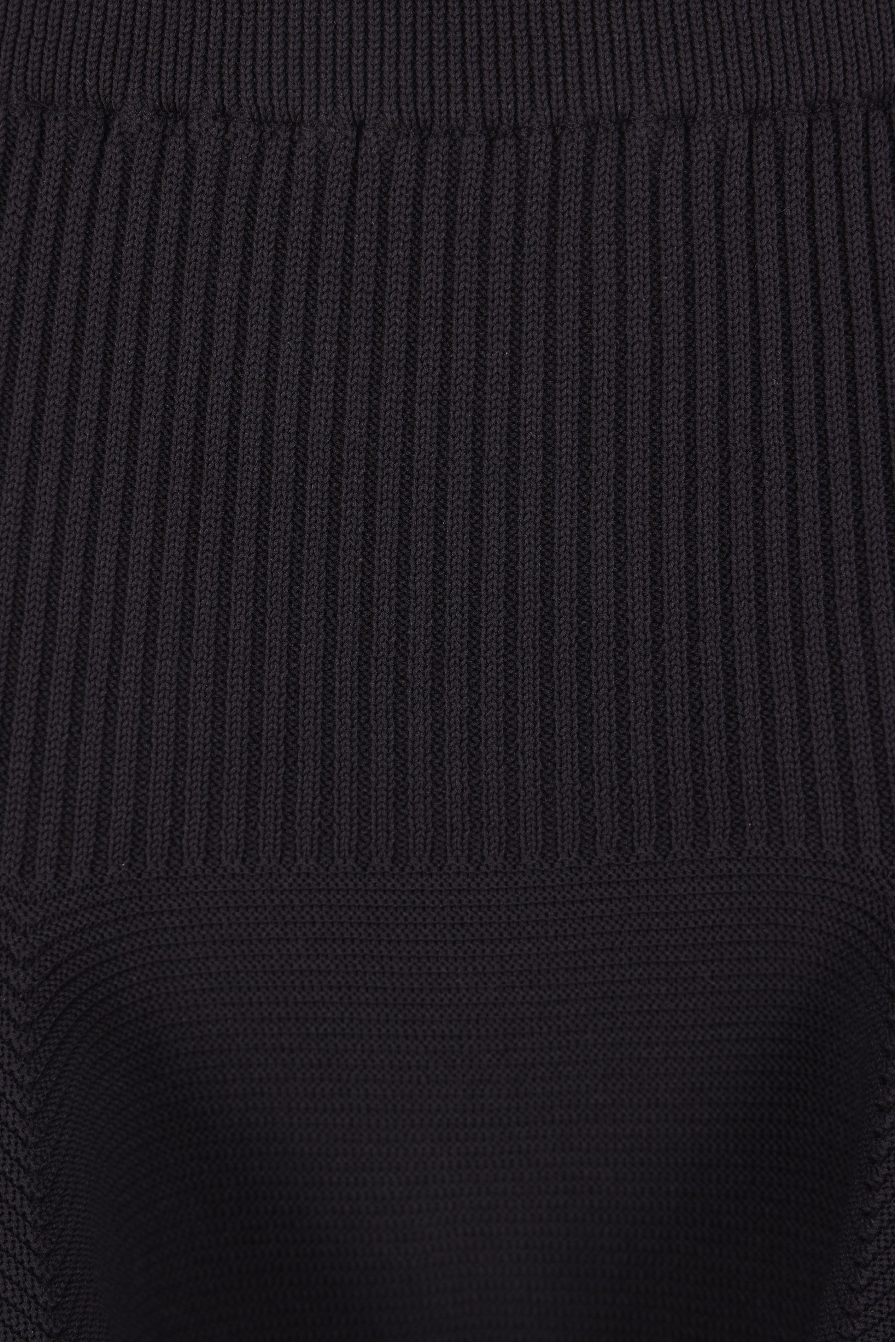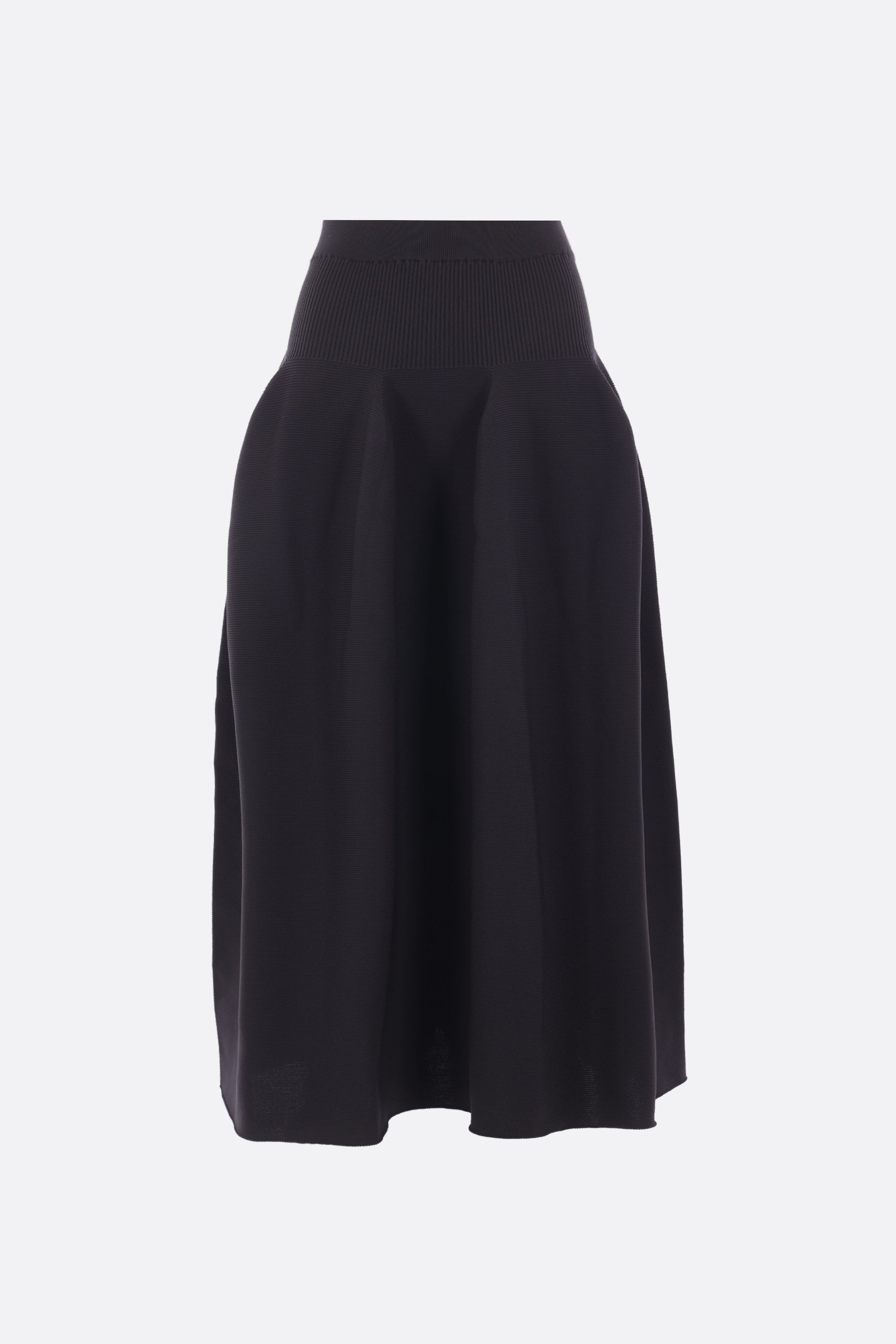 CFCL midi skirt crafted from black knit with ribbed detailing. Characterized by an elasticated waistband and a flared design.