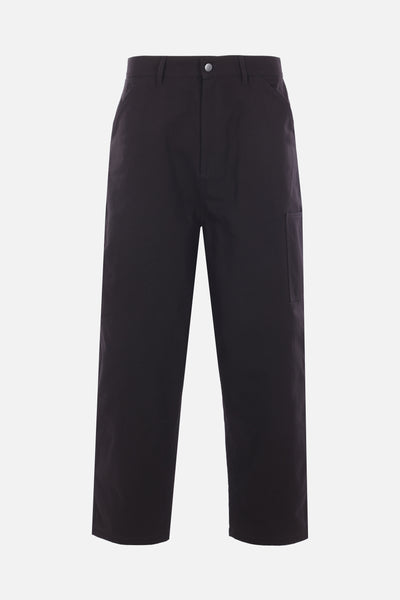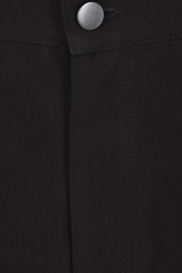 Diomene cargo trousers crafted from black cotton canvas. Featuring a front metal button and zip closure, belt loops, and multiple pockets.