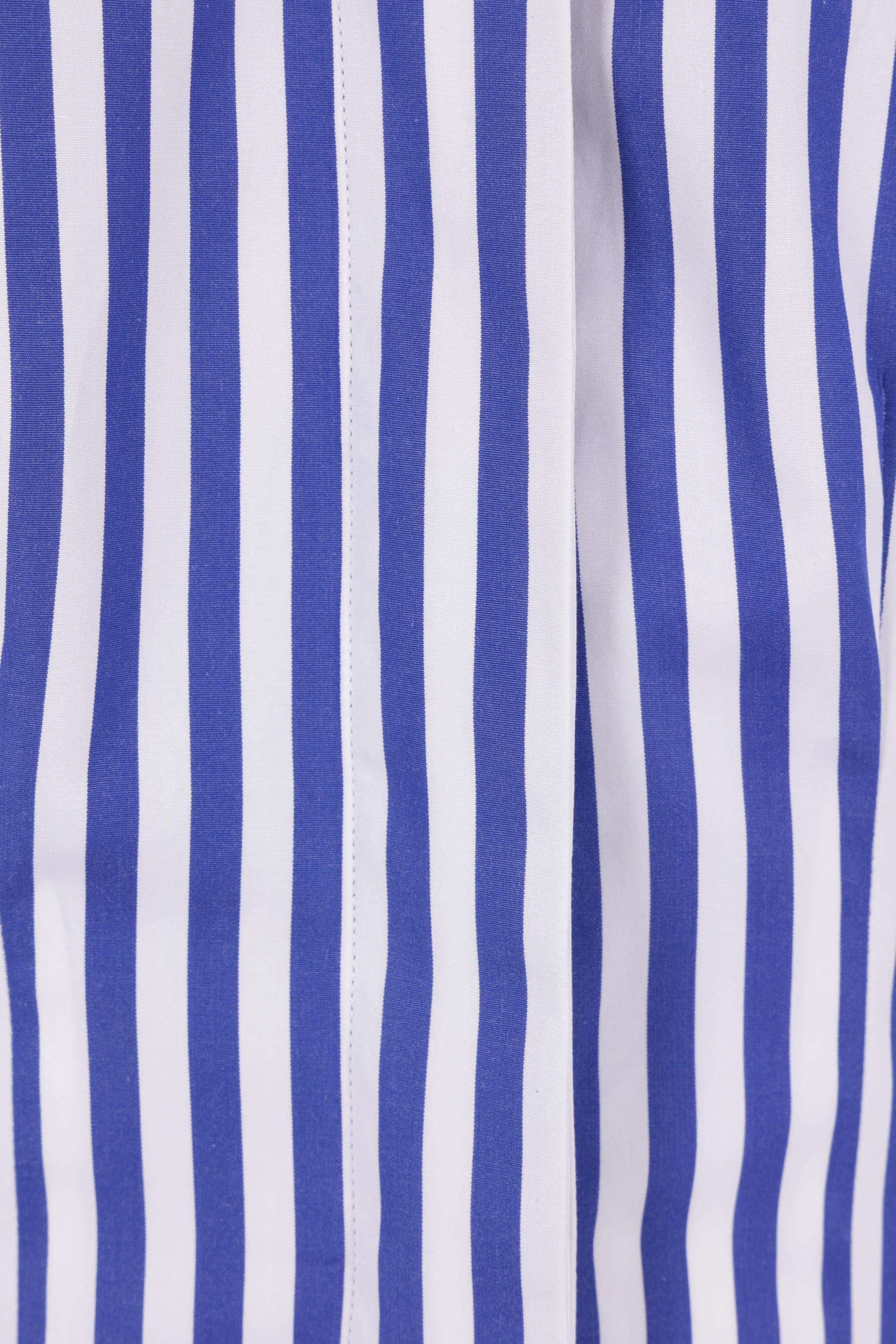 Givenchy shirt crafted in white and electric blue striped cotton poplin. Features classic collar, back neckline, long sleeves with buttoned cuffs, and rounded hem.